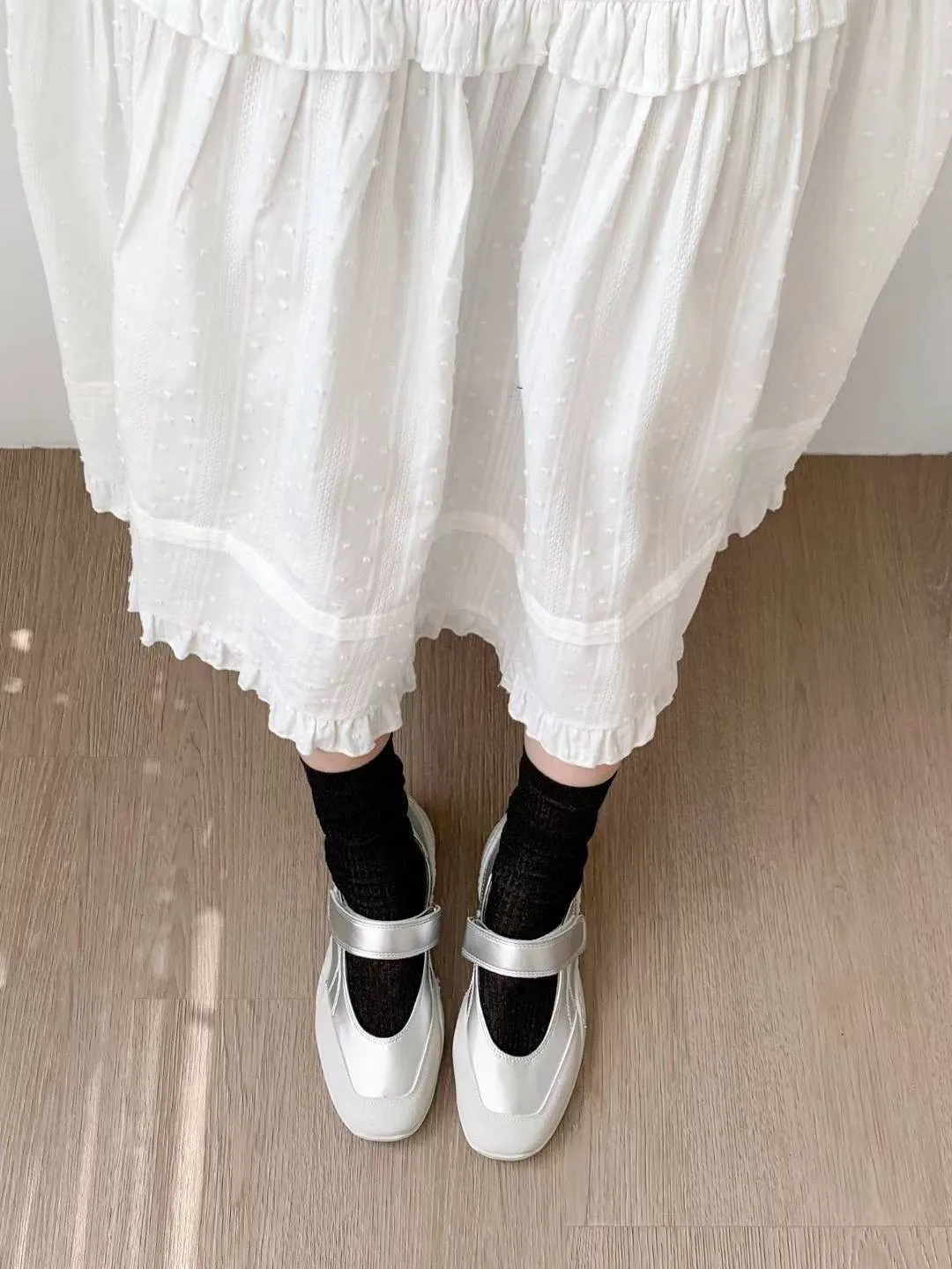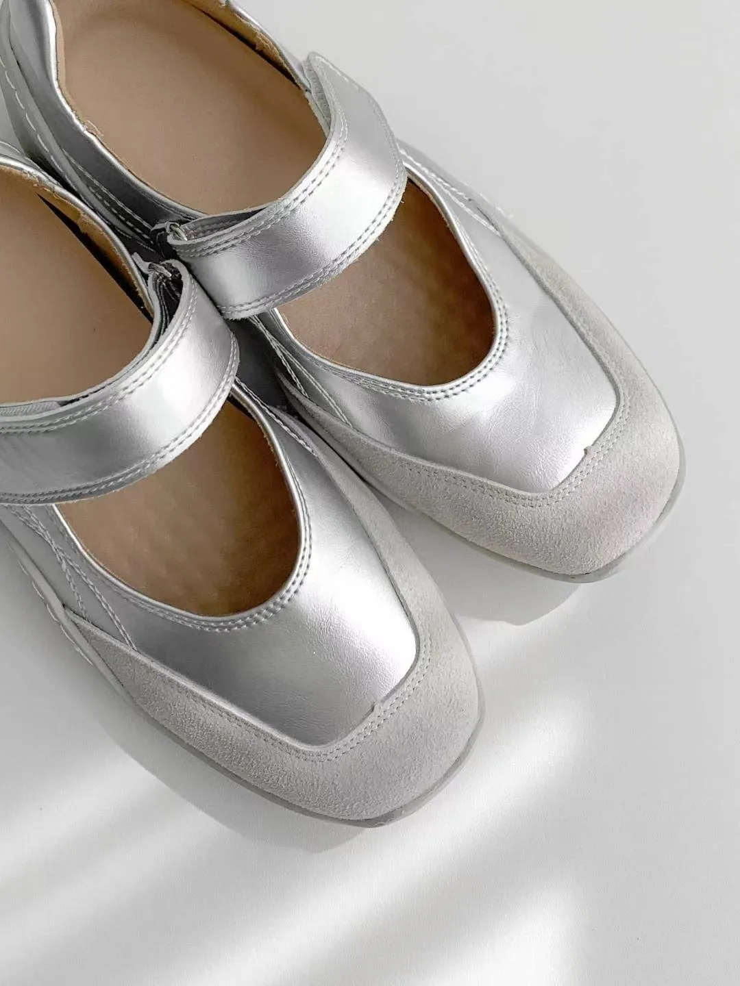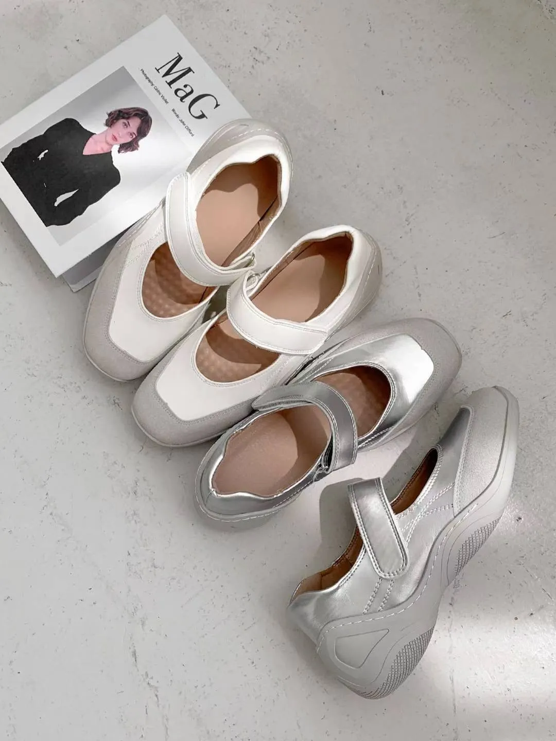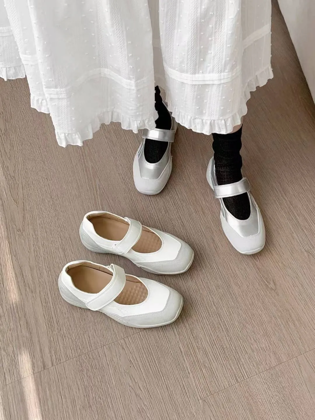 韓國 銀白小方頭軟Q包鞋-跟高4cm