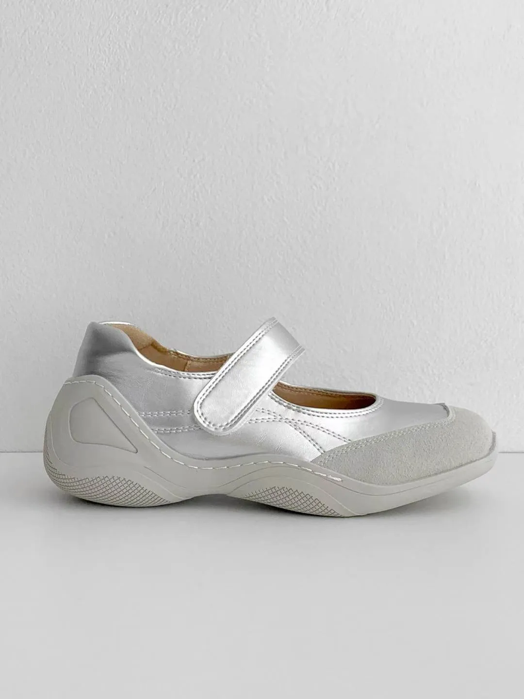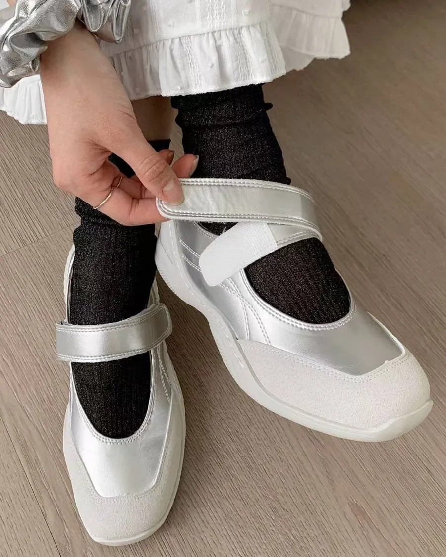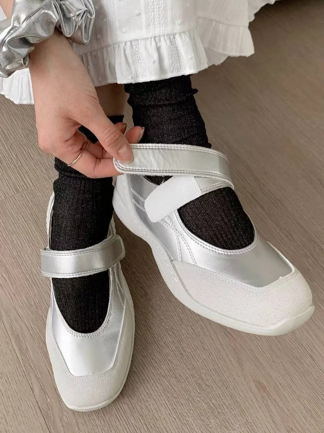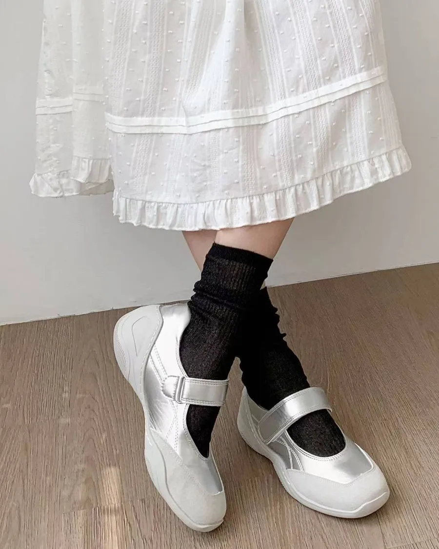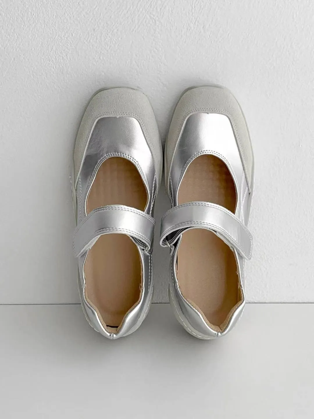 韓國 銀白小方頭軟Q包鞋-跟高4cm