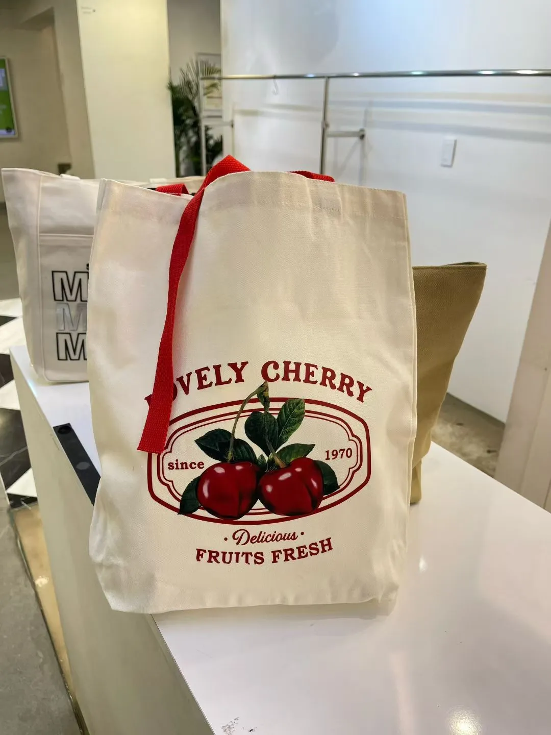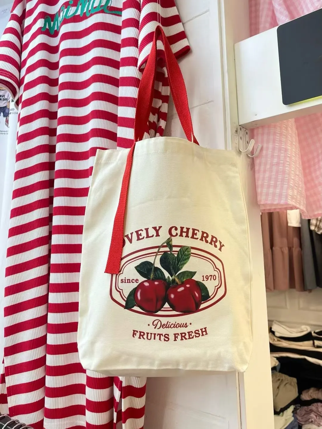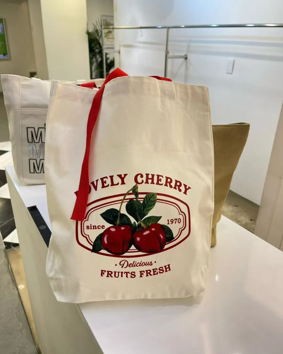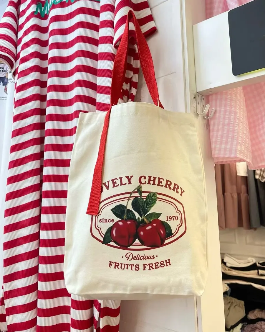 正韓 櫻桃文青風肩背帆布包