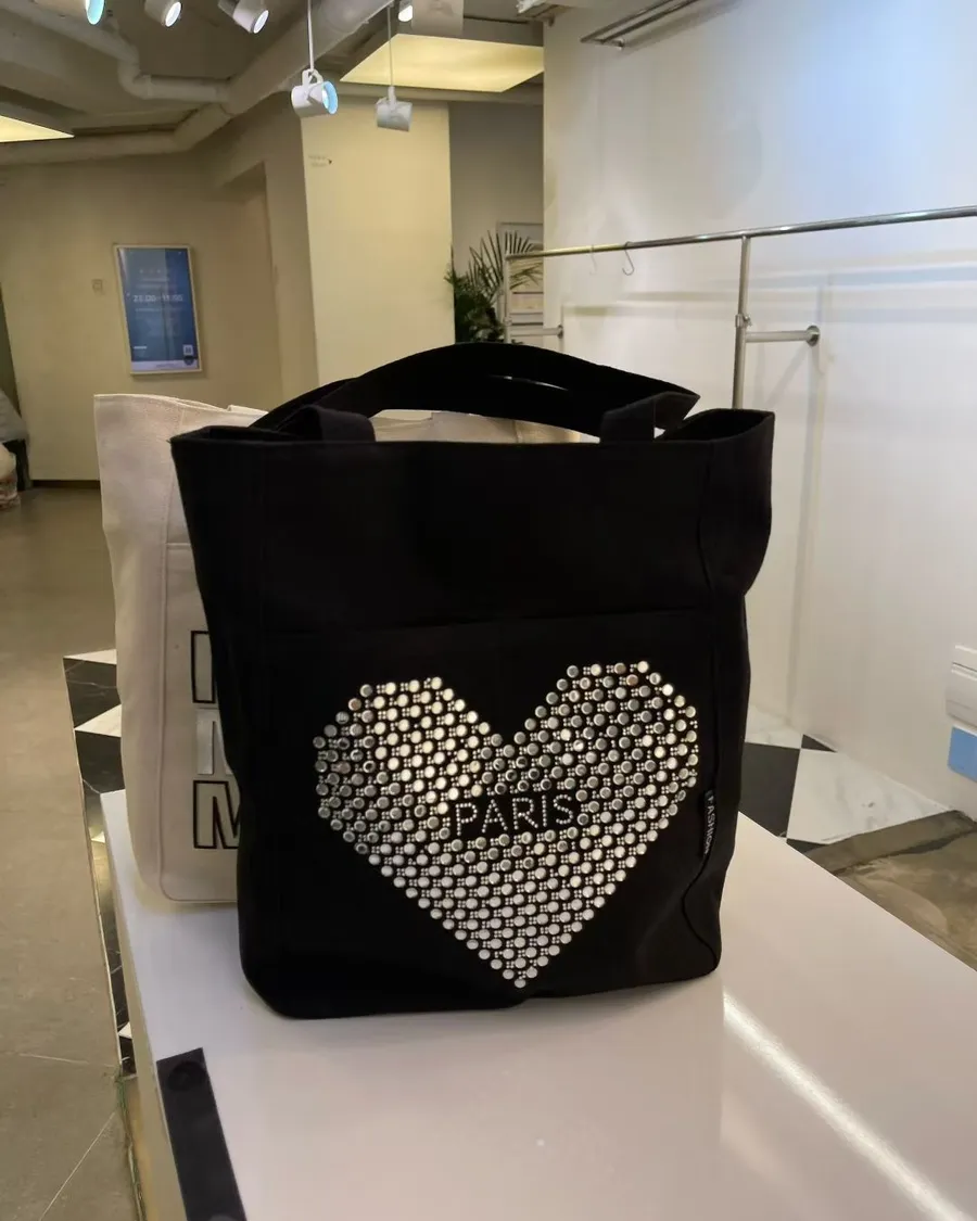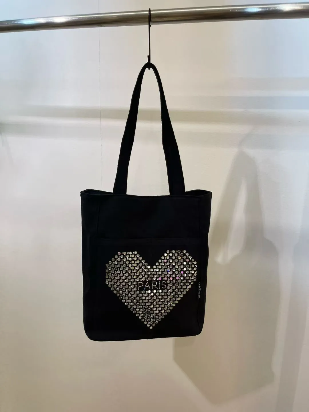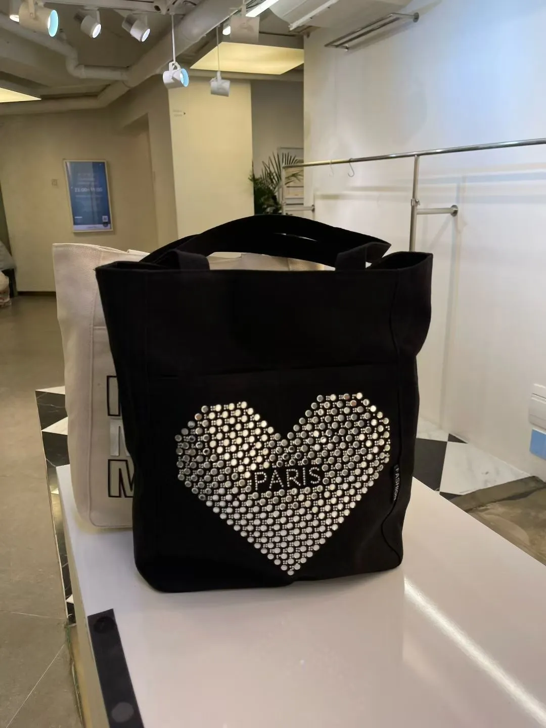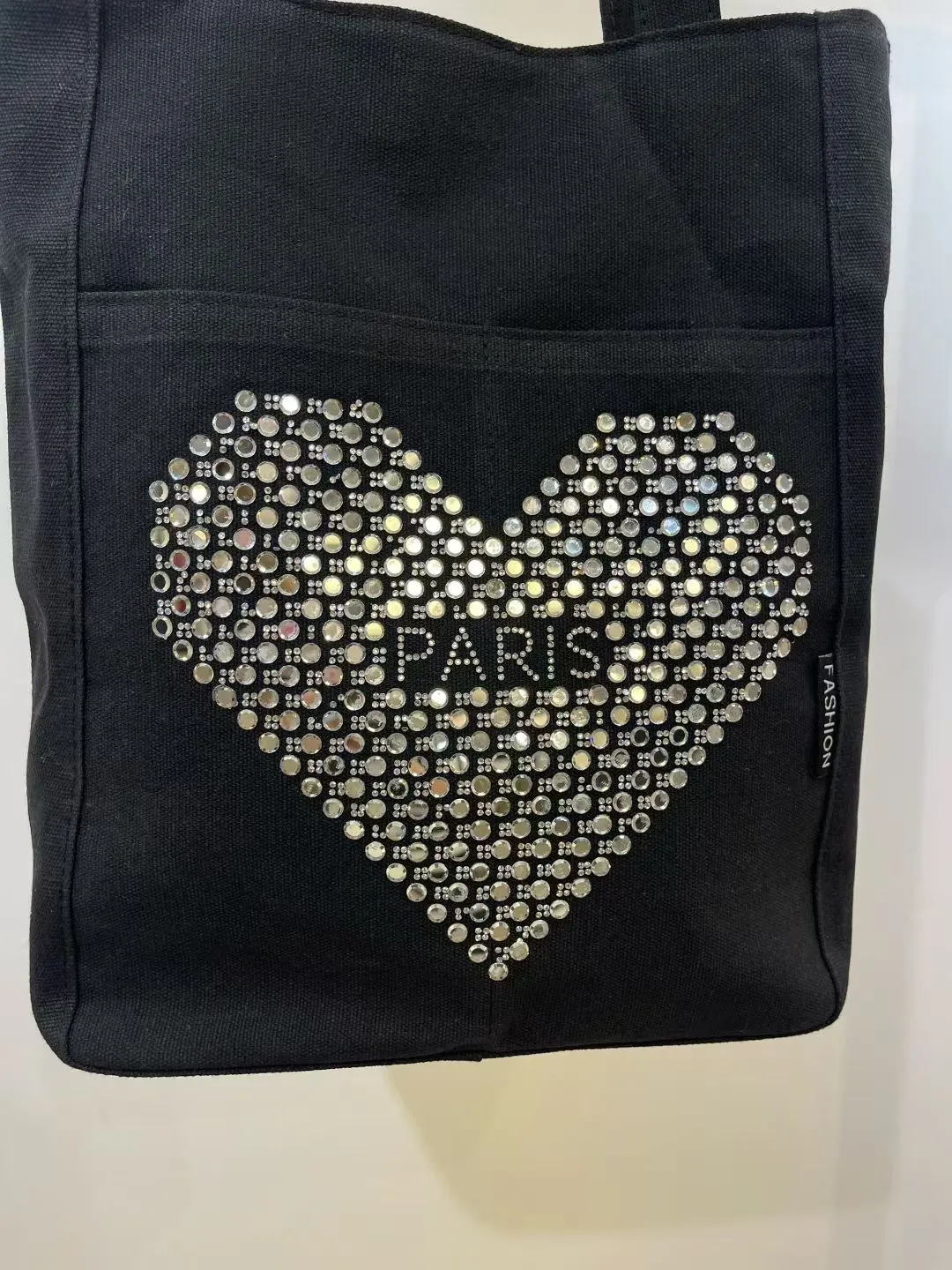 正韓 愛心亮鑽PARIS時尚肩背帆布包