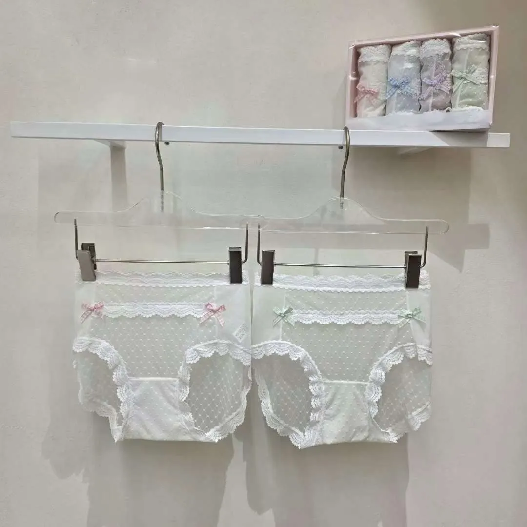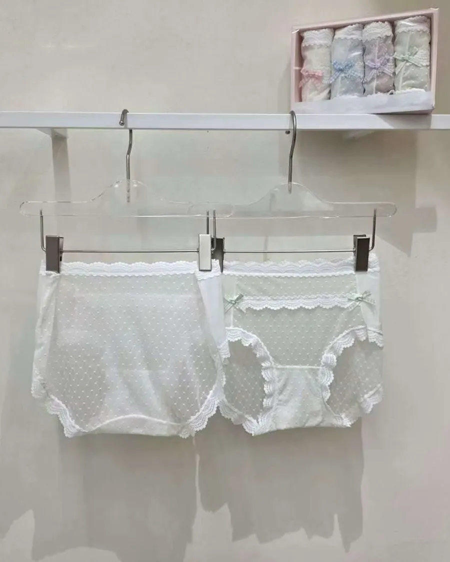 正韓 中腰透氣柔軟蕾絲夢幻內褲組(四入)