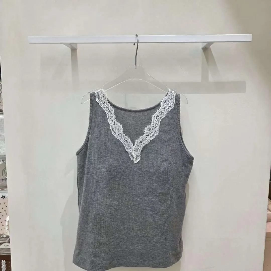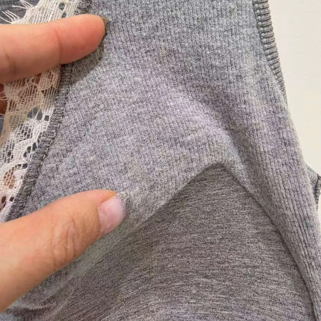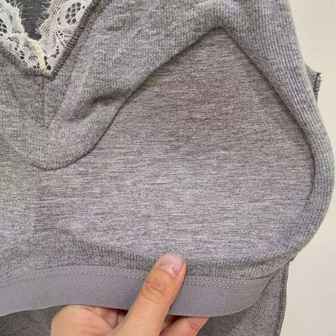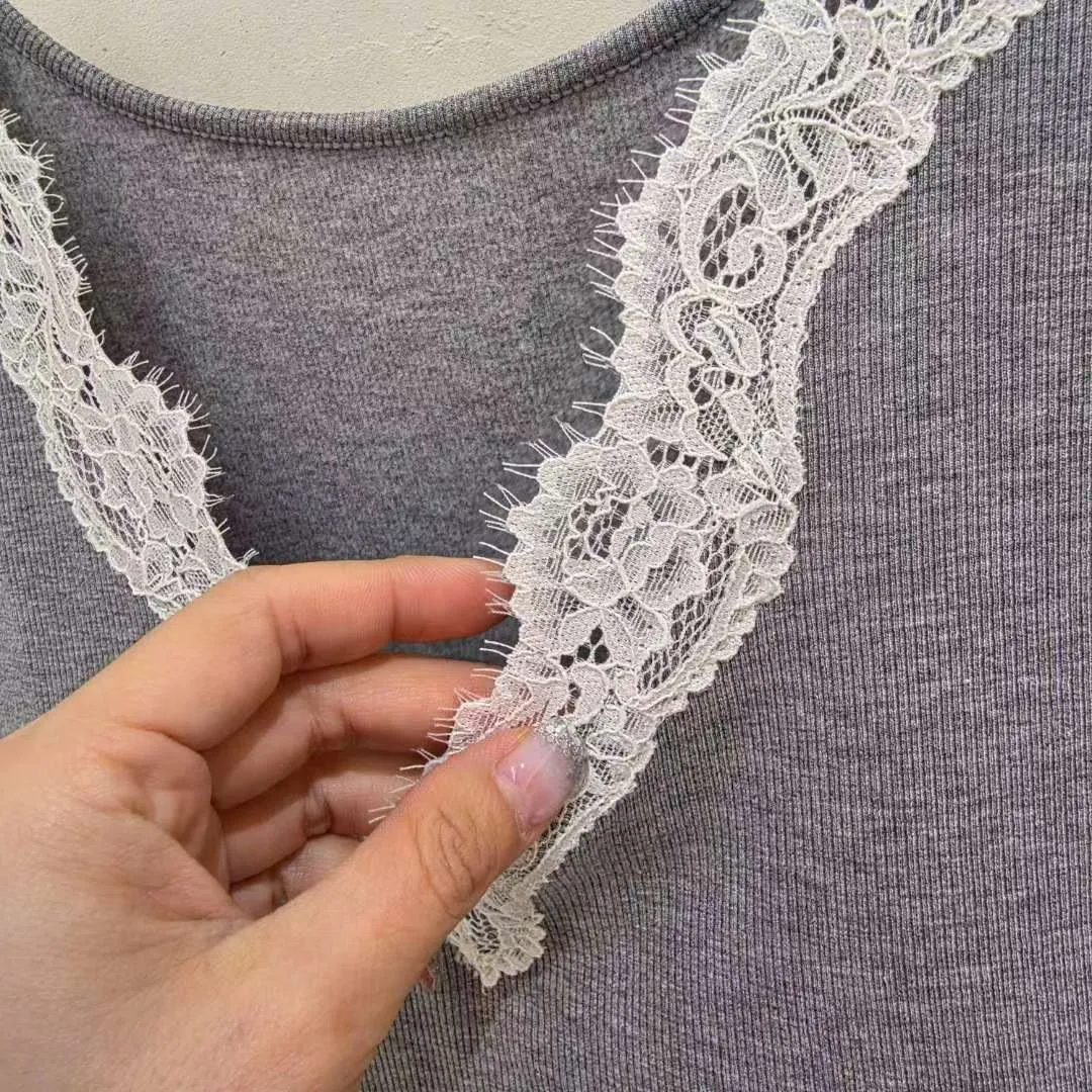 正韓 秋冬新品V領蕾絲超彈力磨毛背心