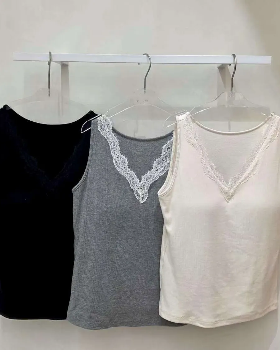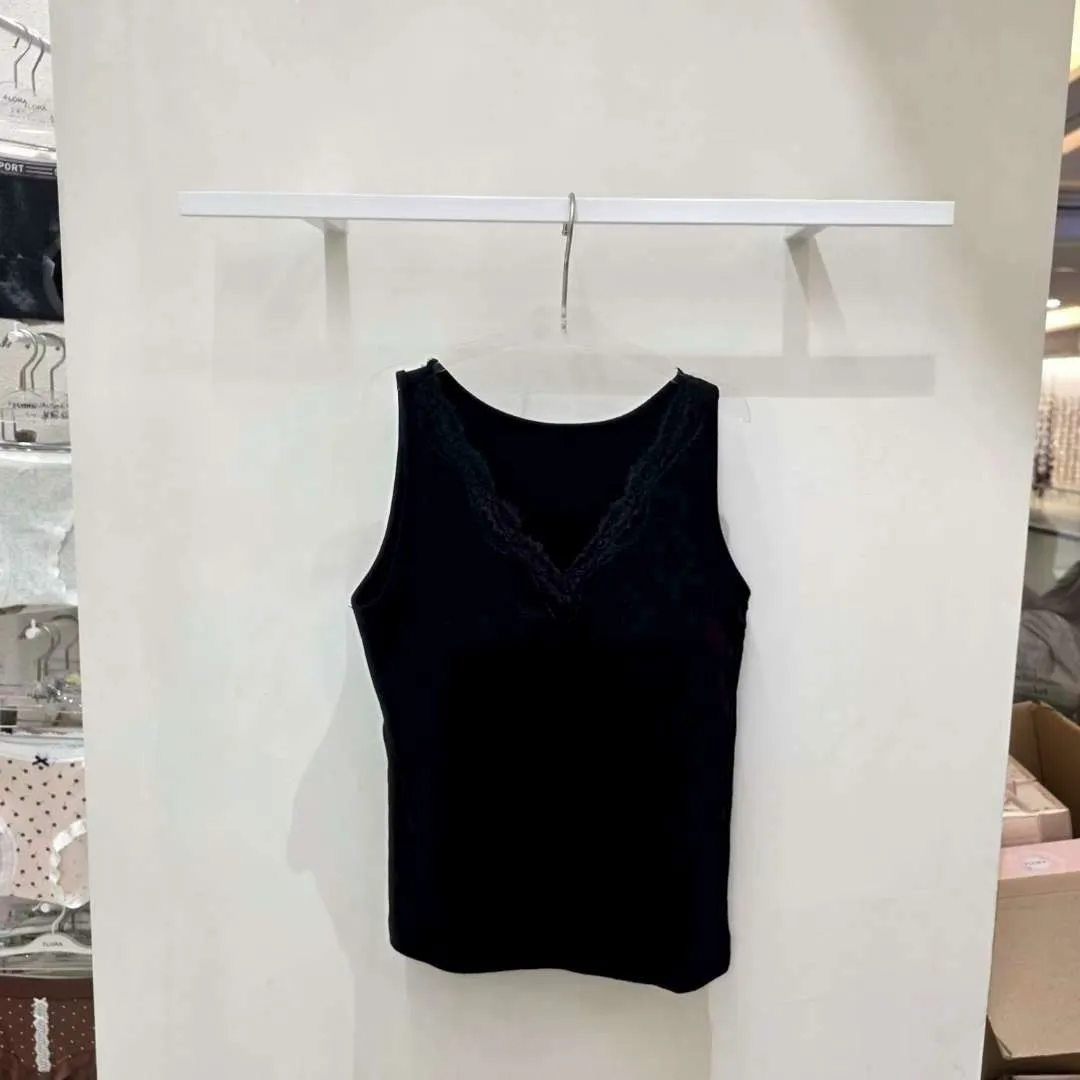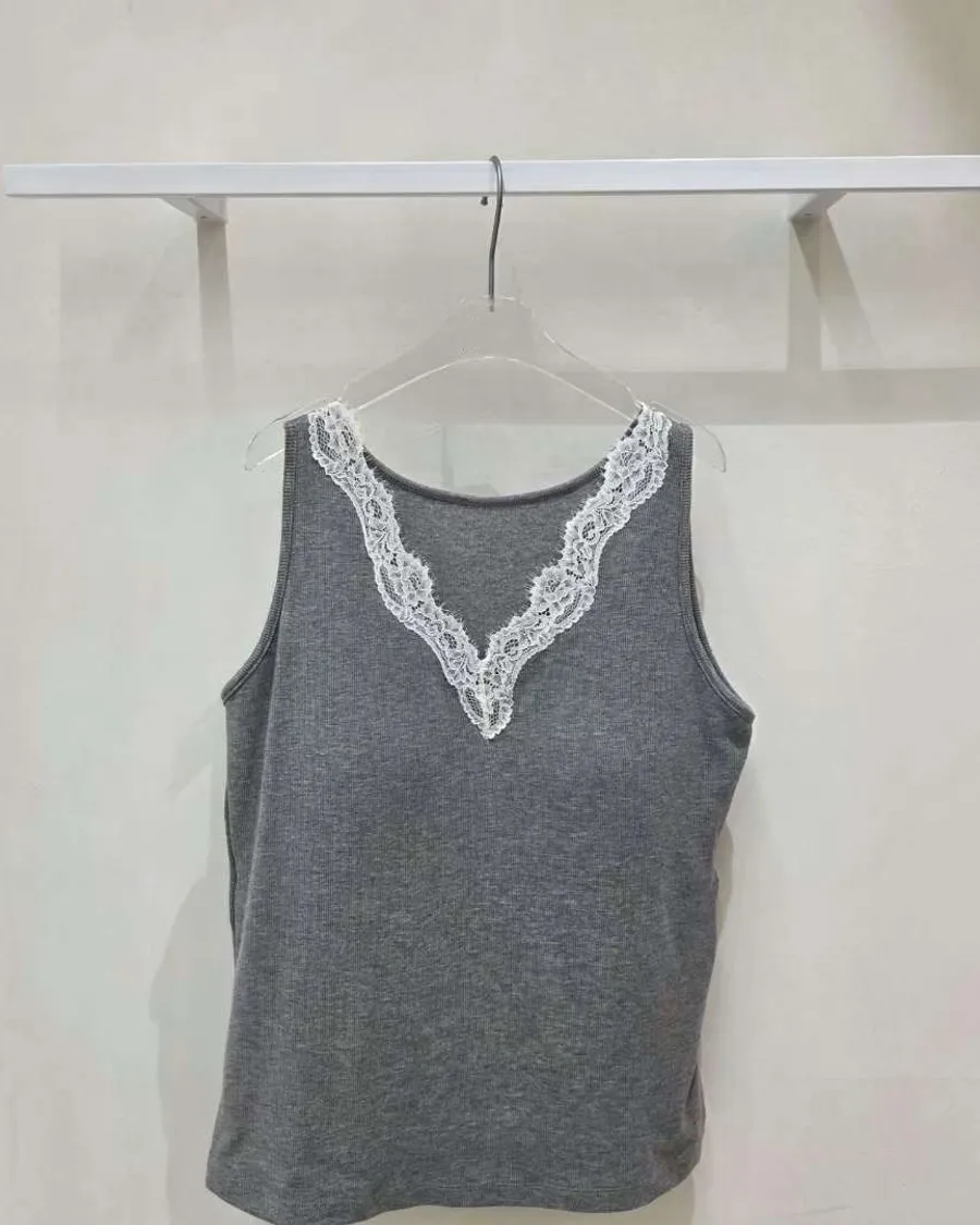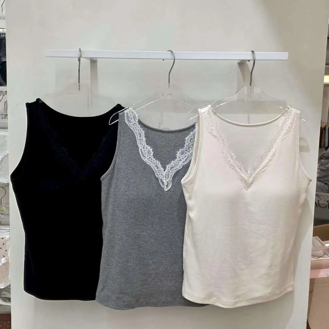 正韓 秋冬新品V領蕾絲超彈力磨毛背心