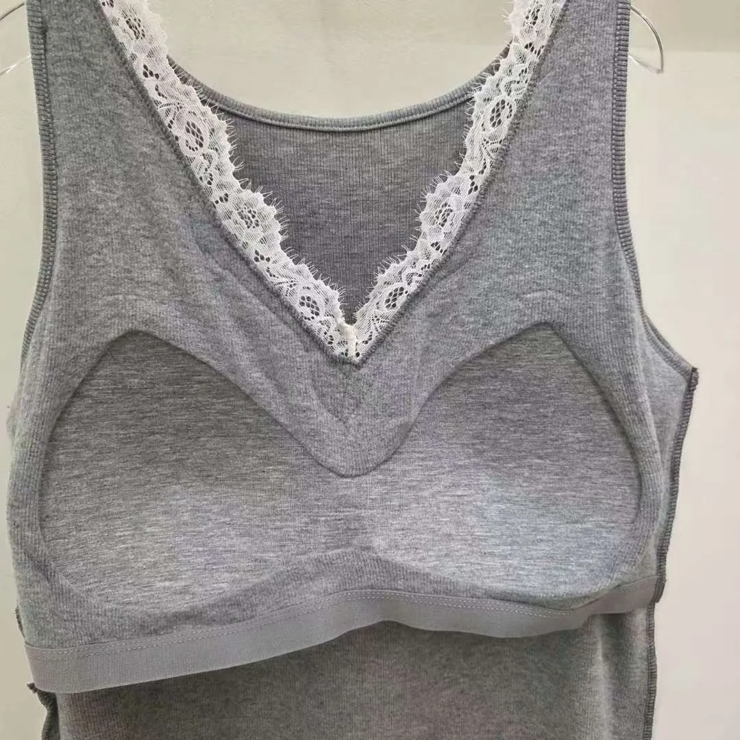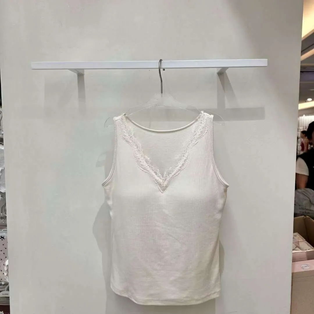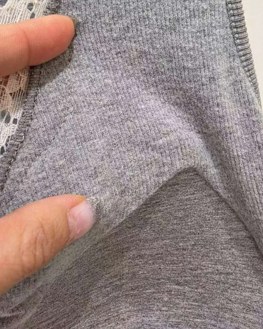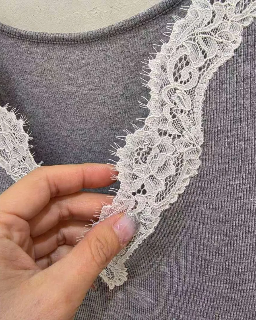 正韓 秋冬新品V領蕾絲超彈力磨毛背心