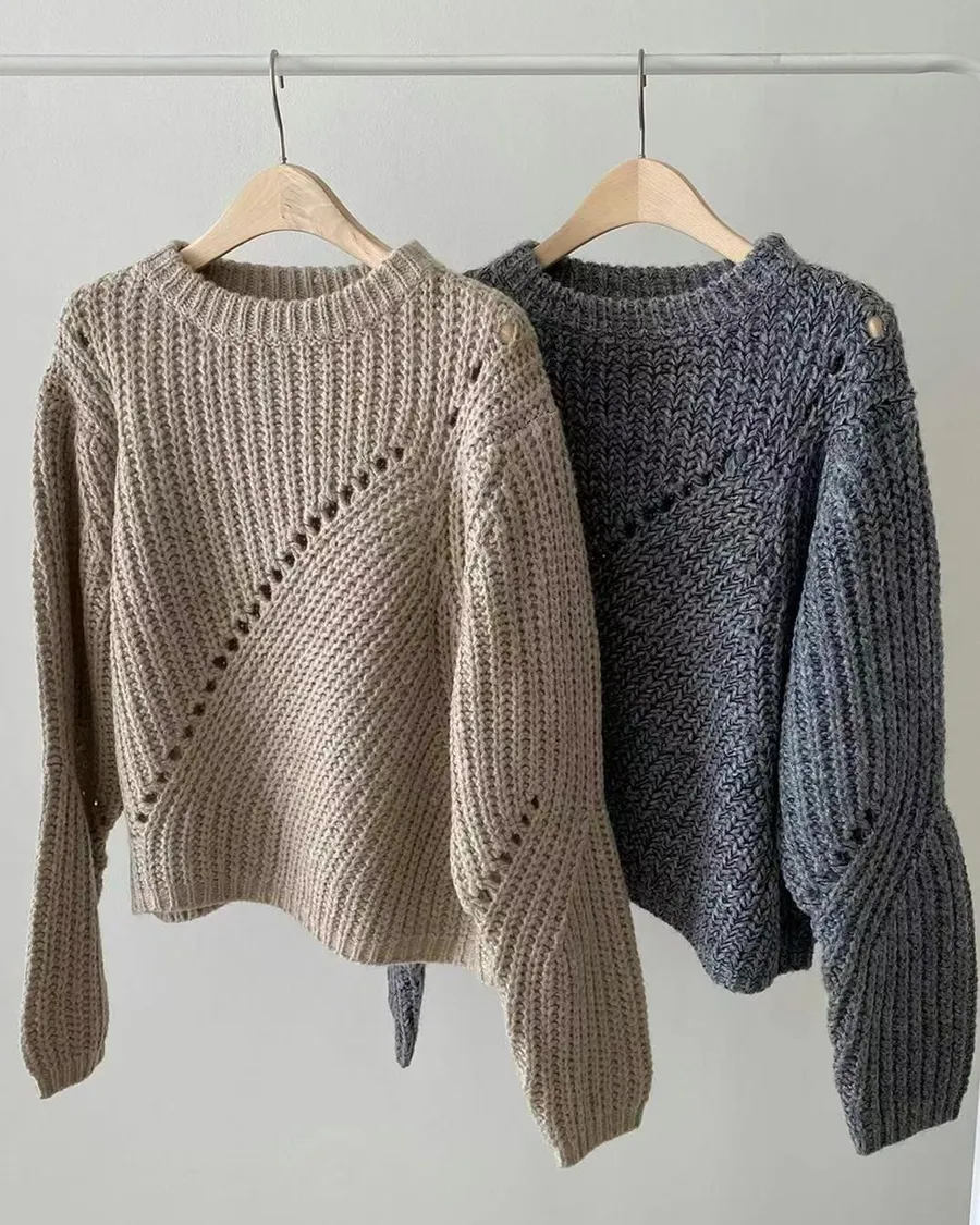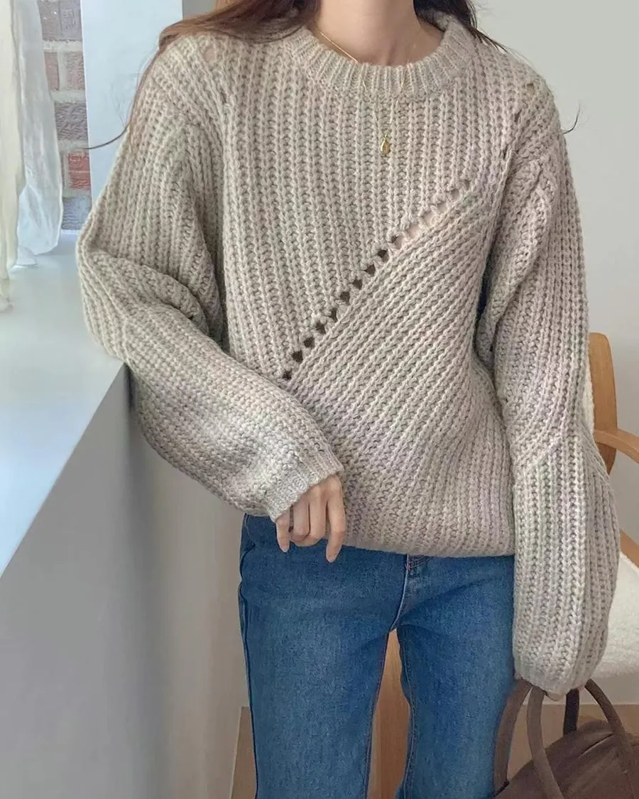 正韓 直斜坑條雙織弧線羊毛針織上衣