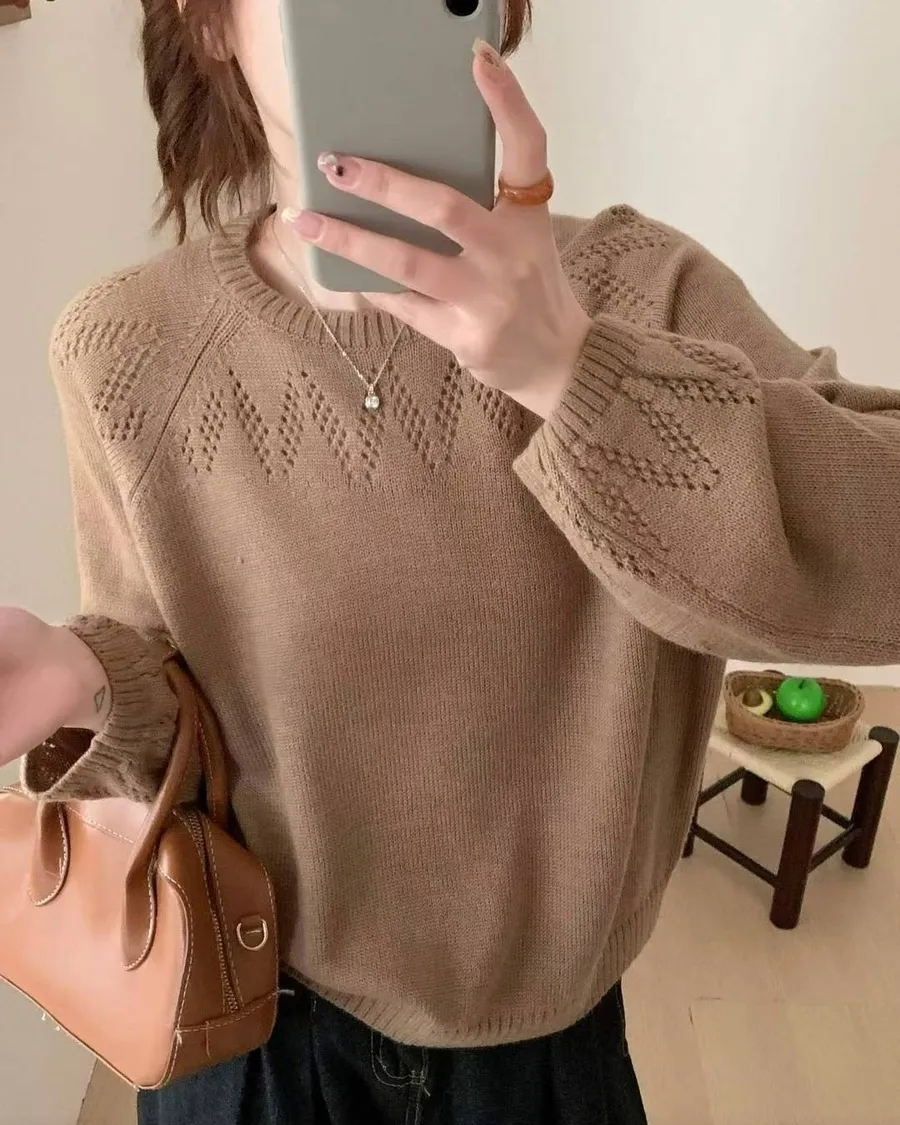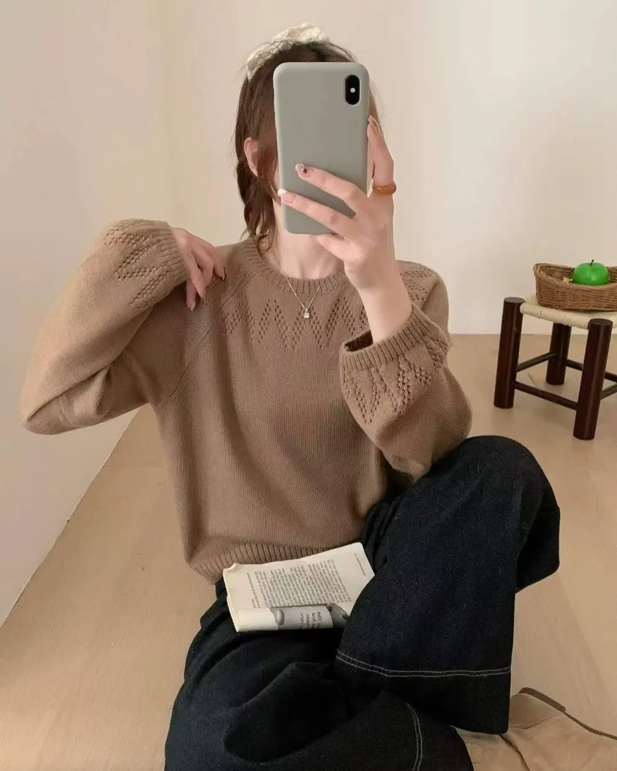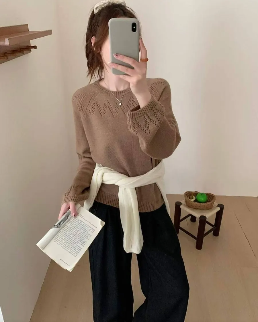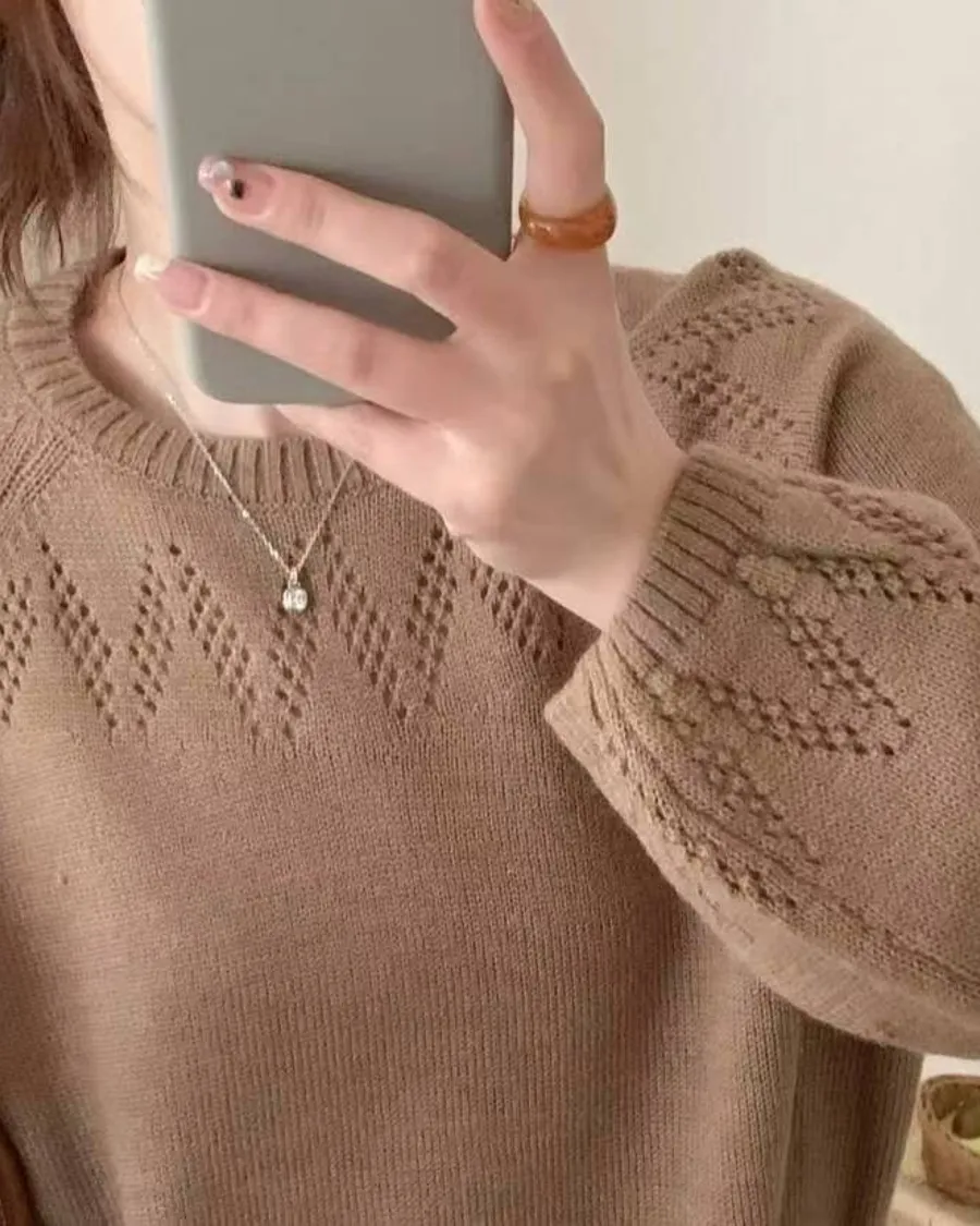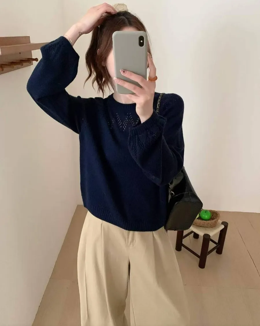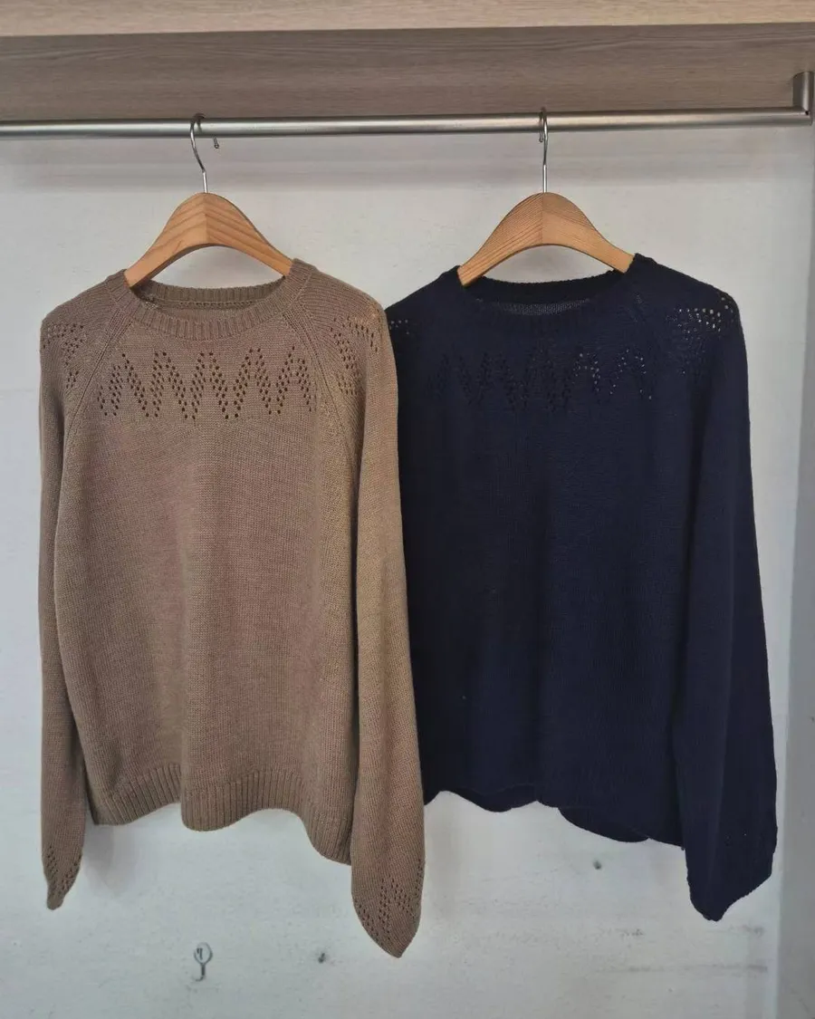 正韓 山形圖案微澎袖針織上衣