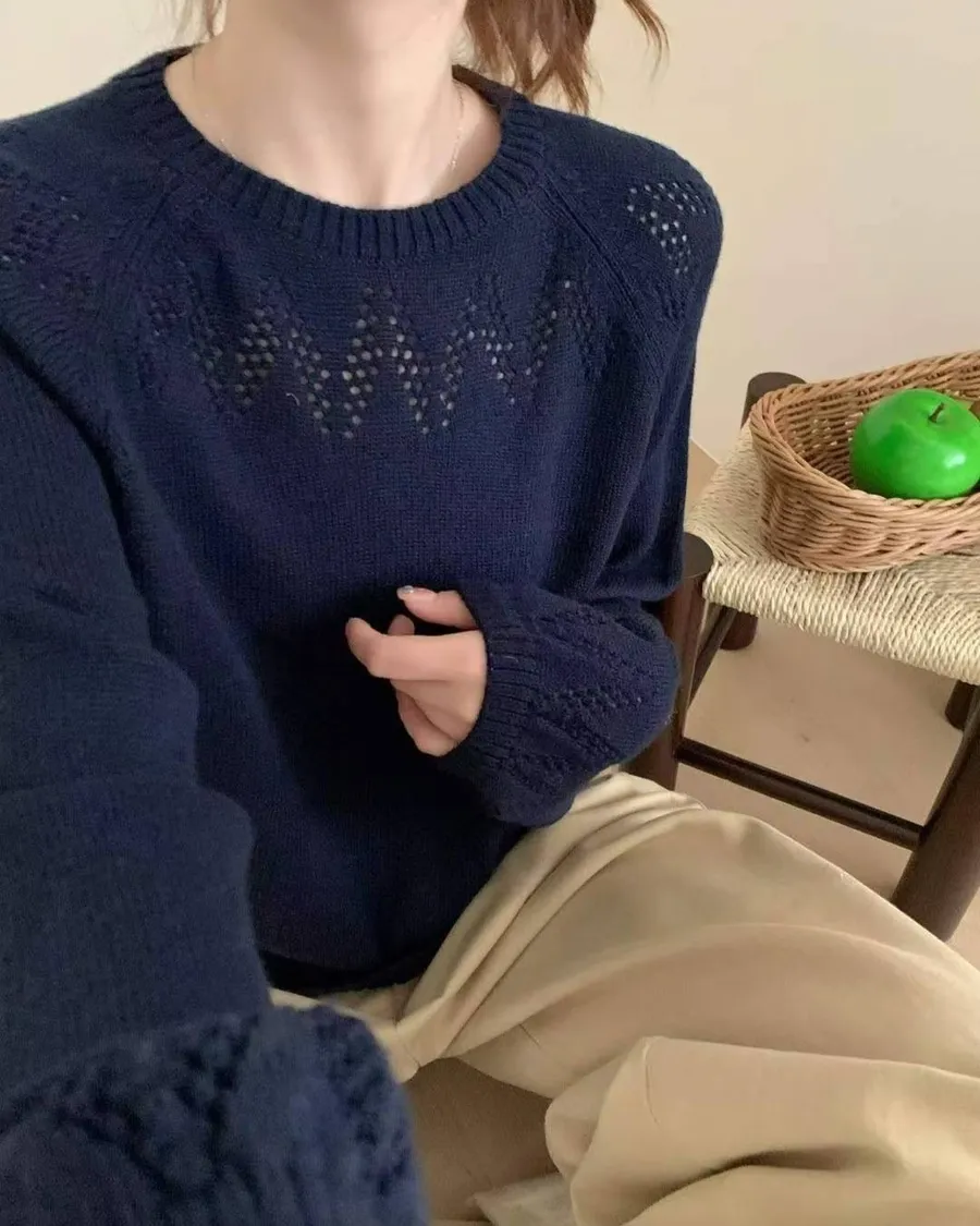 胸前袖口的山形摟空圖案