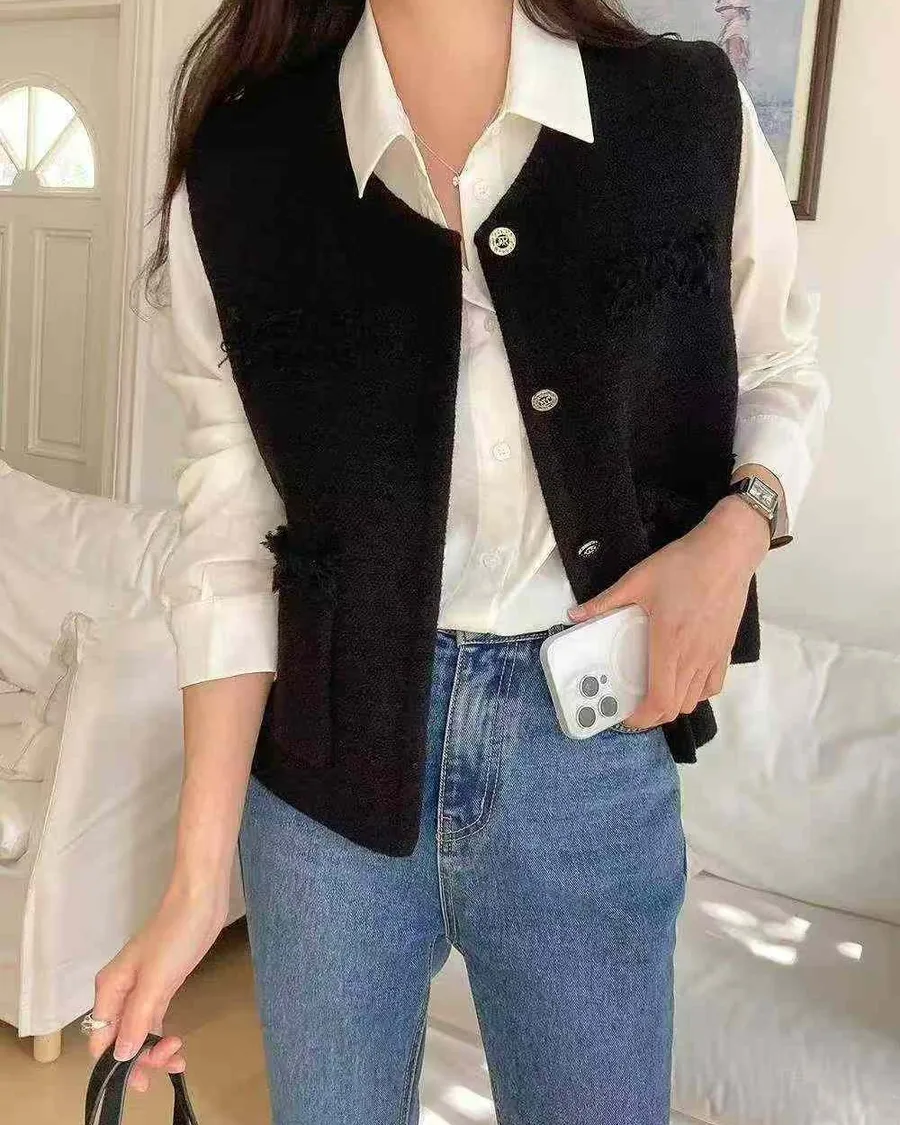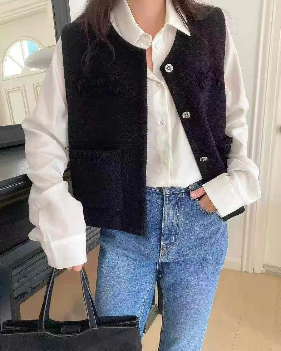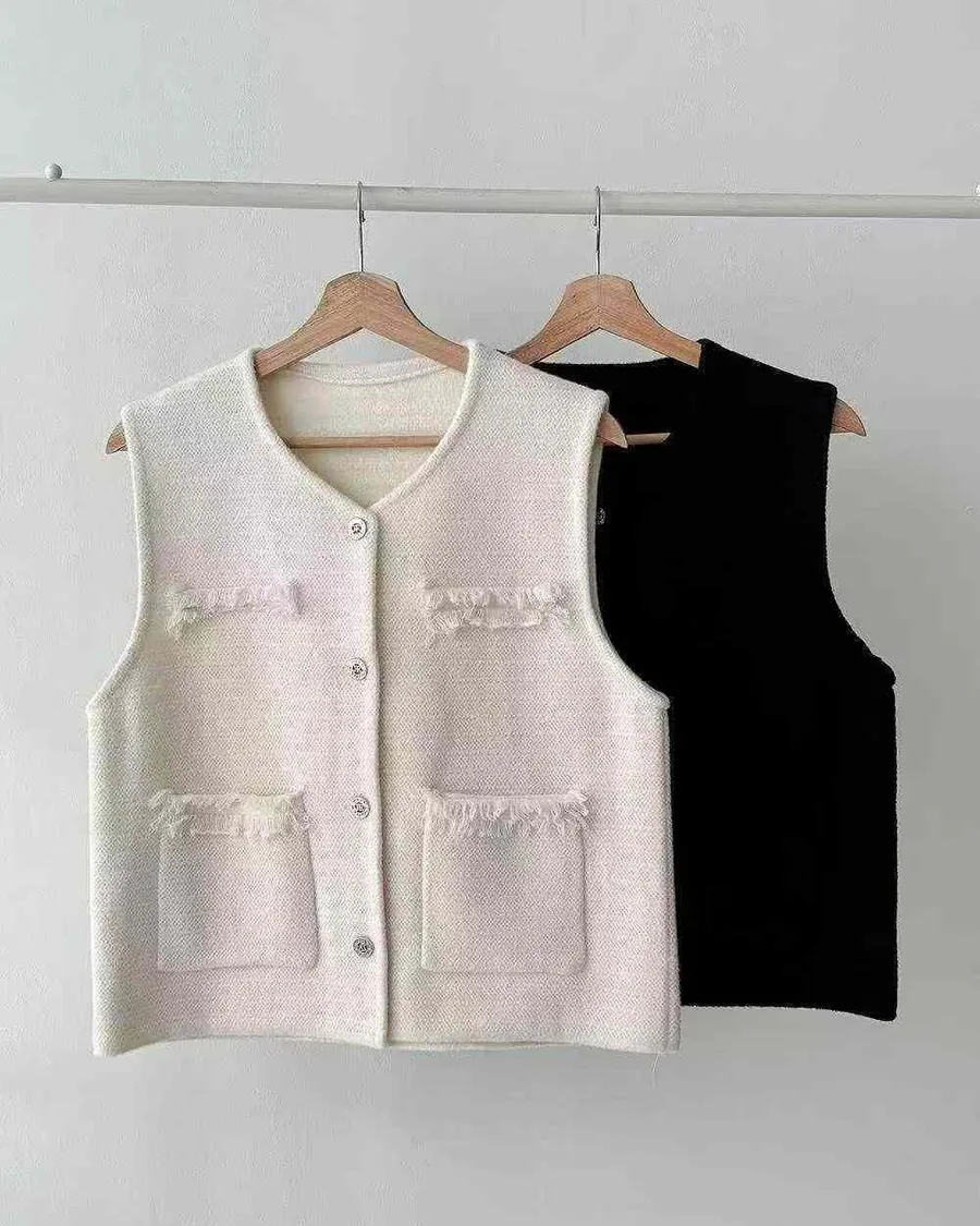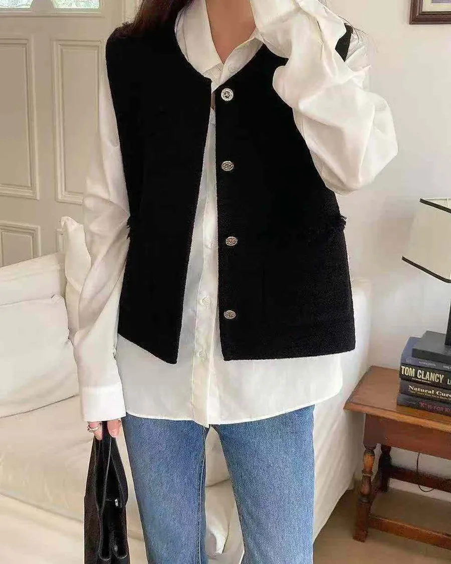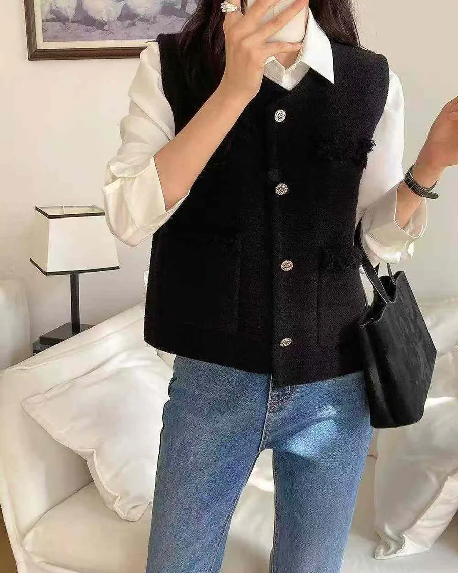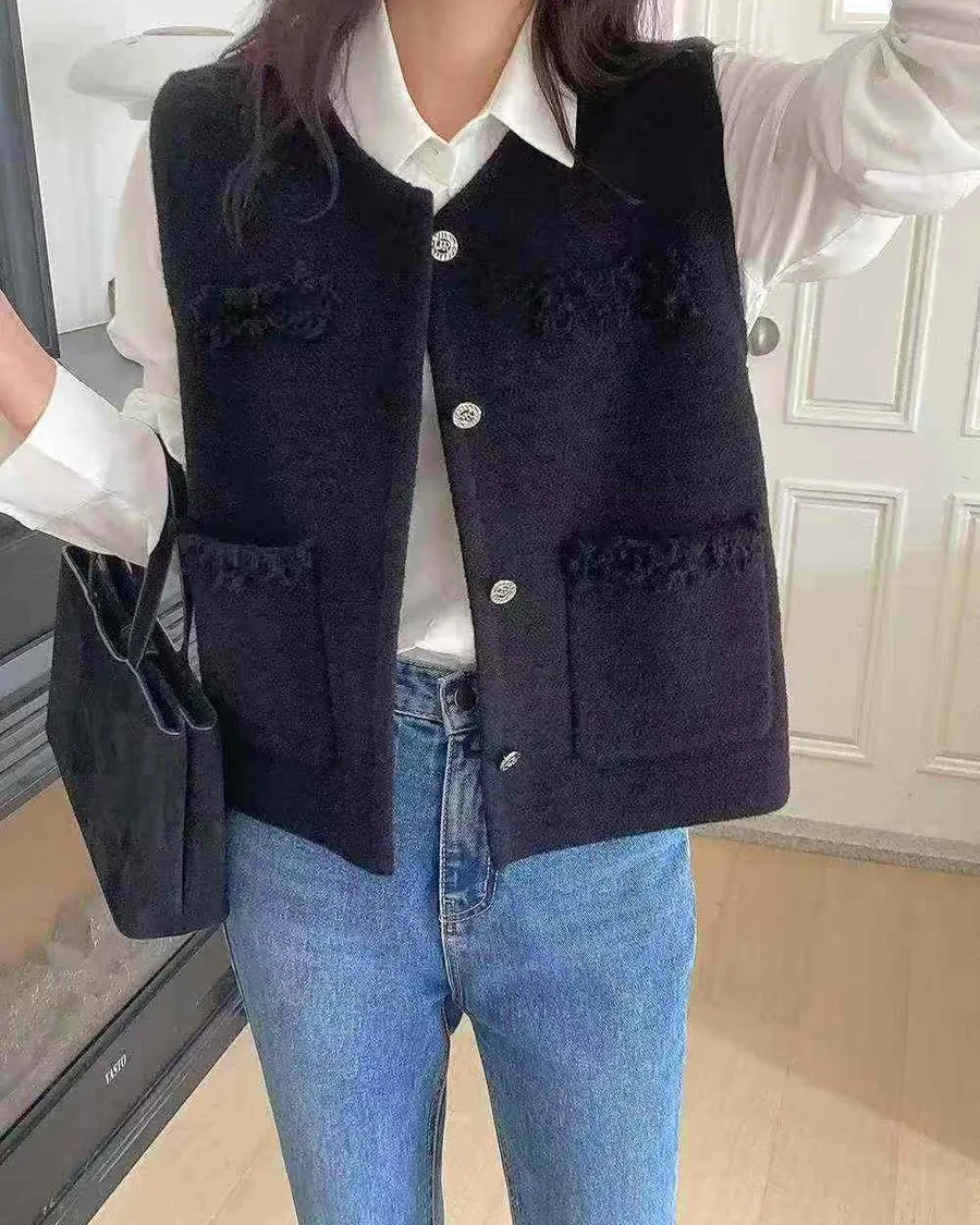正韓 挺版多口袋設計開釦背心
