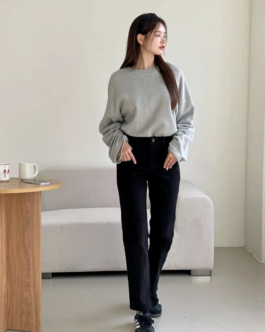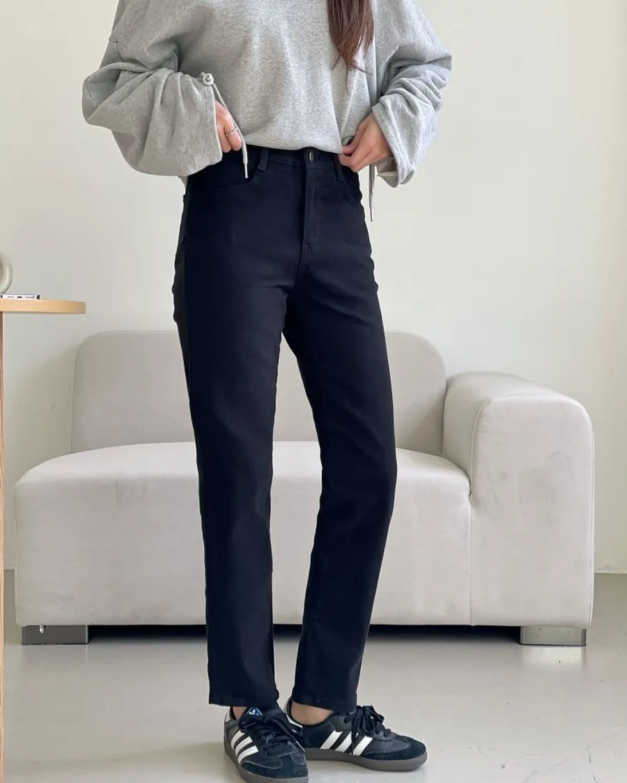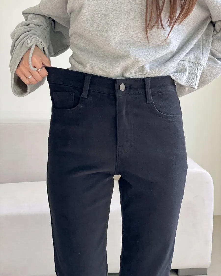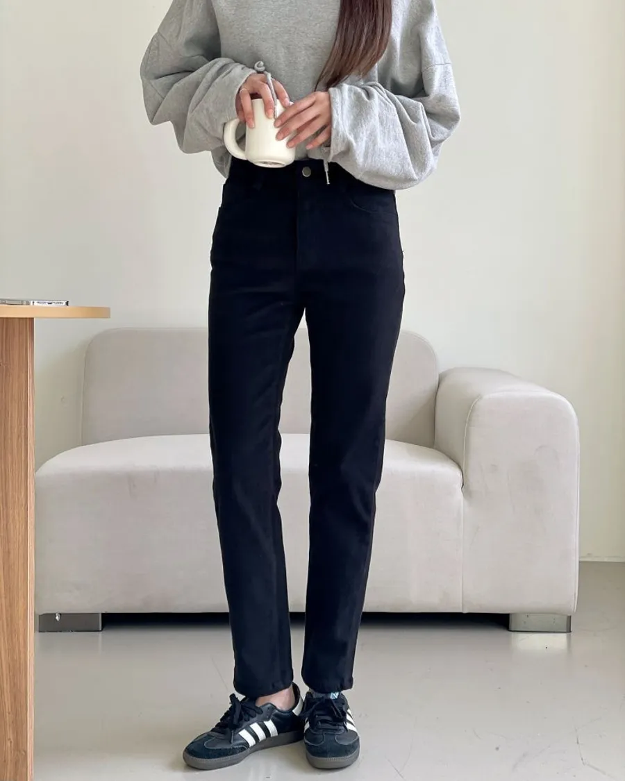 雙面磨毛修身直筒鬆緊褲