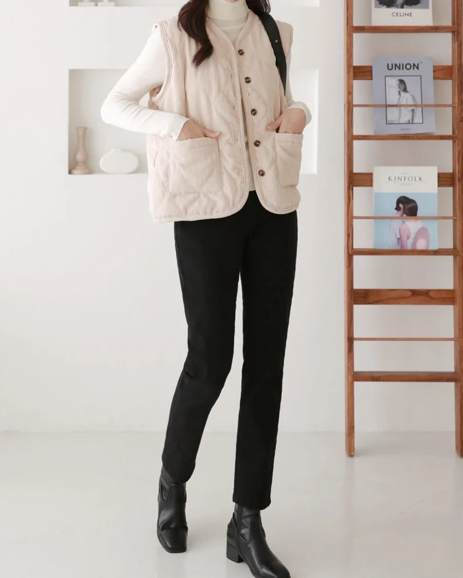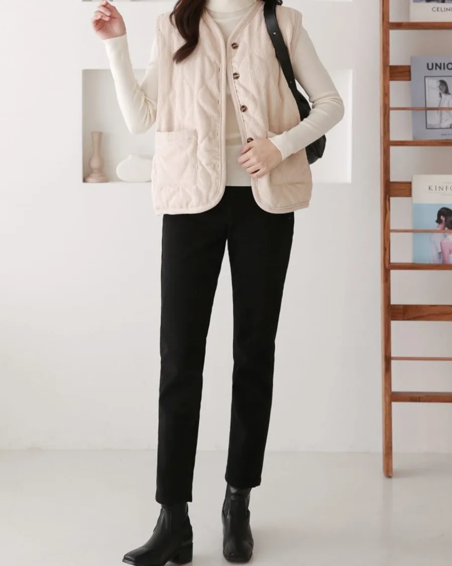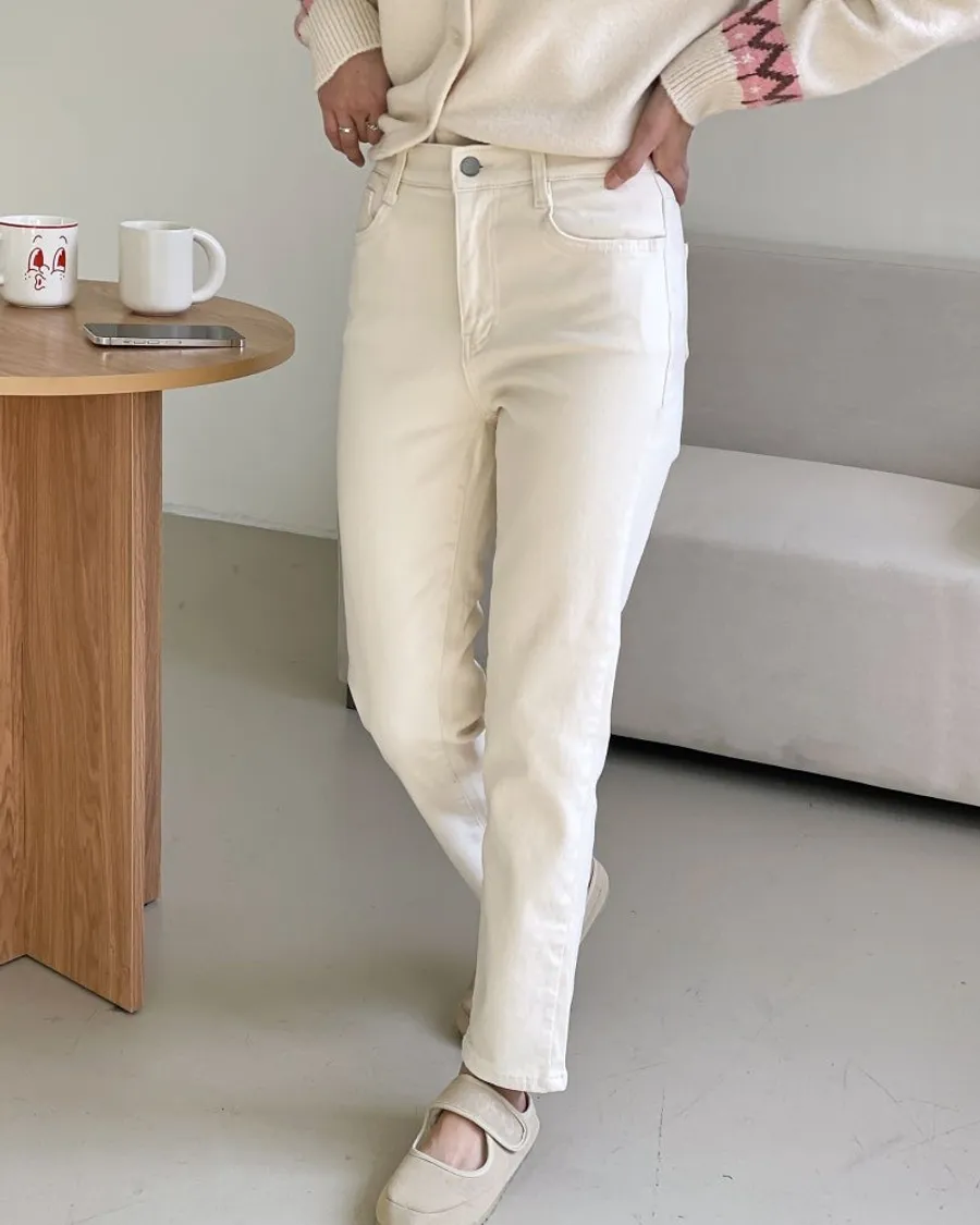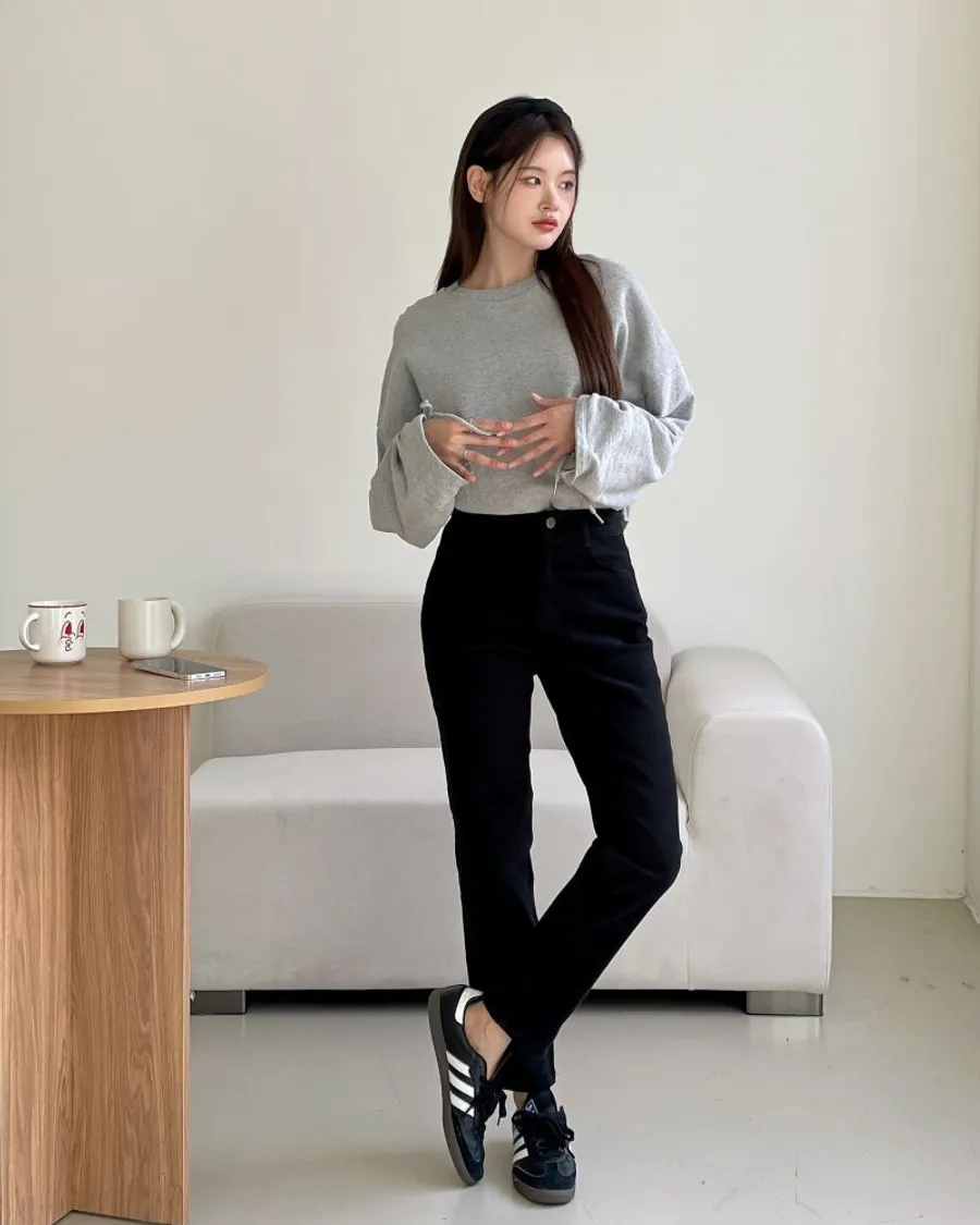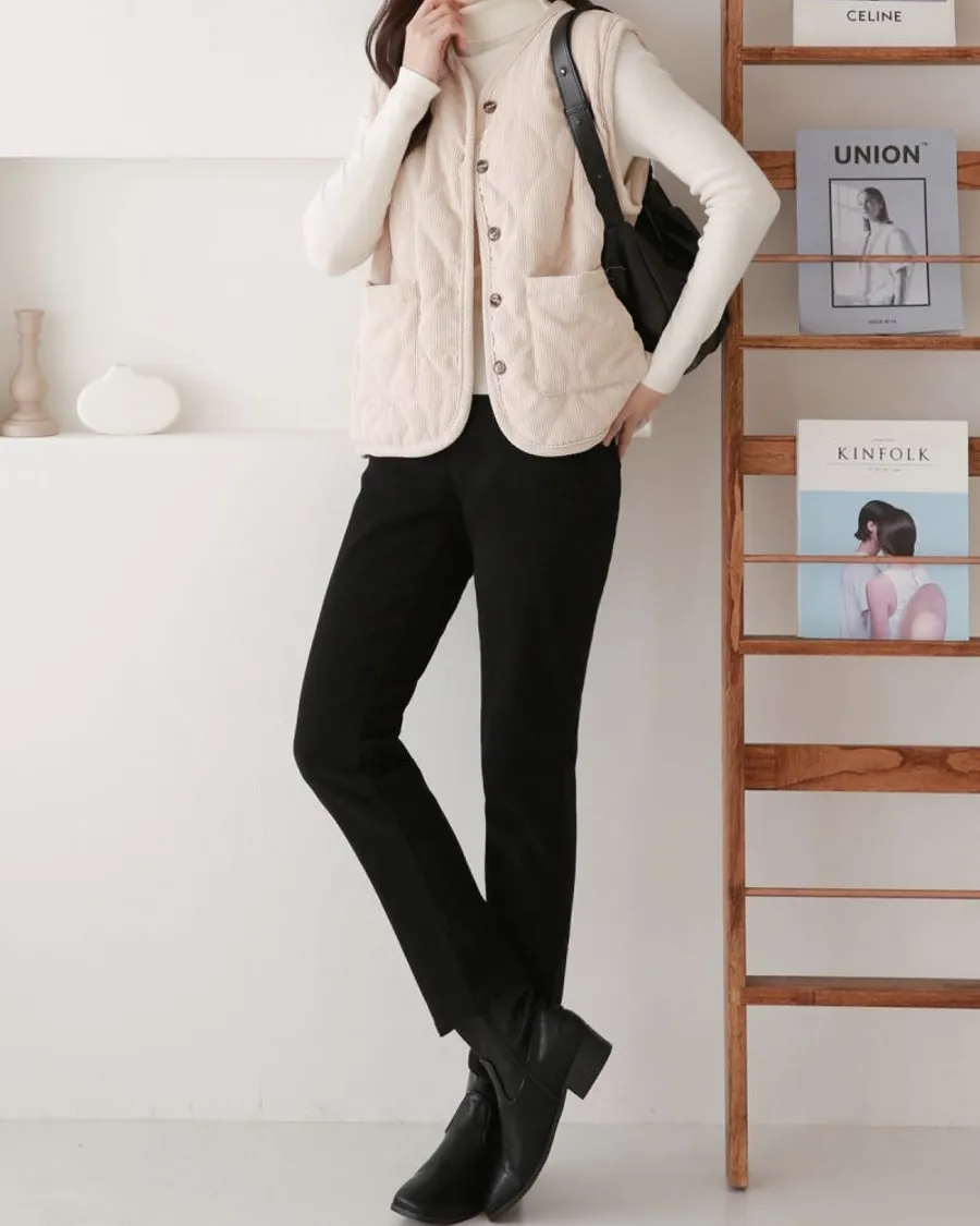 雙面磨毛修身直筒鬆緊褲