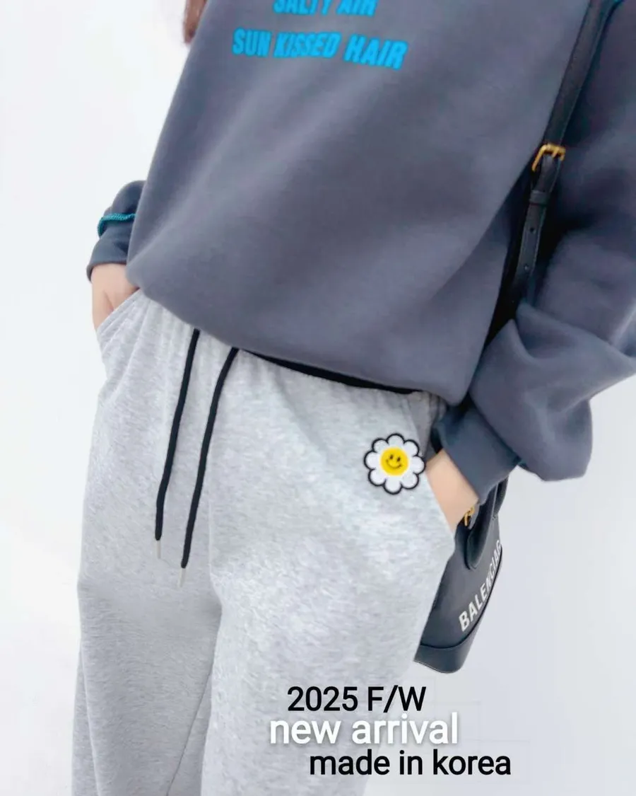 正韓 小花鬆緊腰頭舒適棉休閒褲