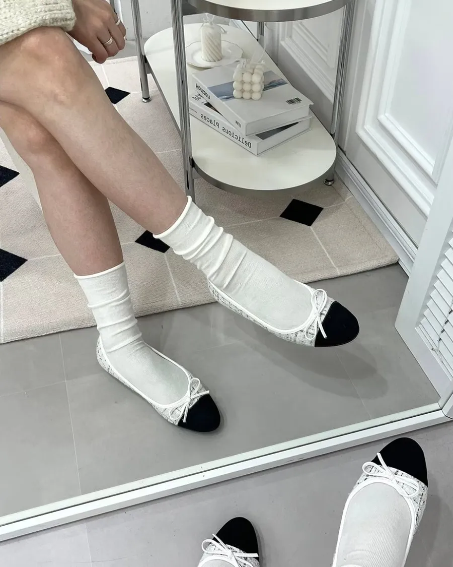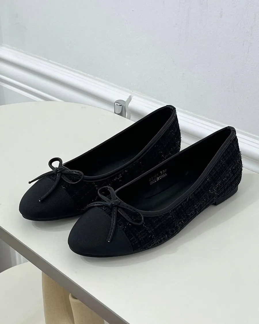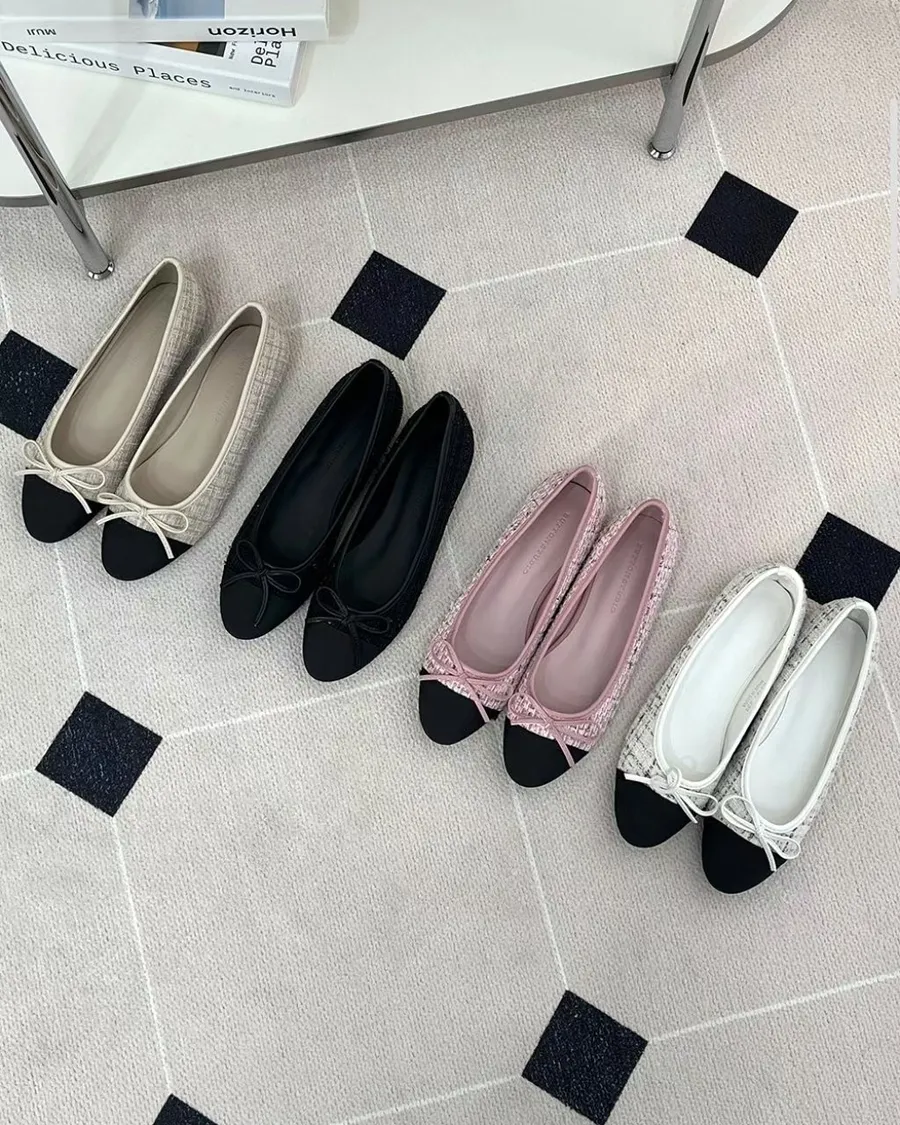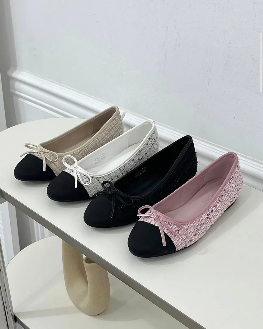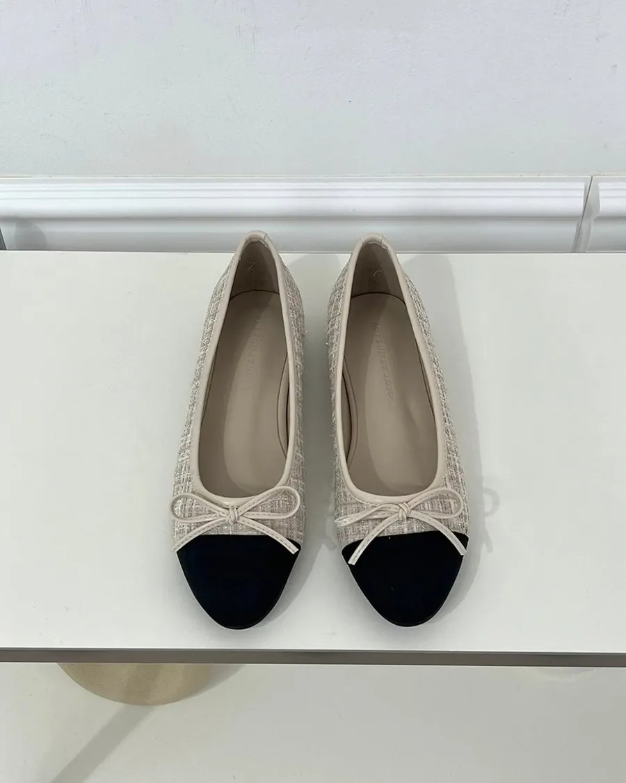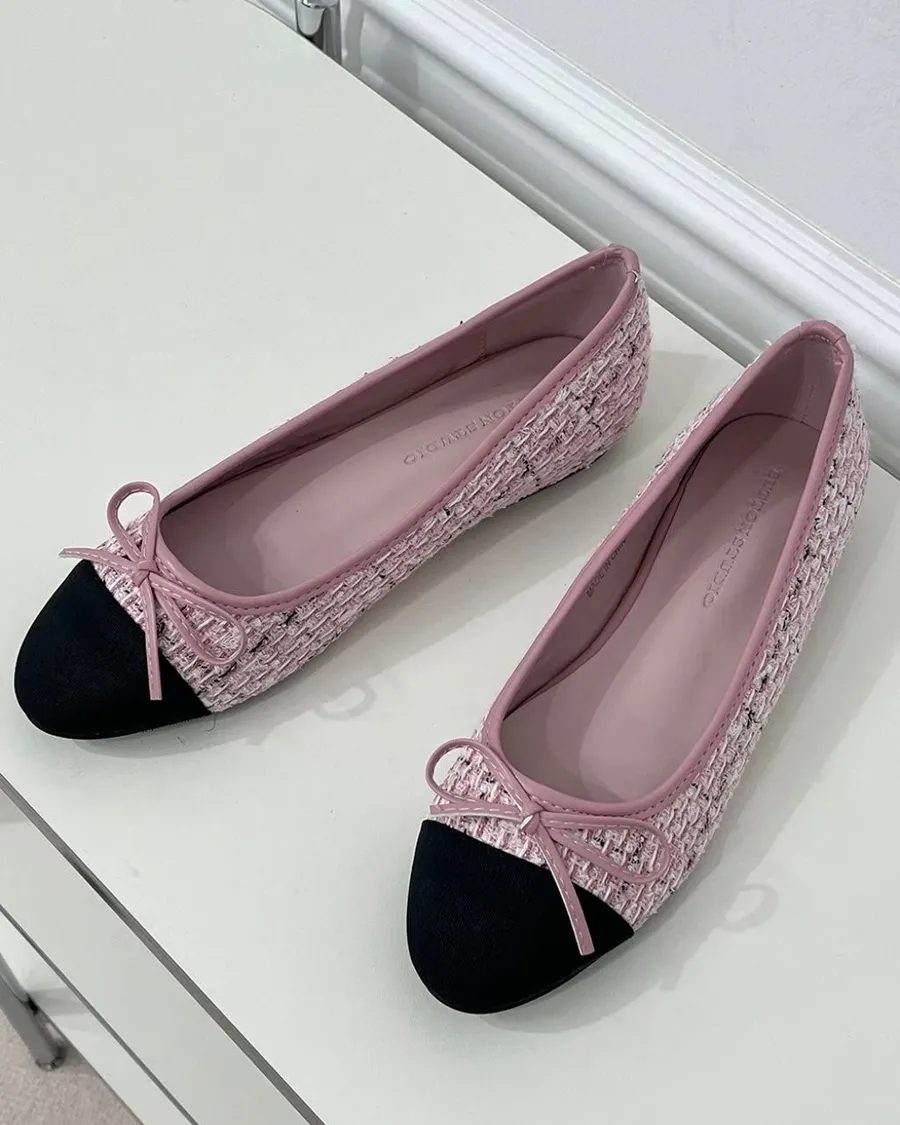 韓國 毛呢香奈兒風低跟娃娃鞋-跟高1cm