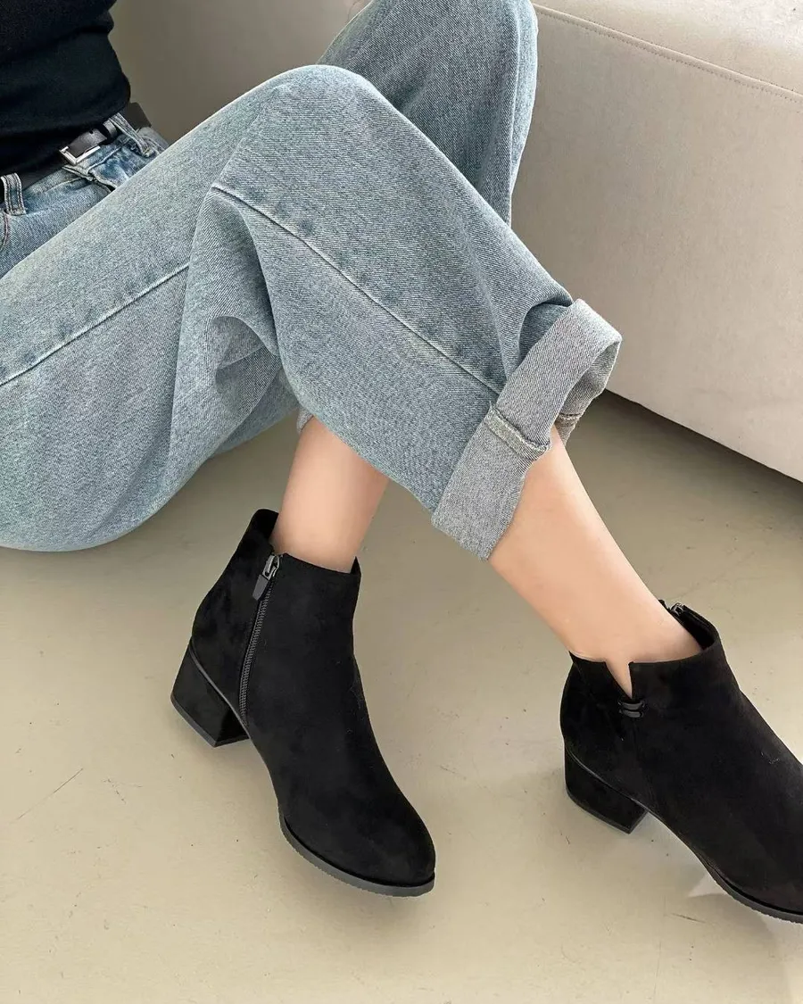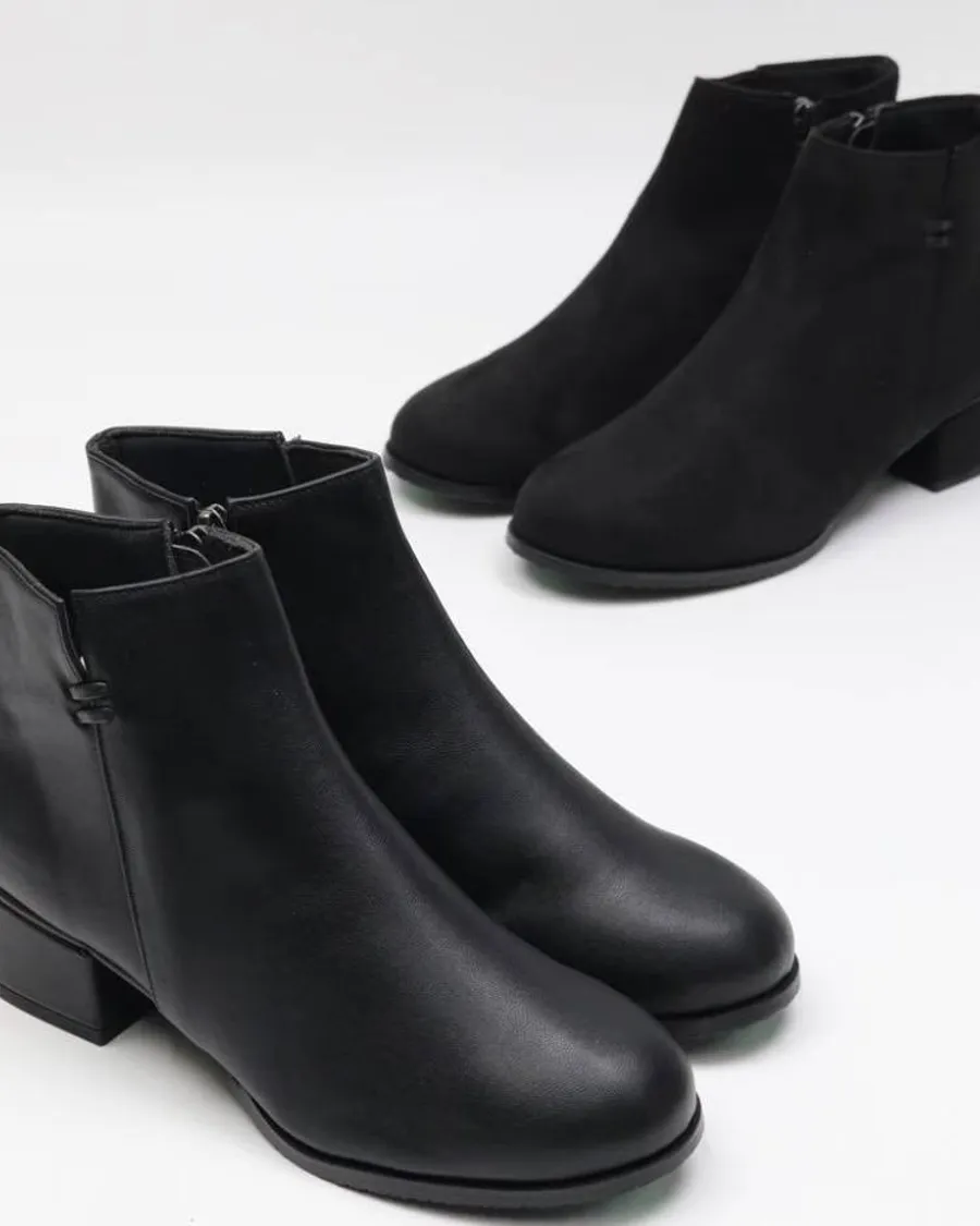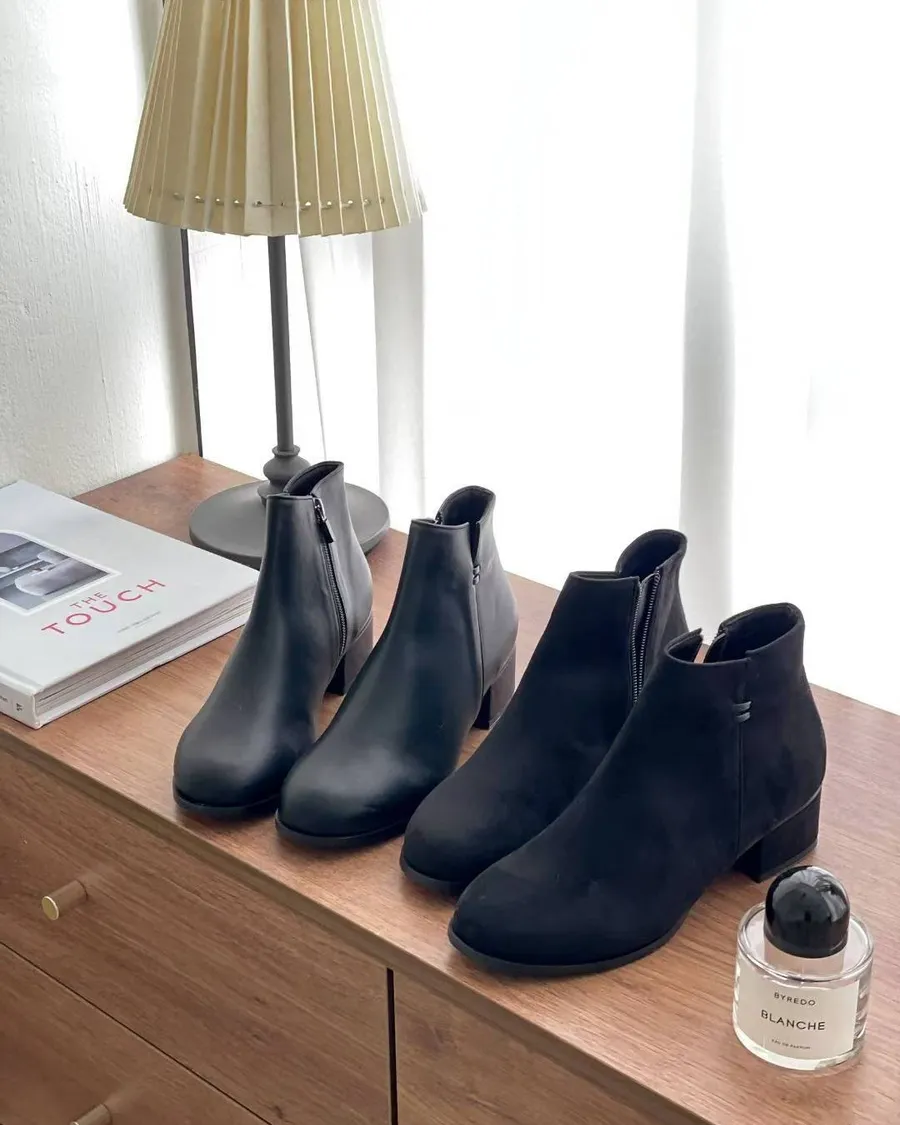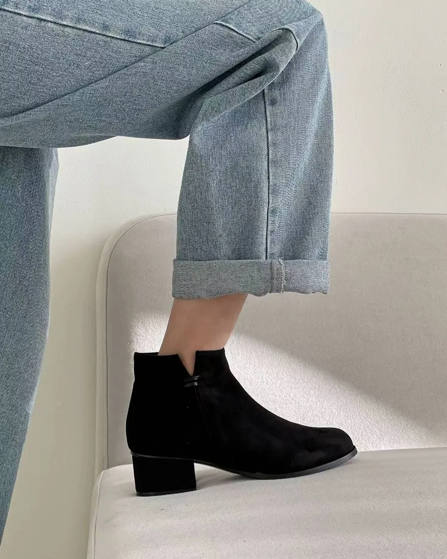 韓國製 百搭簡約側拉鍊短筒靴-跟高5cm