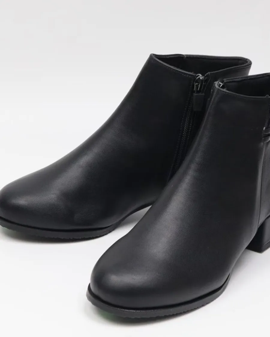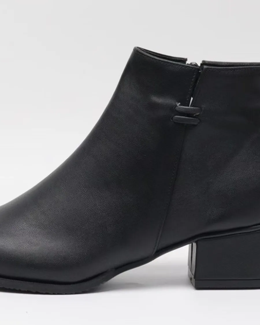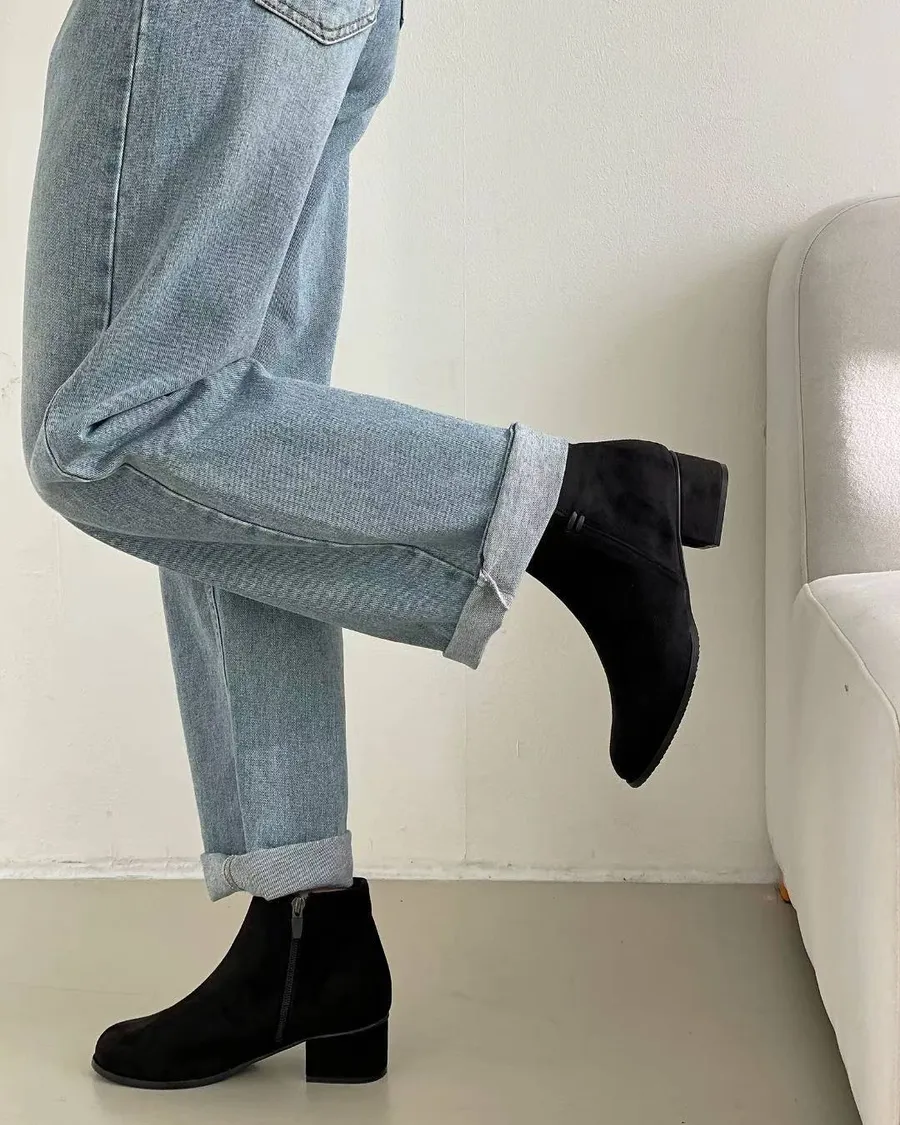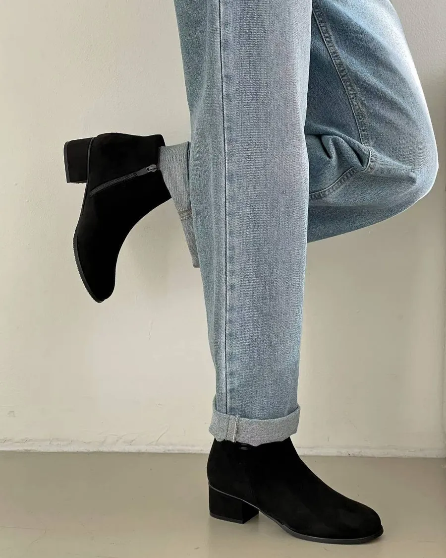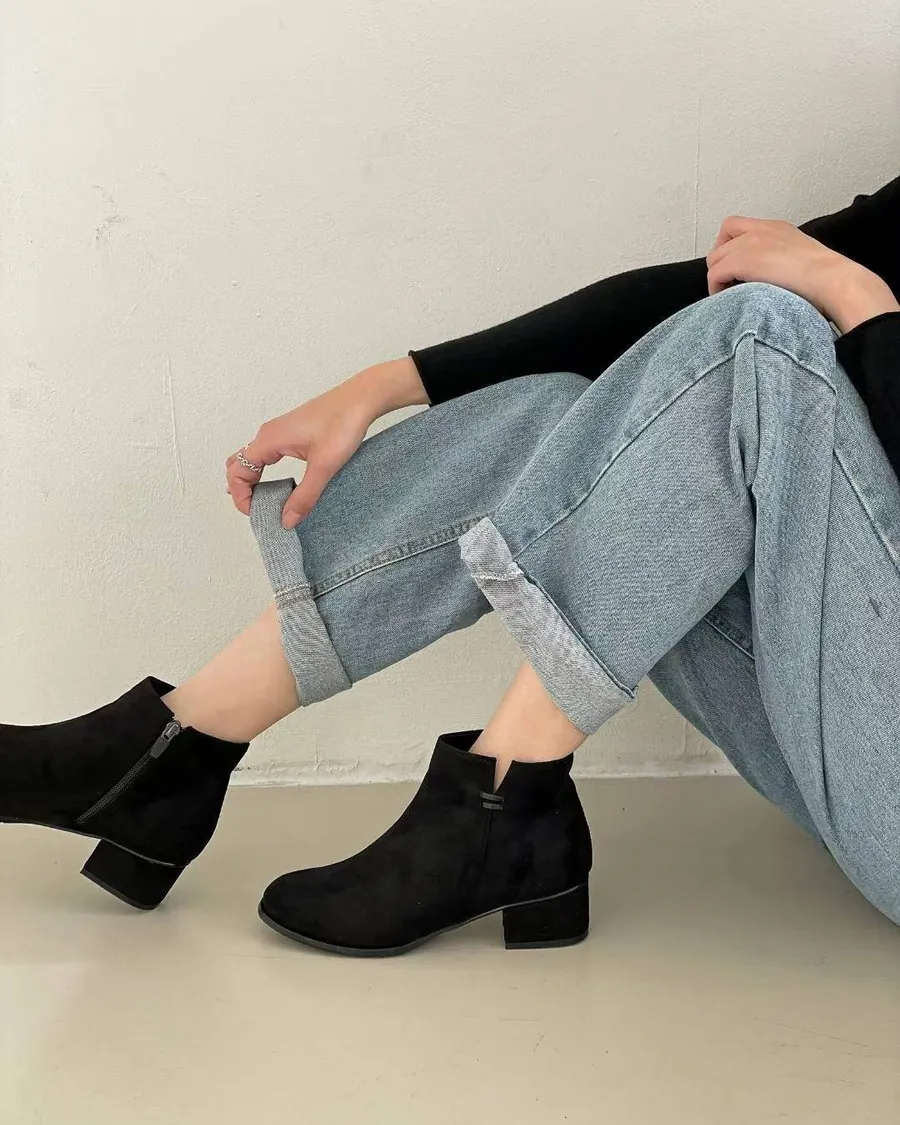 韓國製 百搭簡約側拉鍊短筒靴-跟高5cm