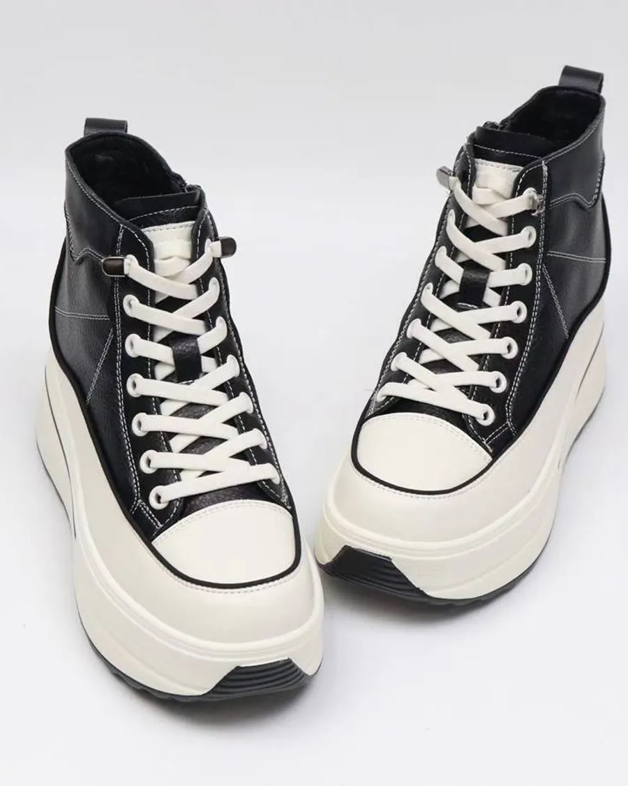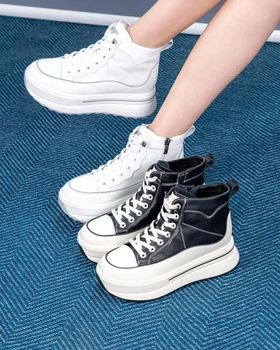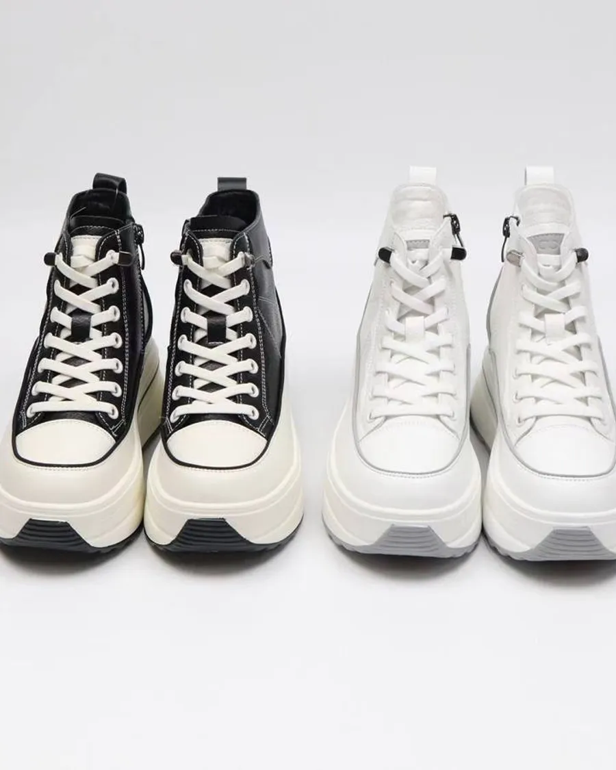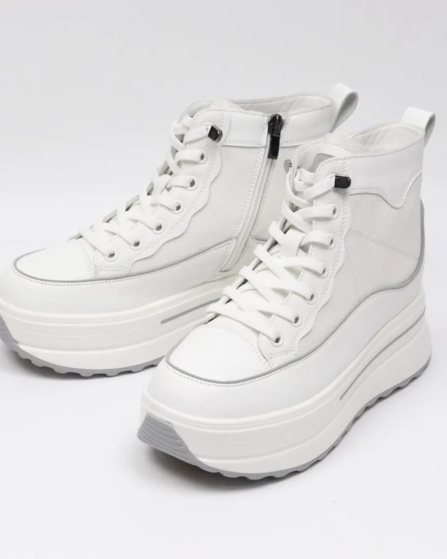 韓國 真皮側拉鍊厚底休閒鞋-跟高6cm