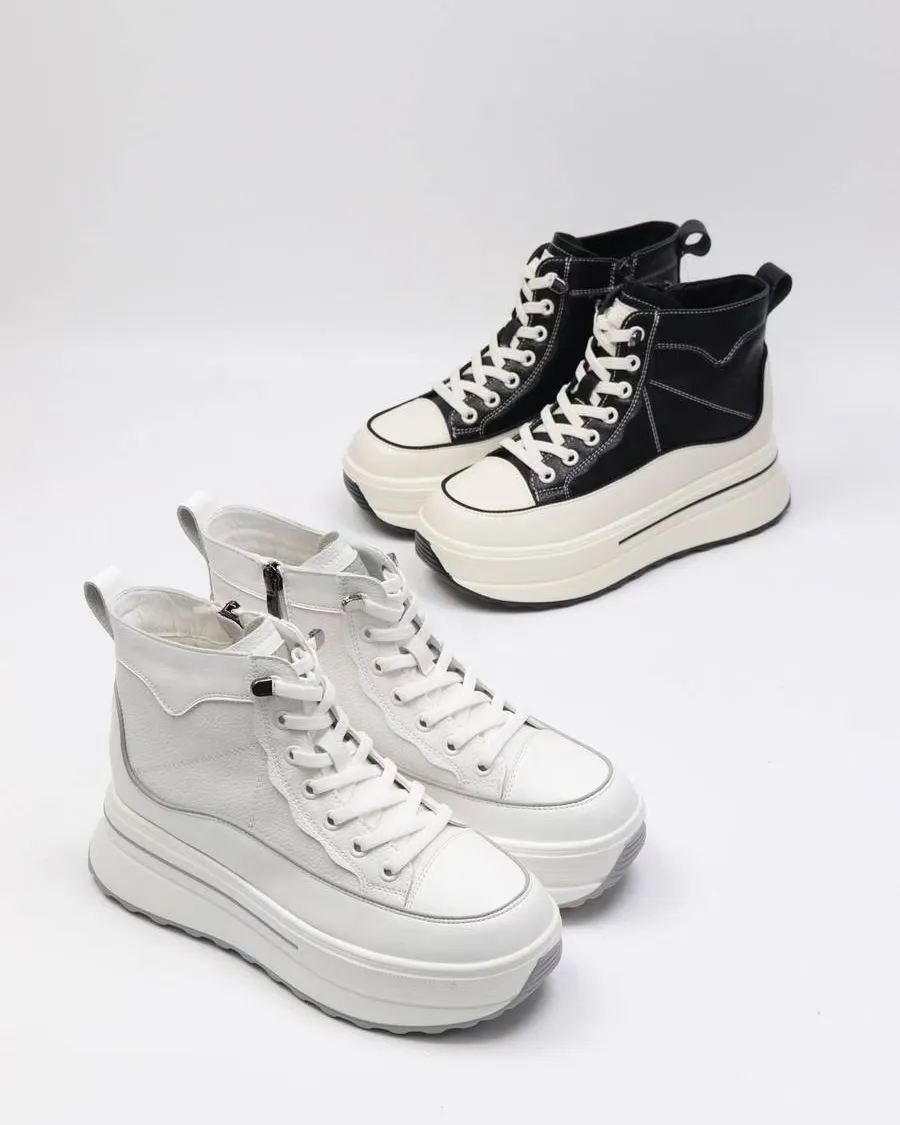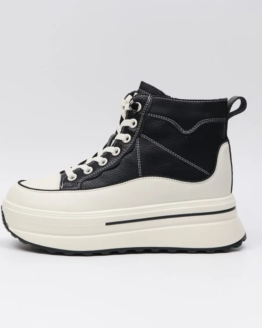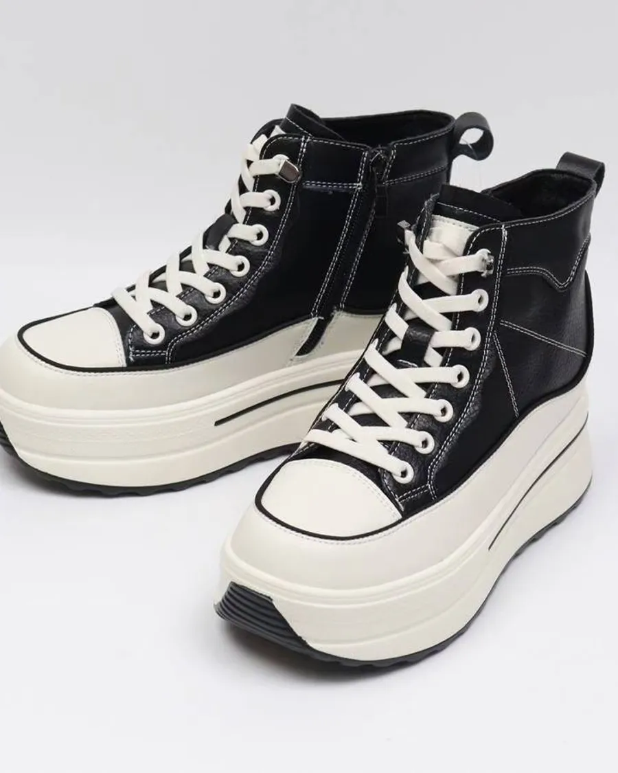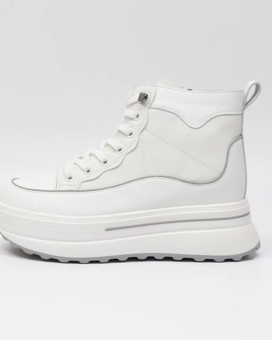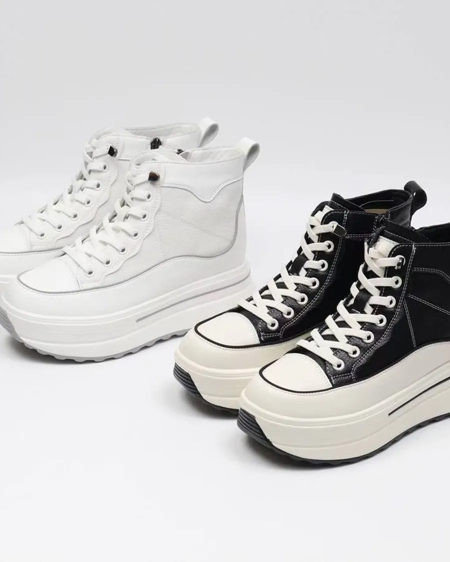 韓國 真皮側拉鍊厚底休閒鞋-跟高6cm