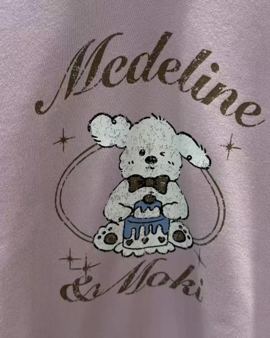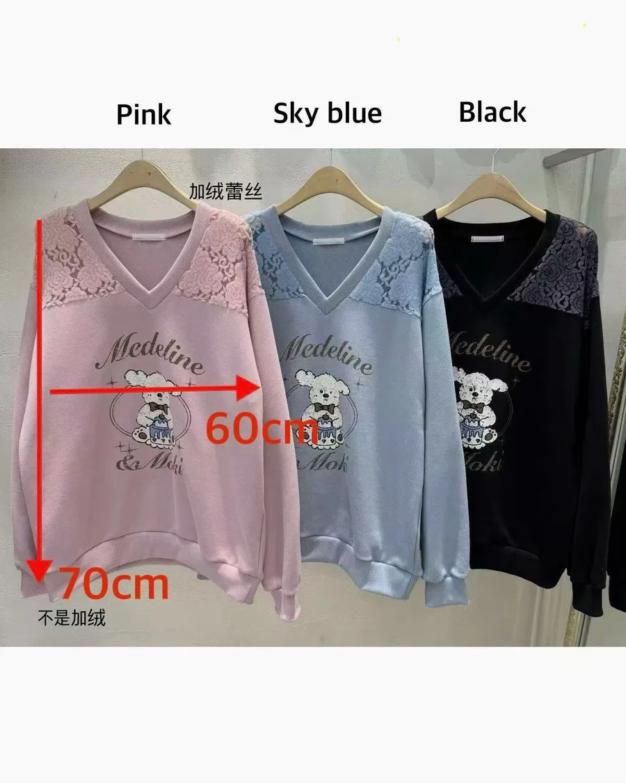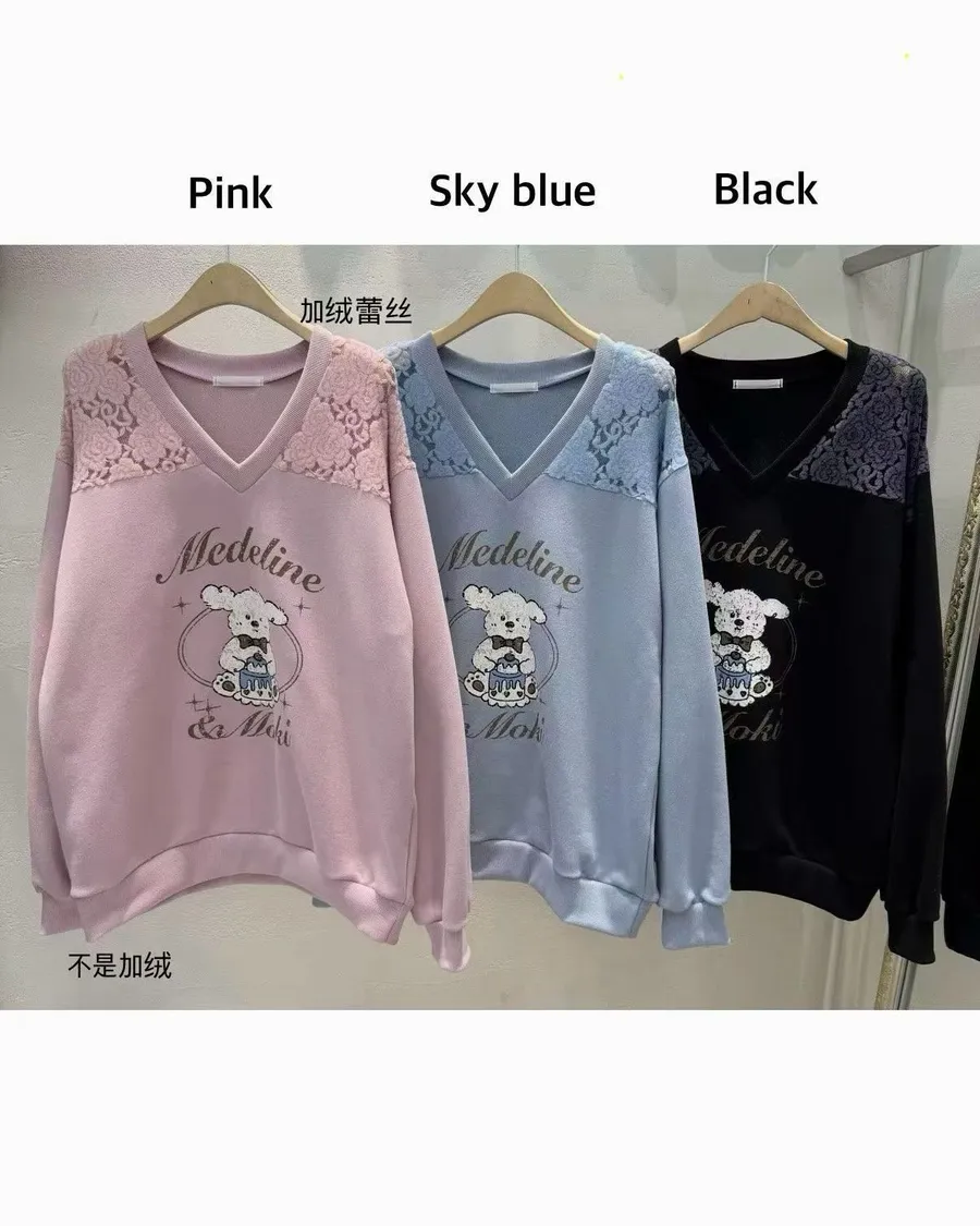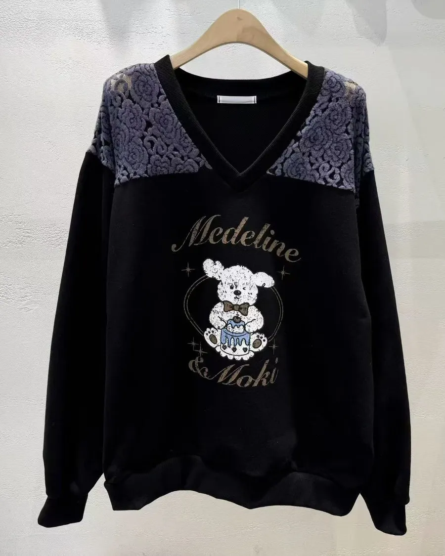 正韓 翹耳狗V領肩壓花舒適棉質上衣