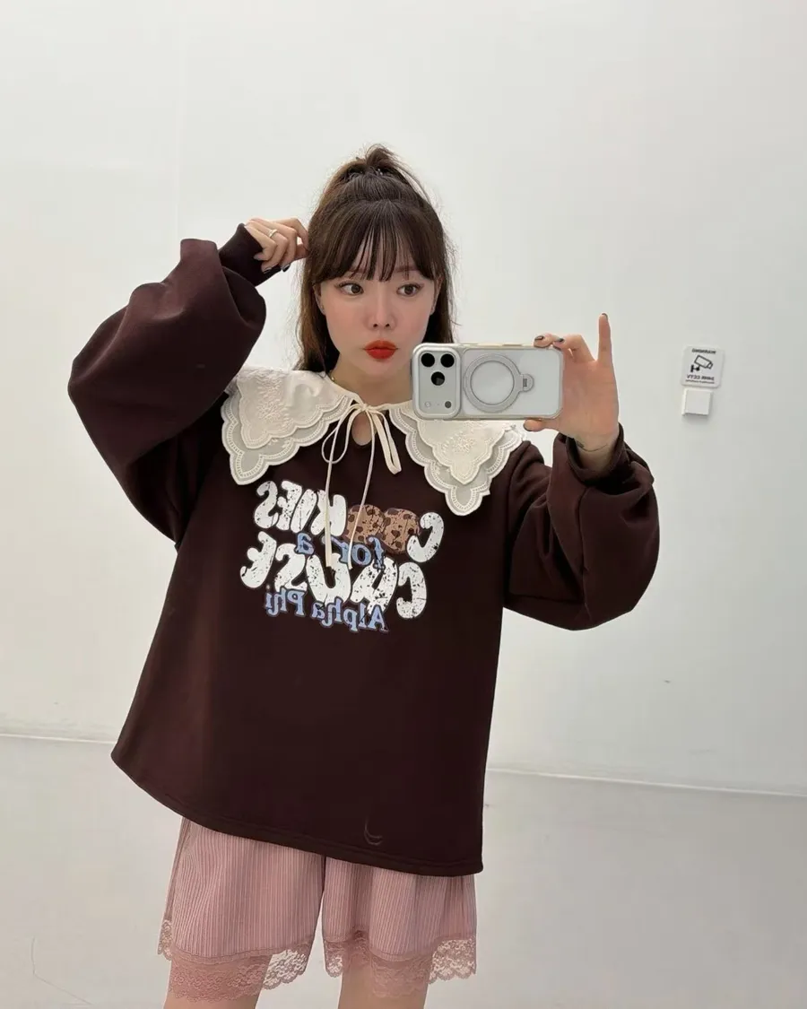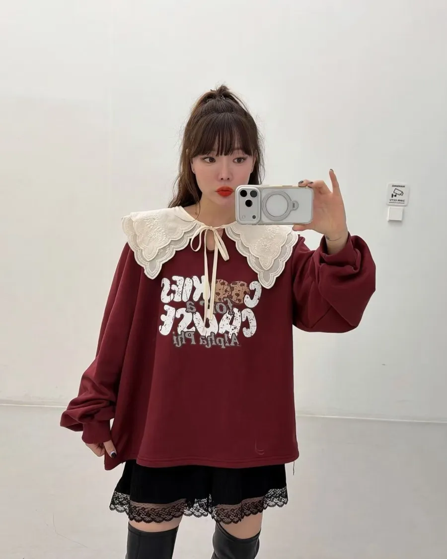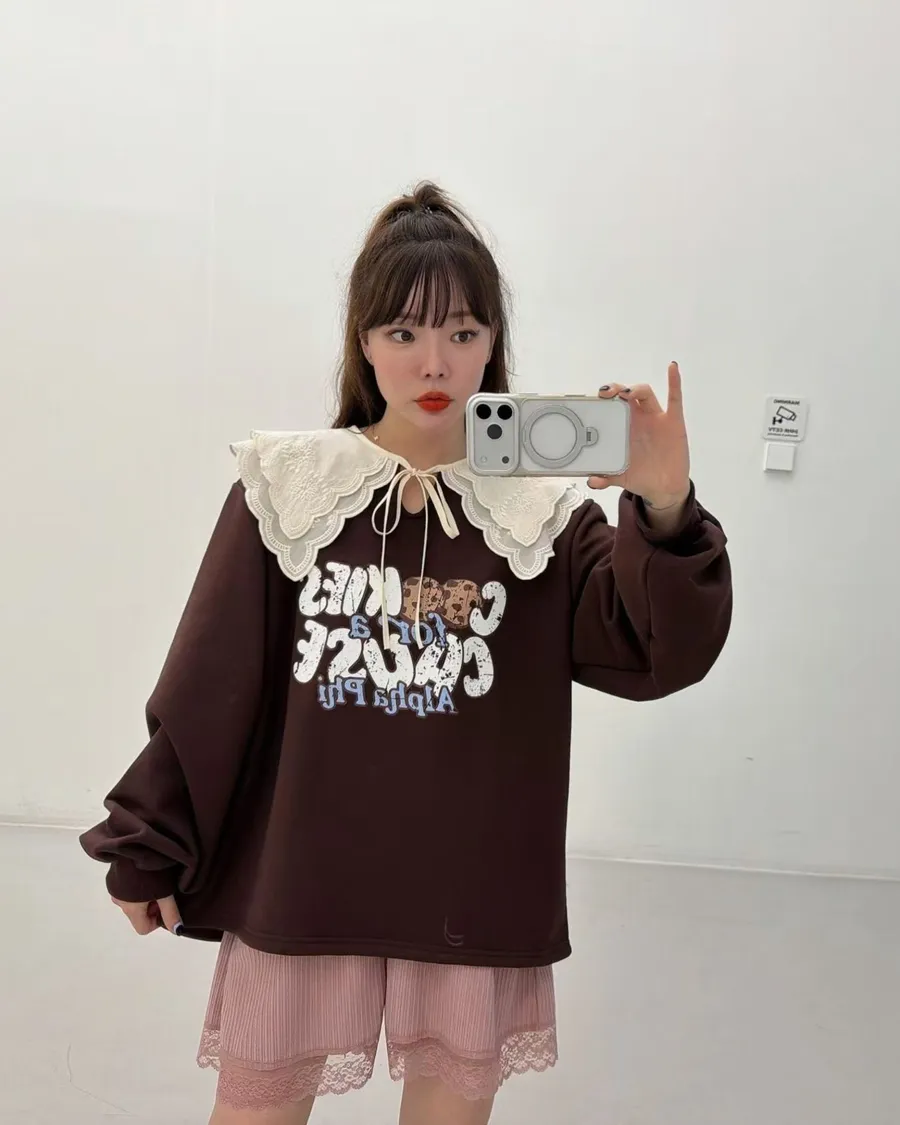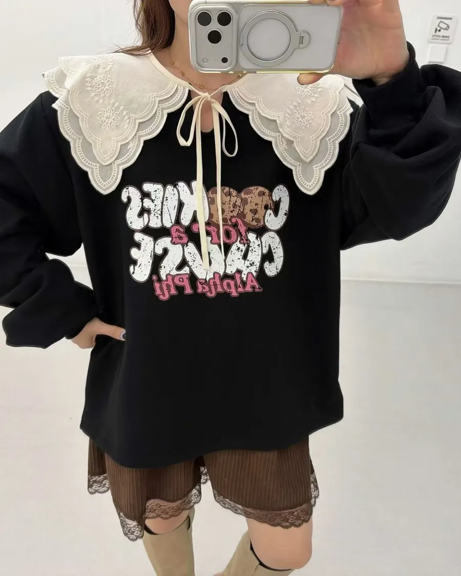 正韓 領片綁帶設計款棉質上衣