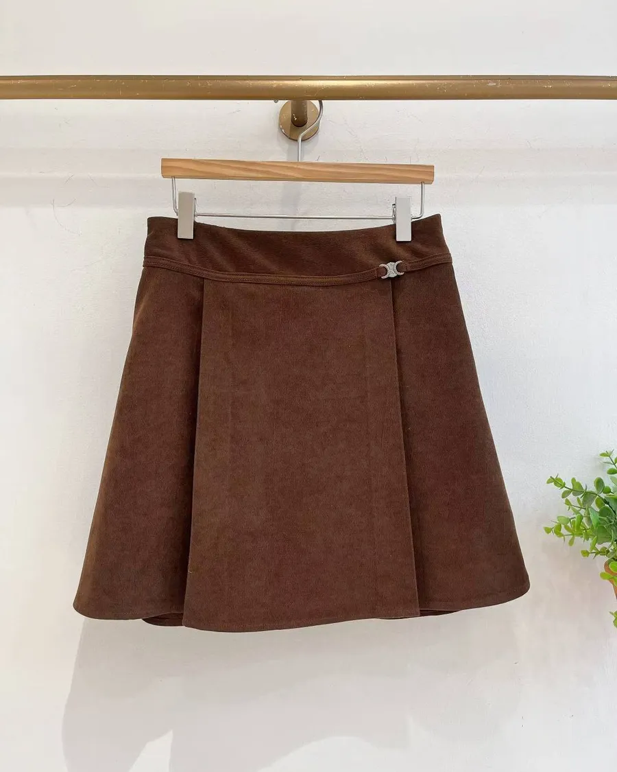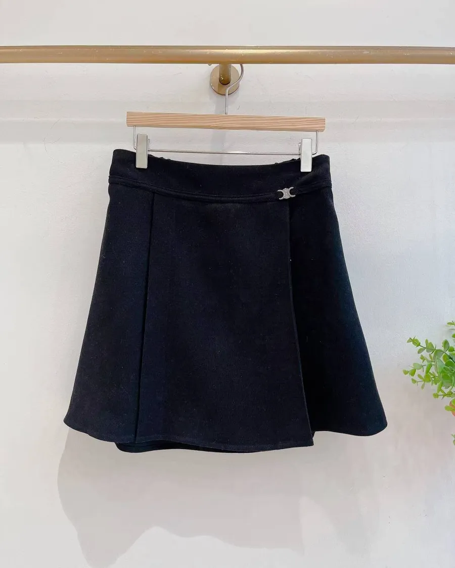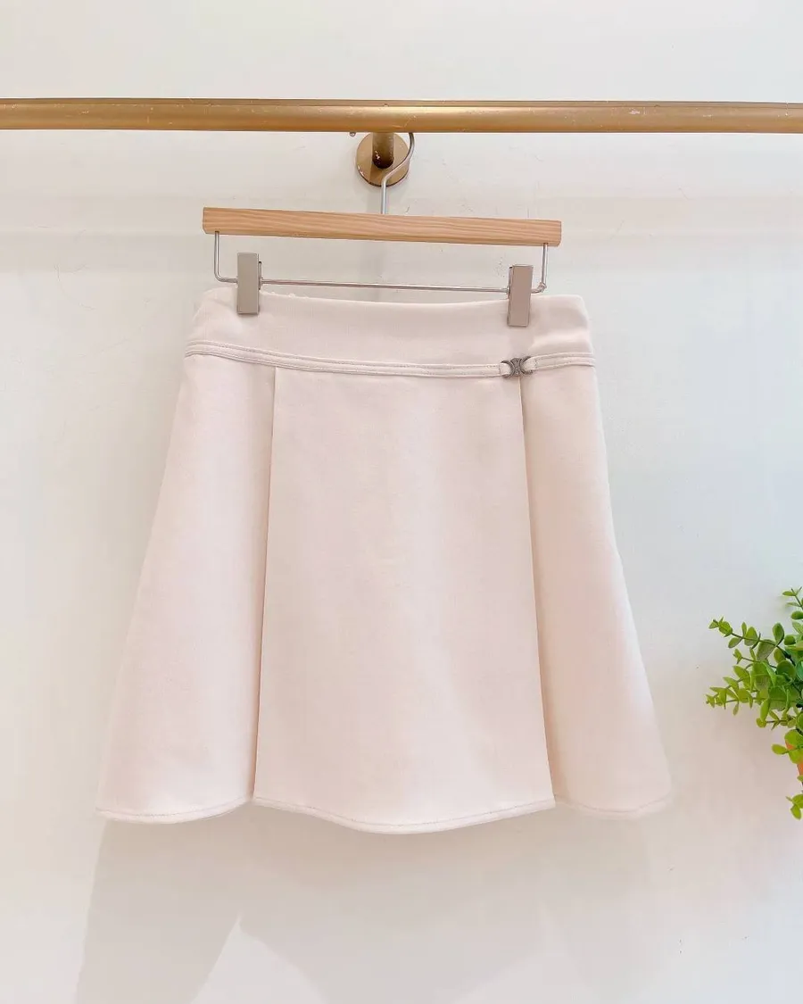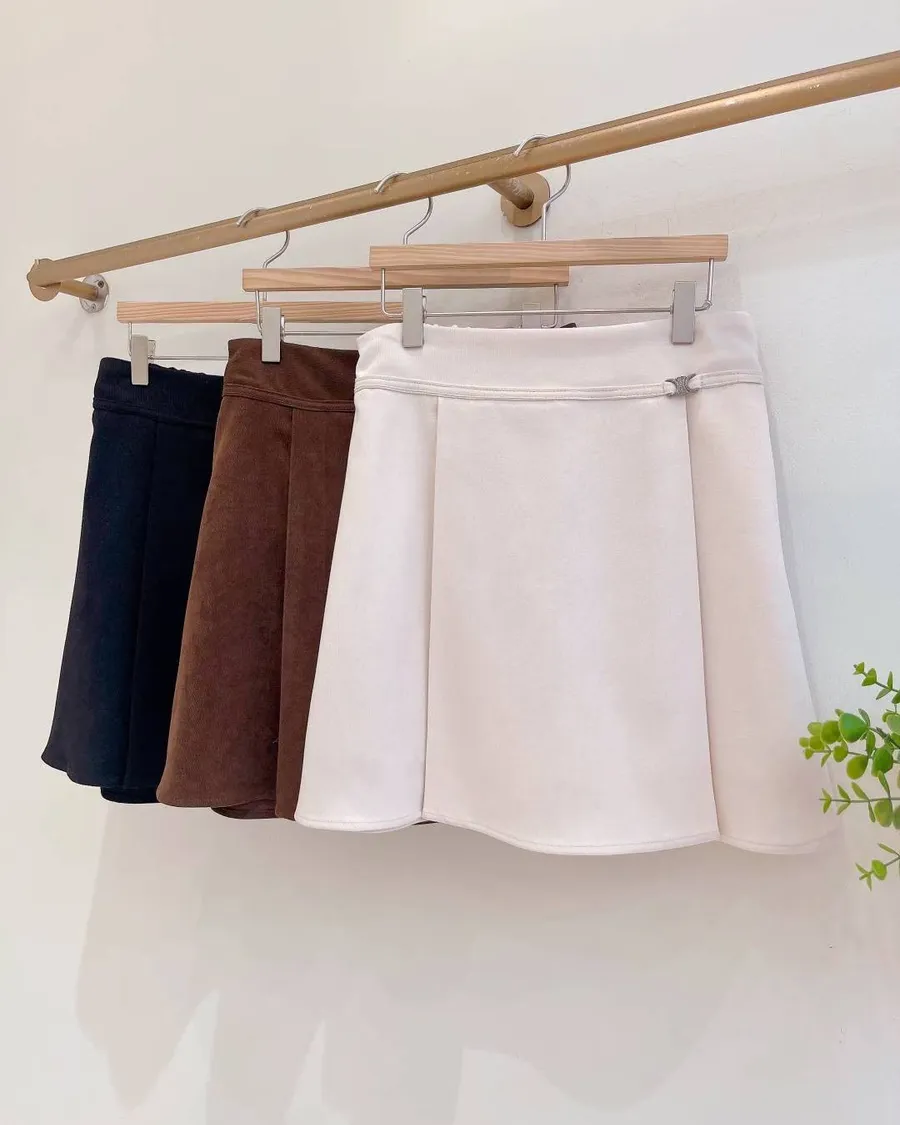 正韓 銀釦腰帶後鬆緊側壓褶短褲裙