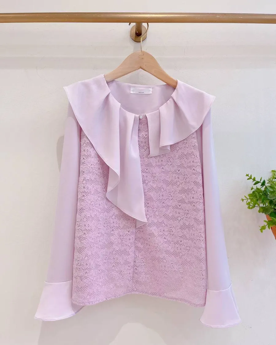 正韓 不對稱領片壓花上衣