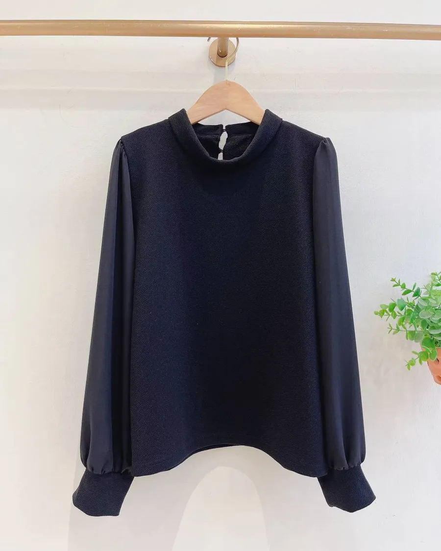 正韓 垂墜領氣質雪紡上衣