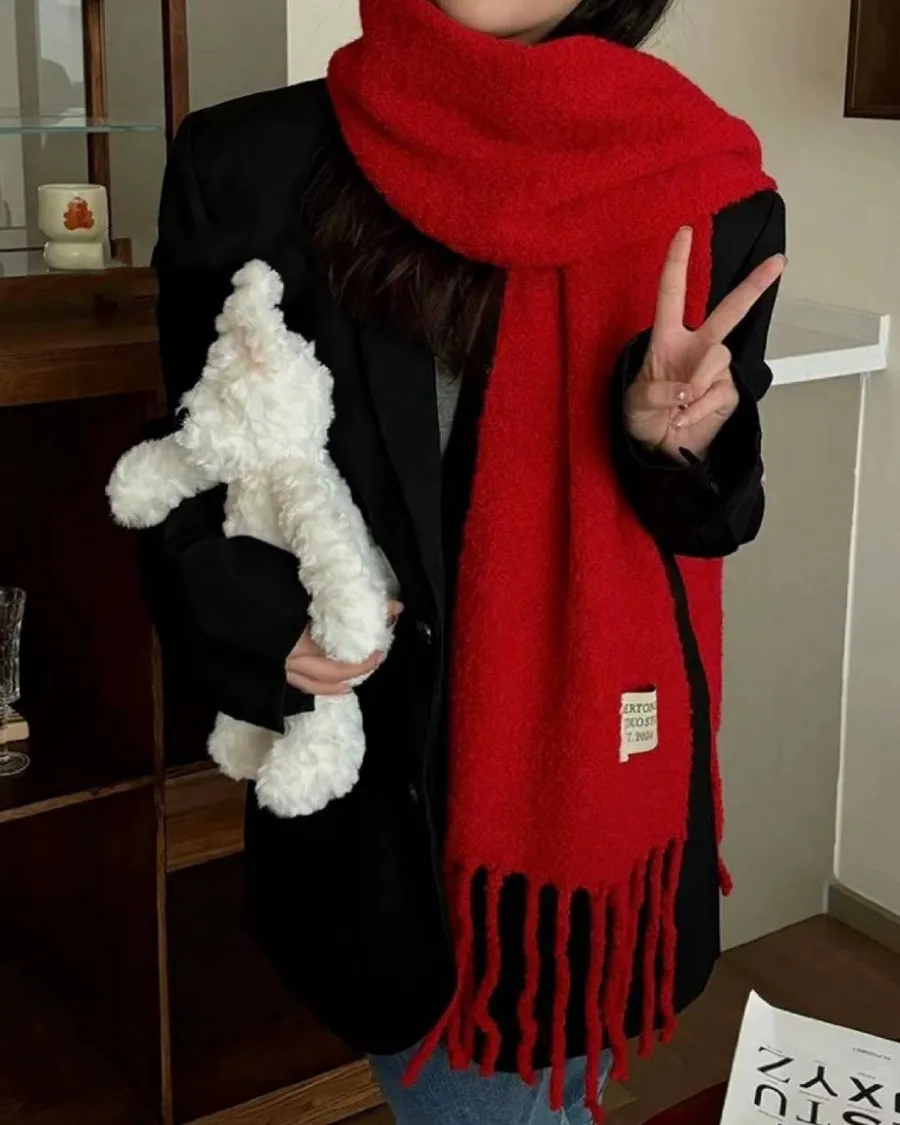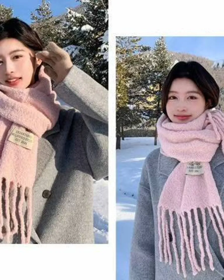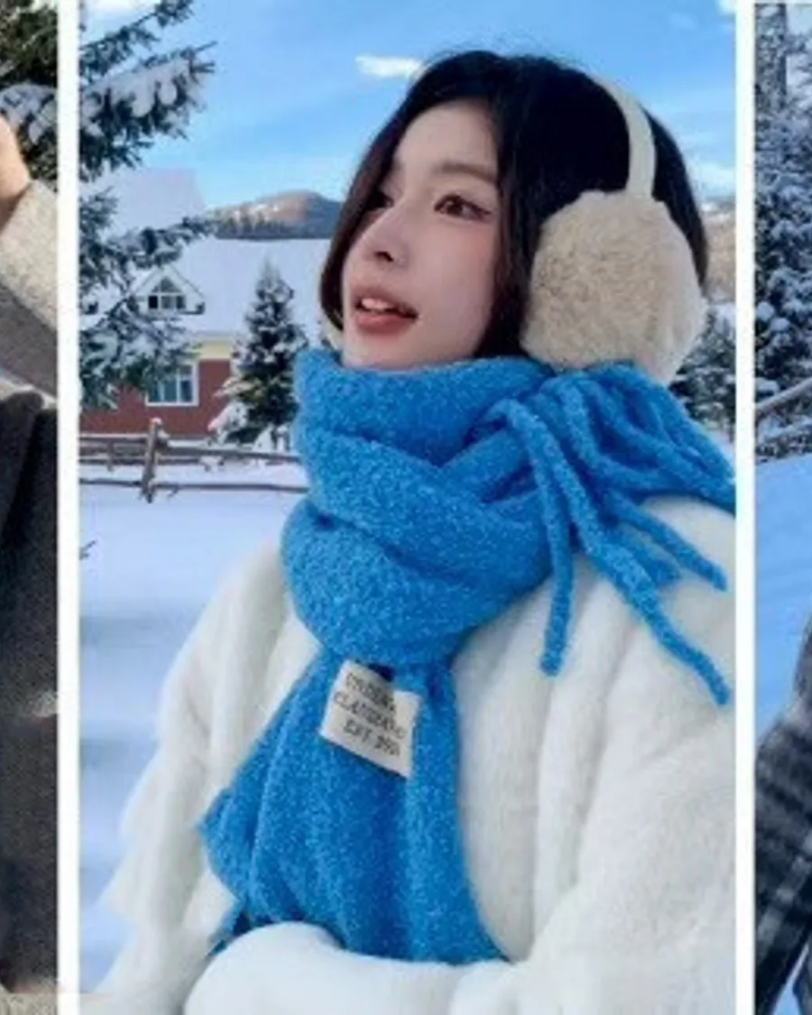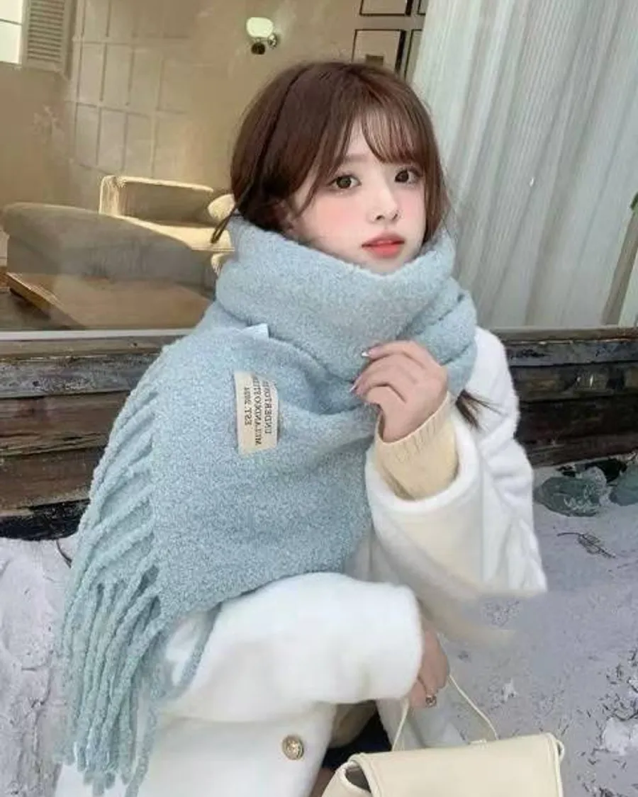 韓國 寶寶絨抽鬚溫暖圍巾