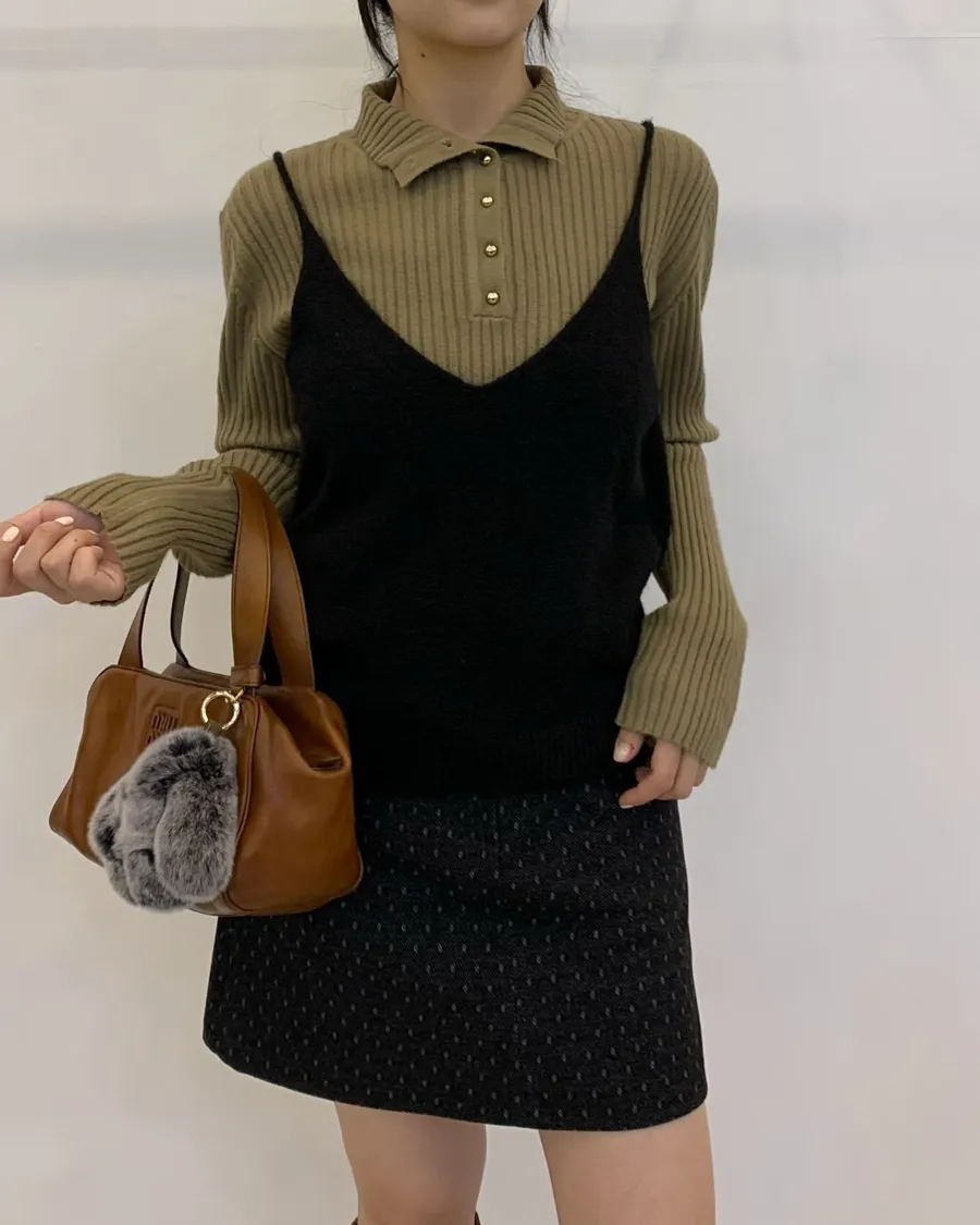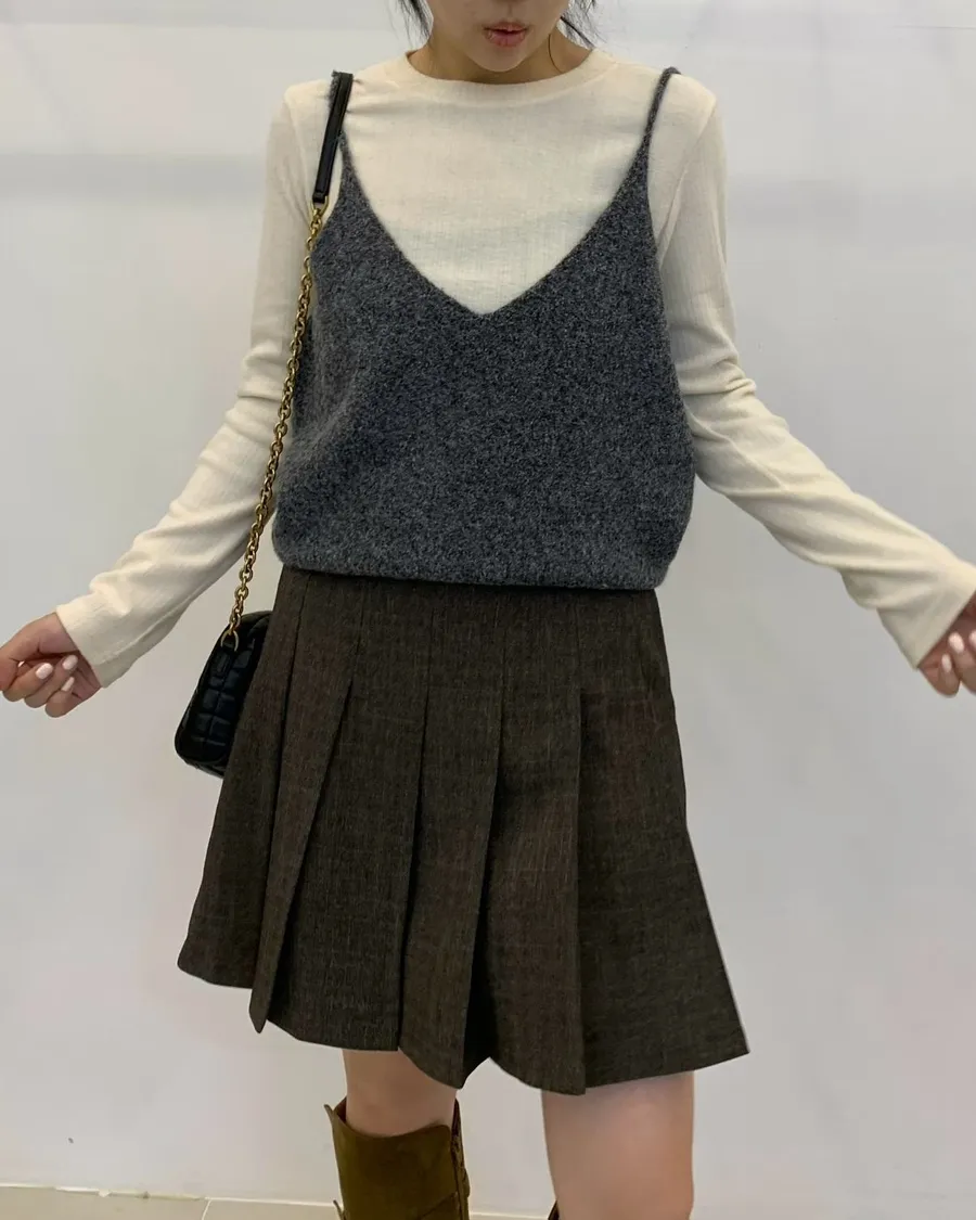 韓製美麗諾羊毛前後v領背心