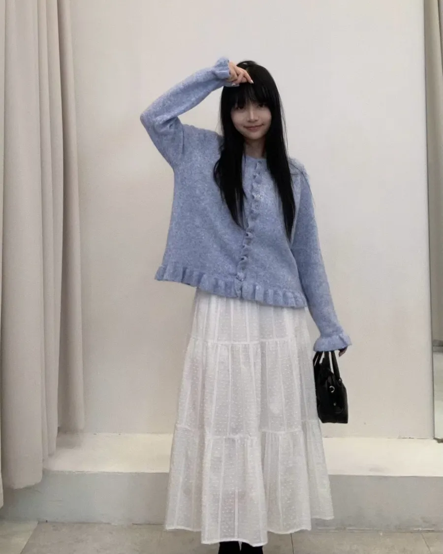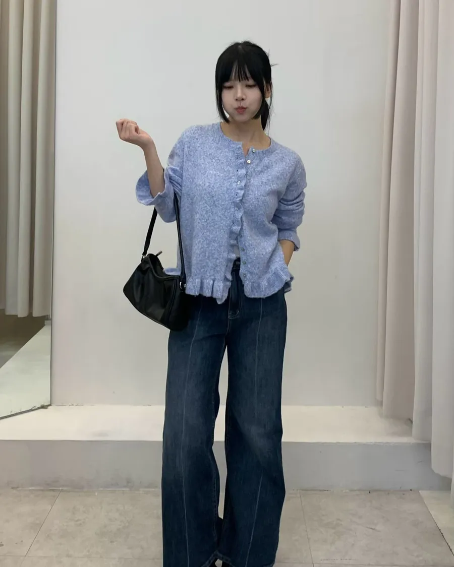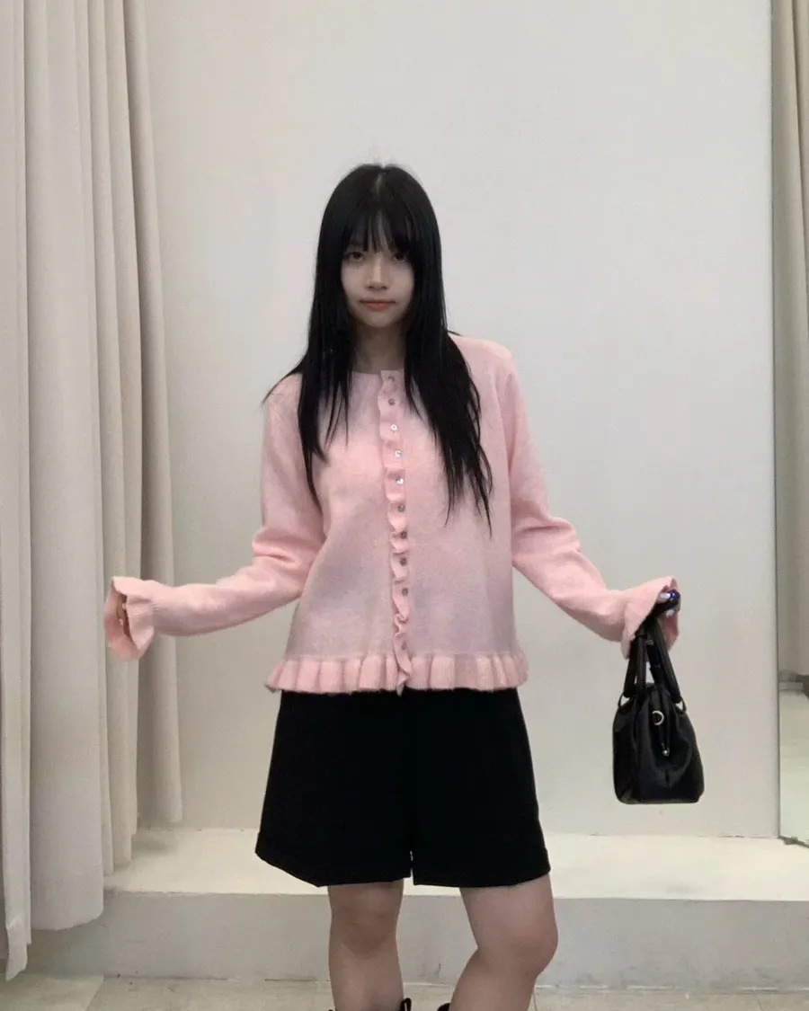 韓製花苞設計混色羊毛上衣