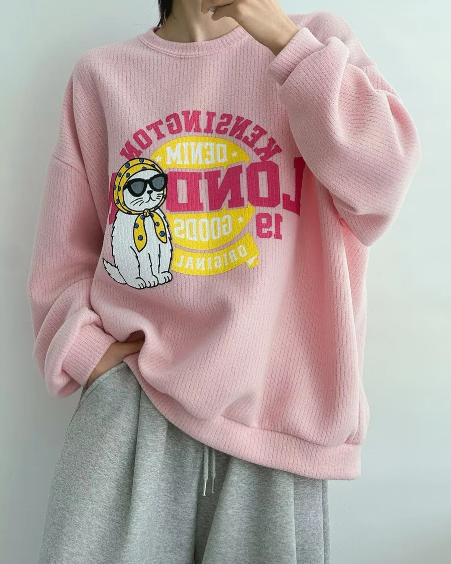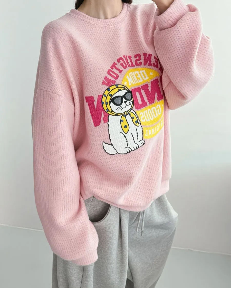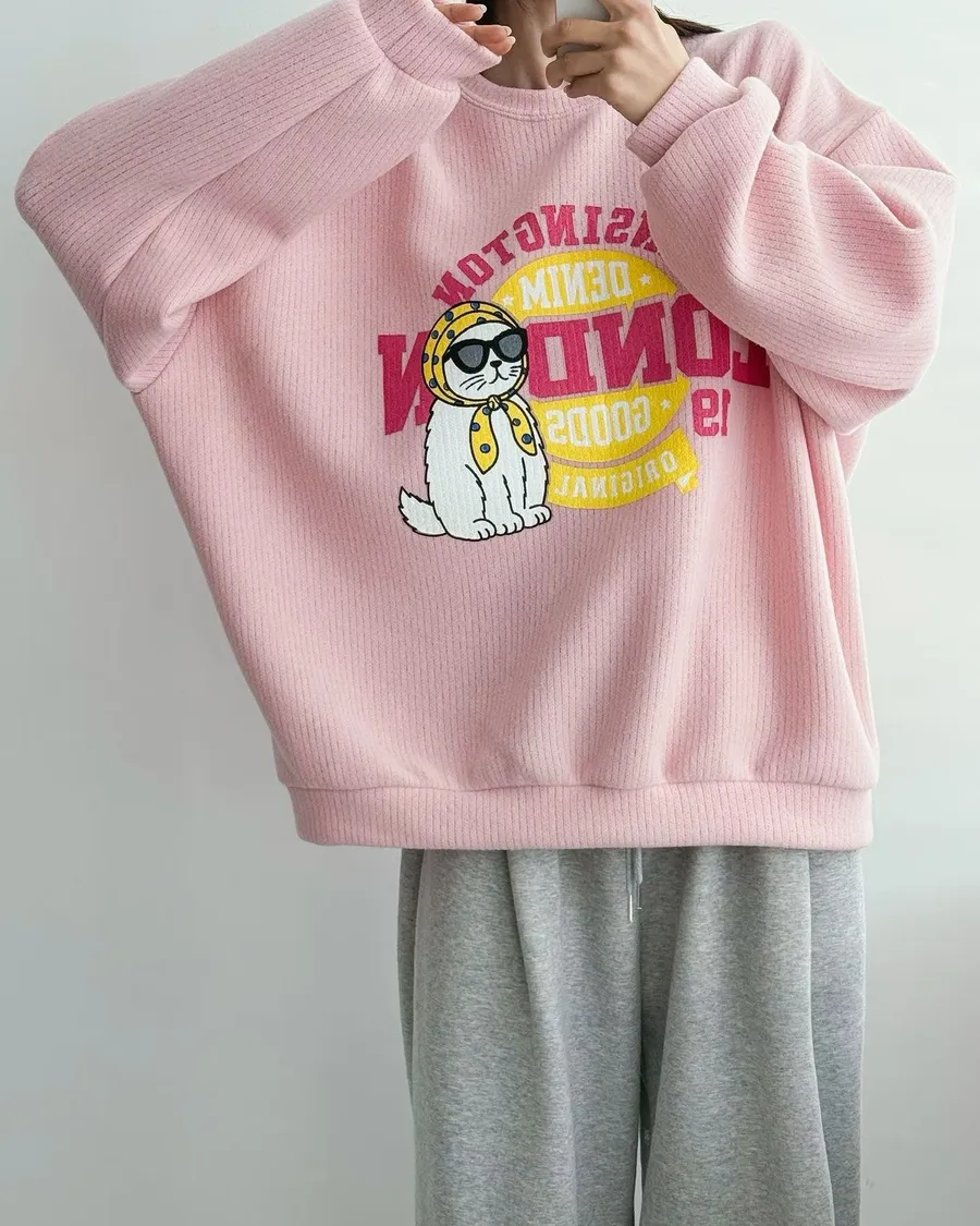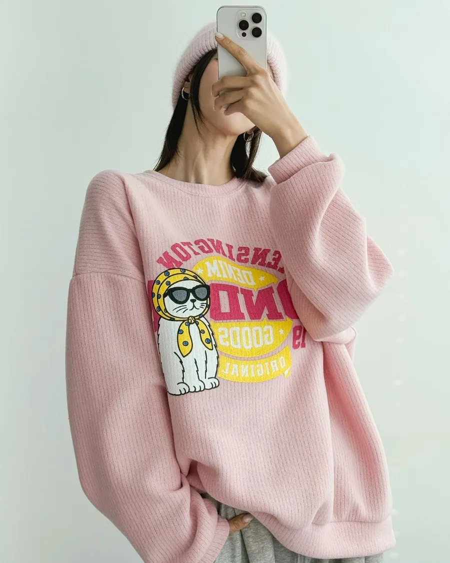 正韓 綁頭巾貓咪外磨毛舒適上衣