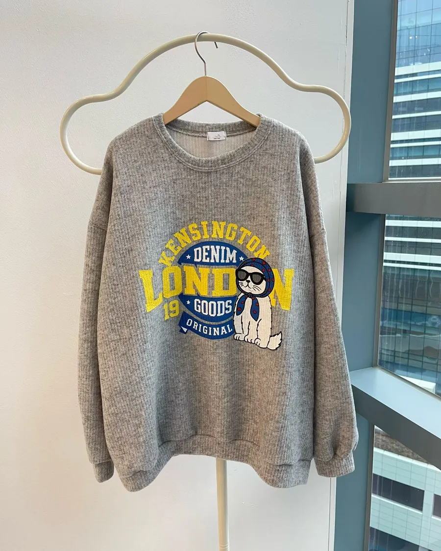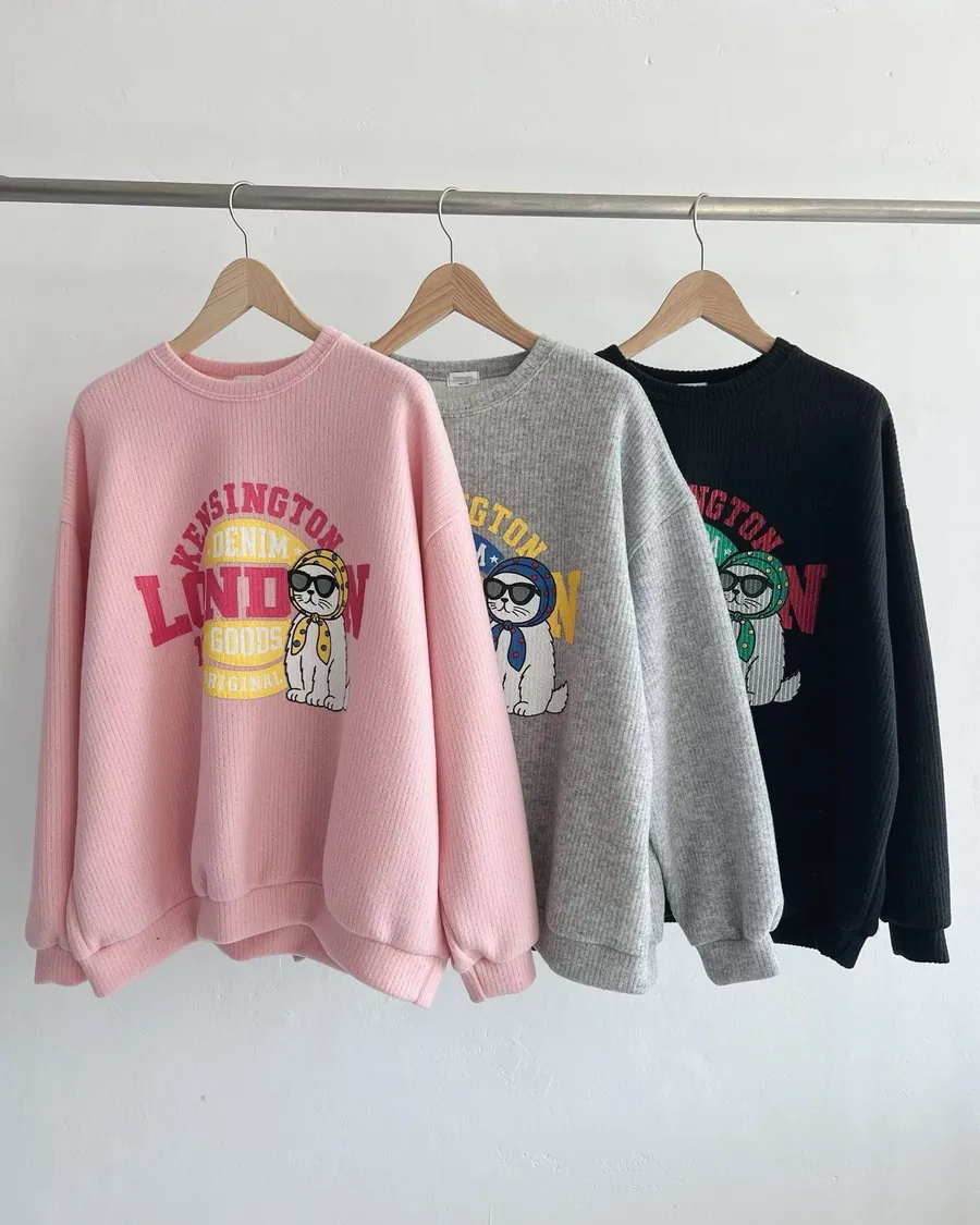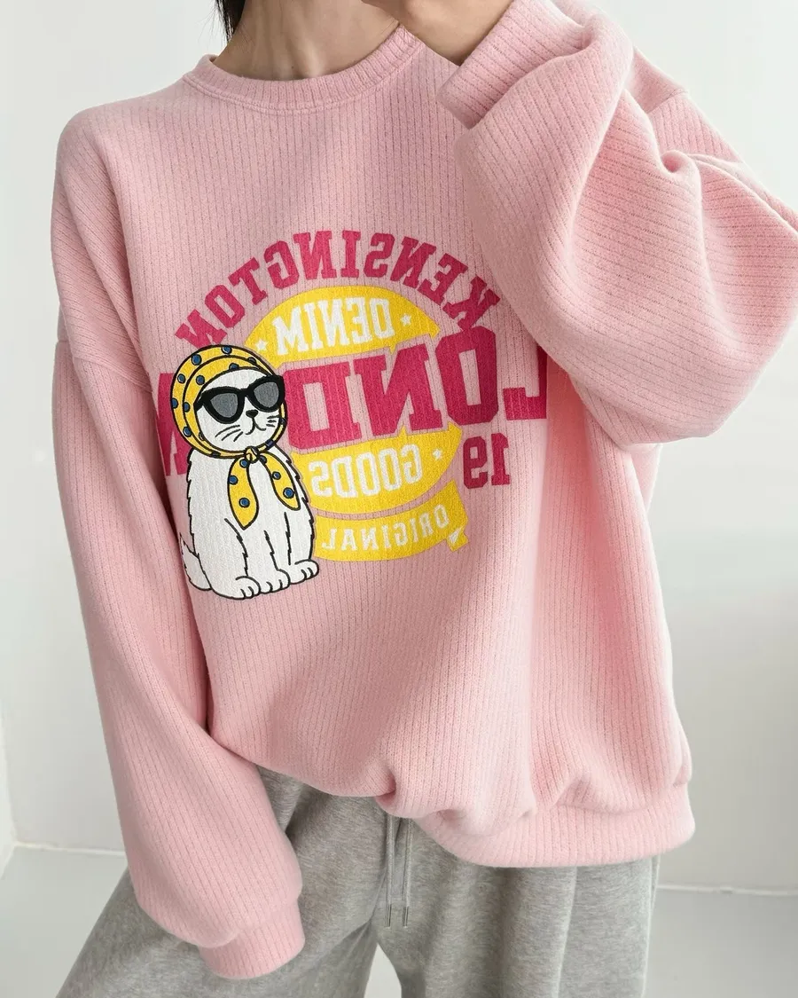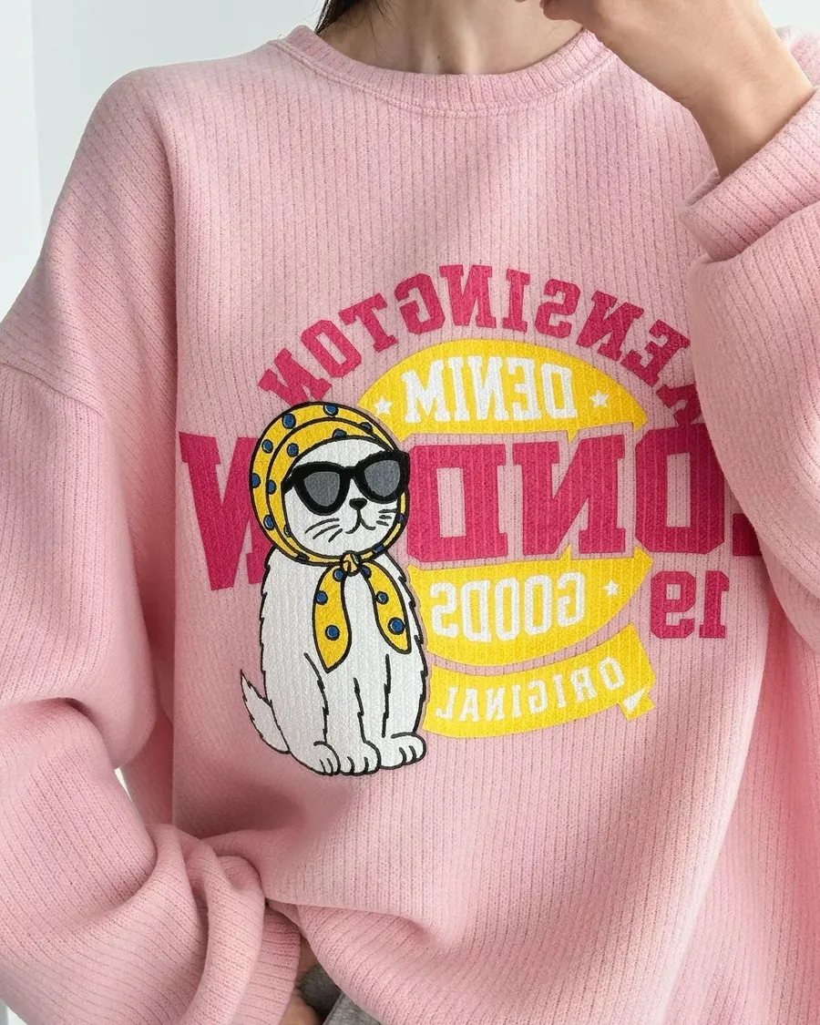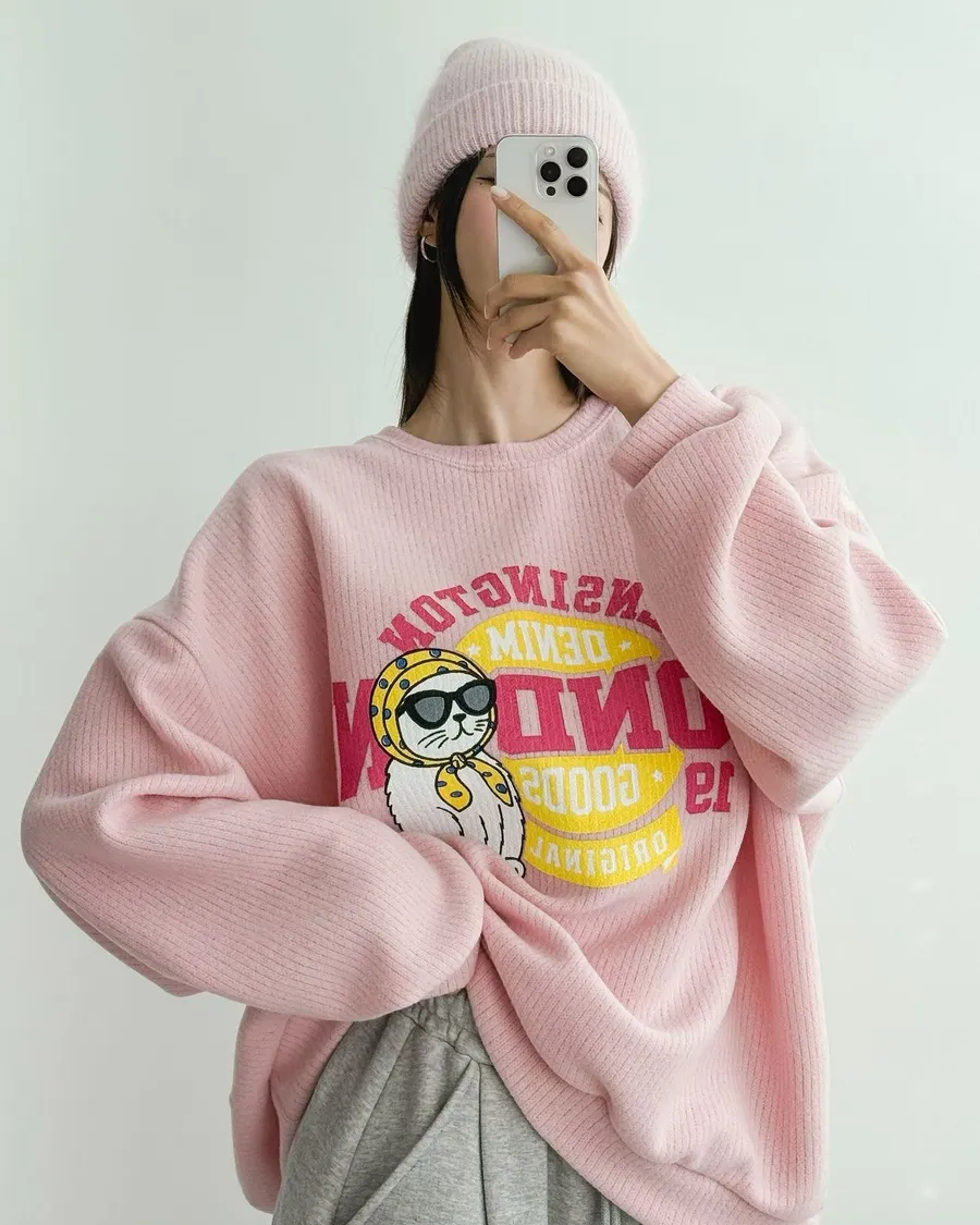 正韓 綁頭巾貓咪外磨毛舒適上衣