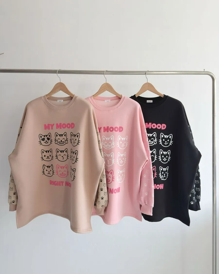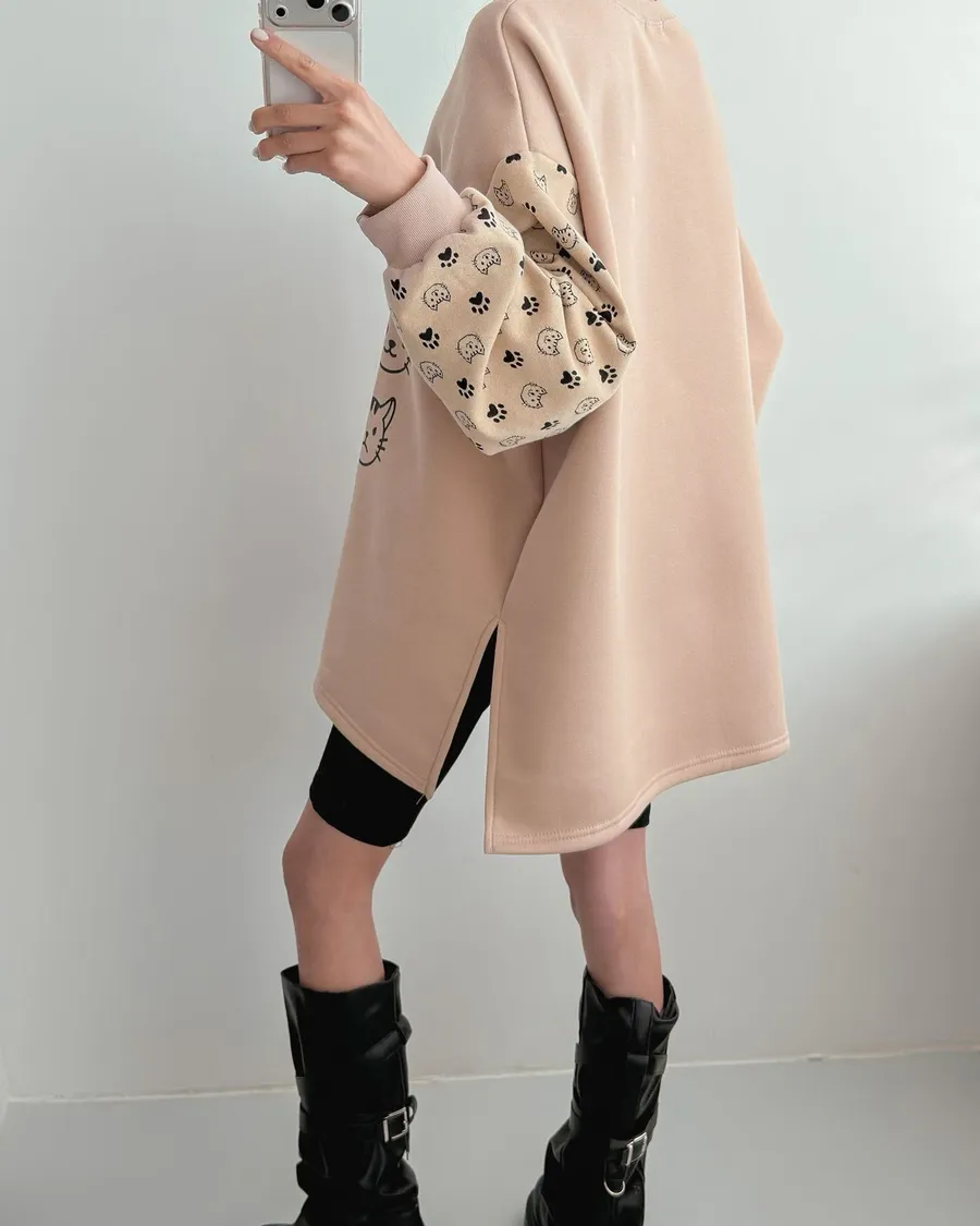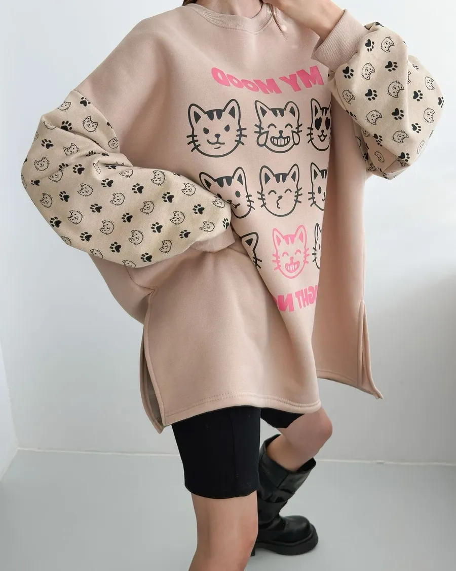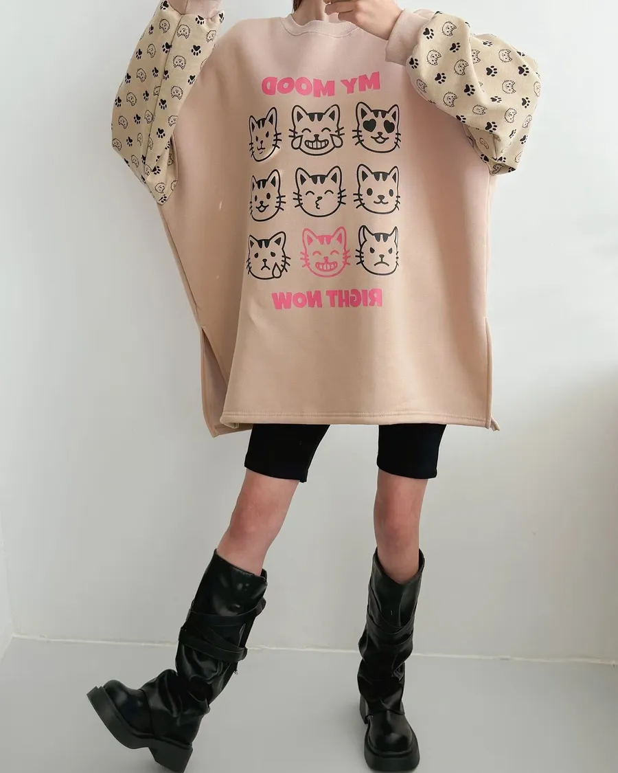正韓 貓咪九宮格加絨長版上衣