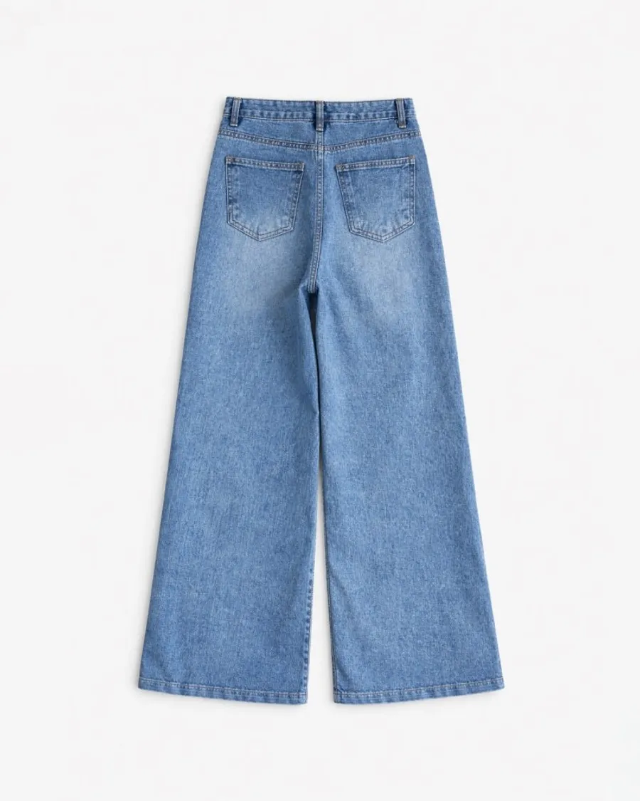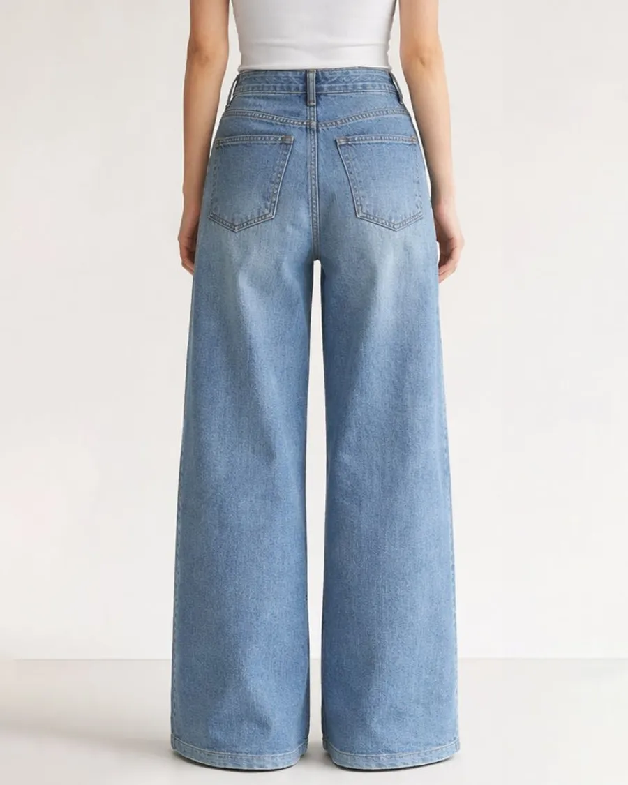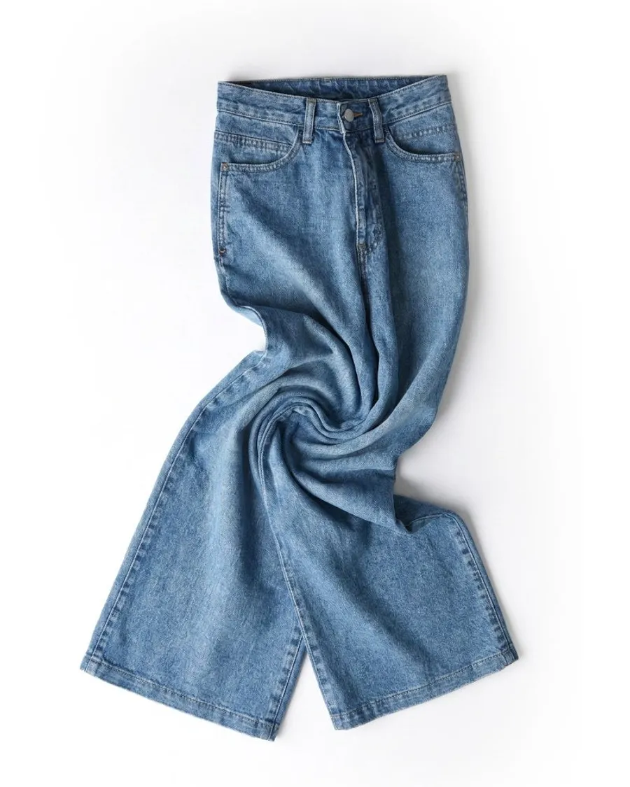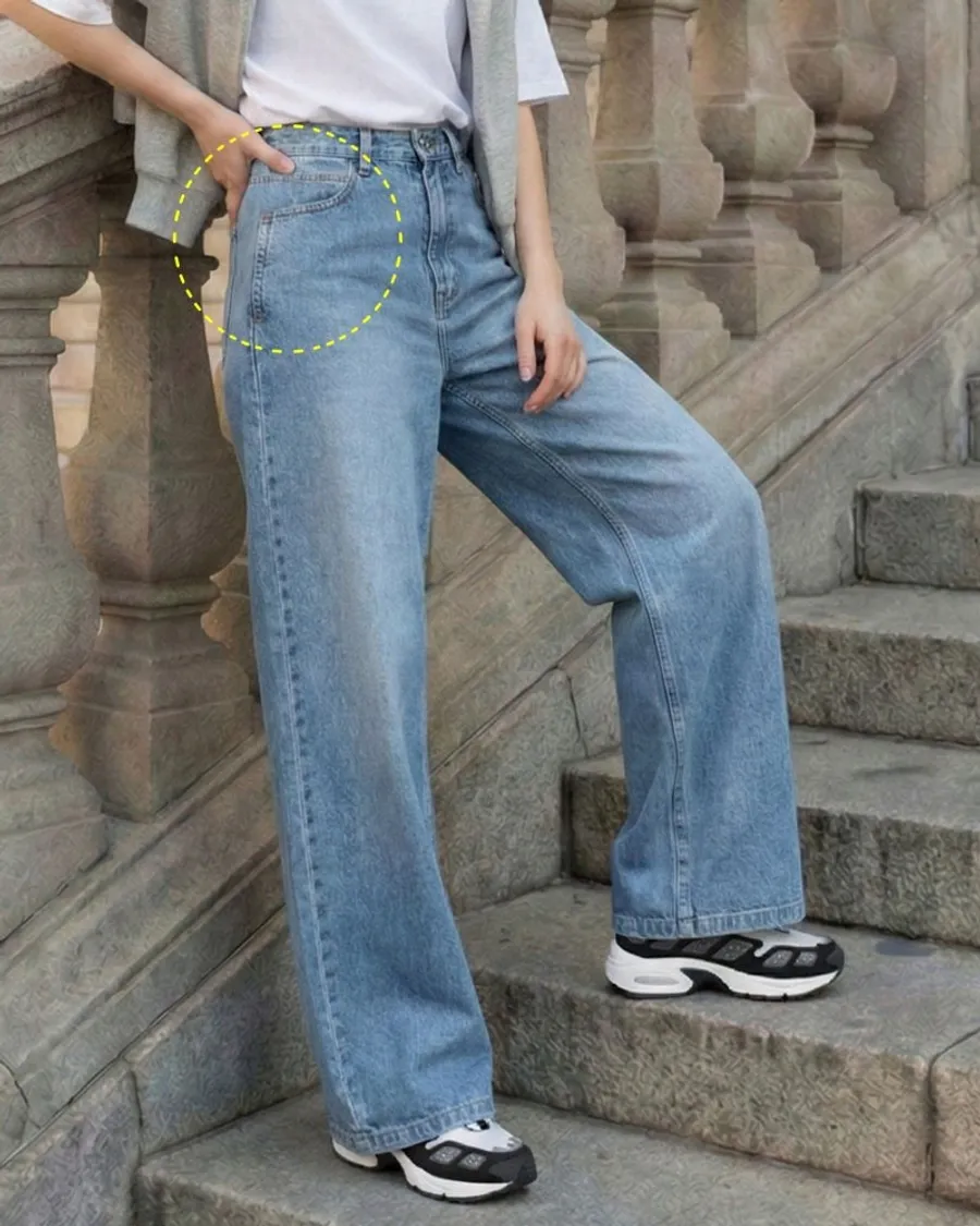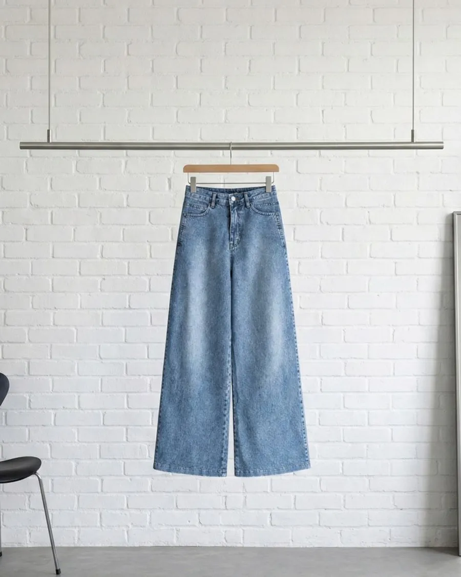高腰闊腿牛仔褲,修飾身形