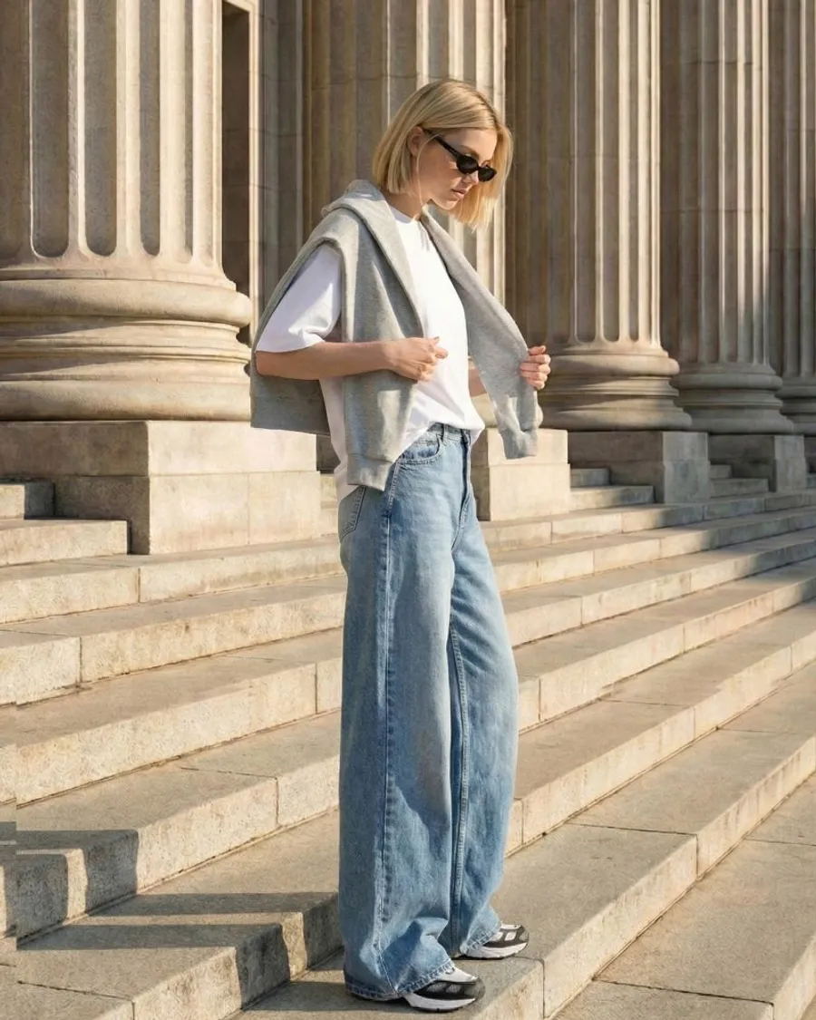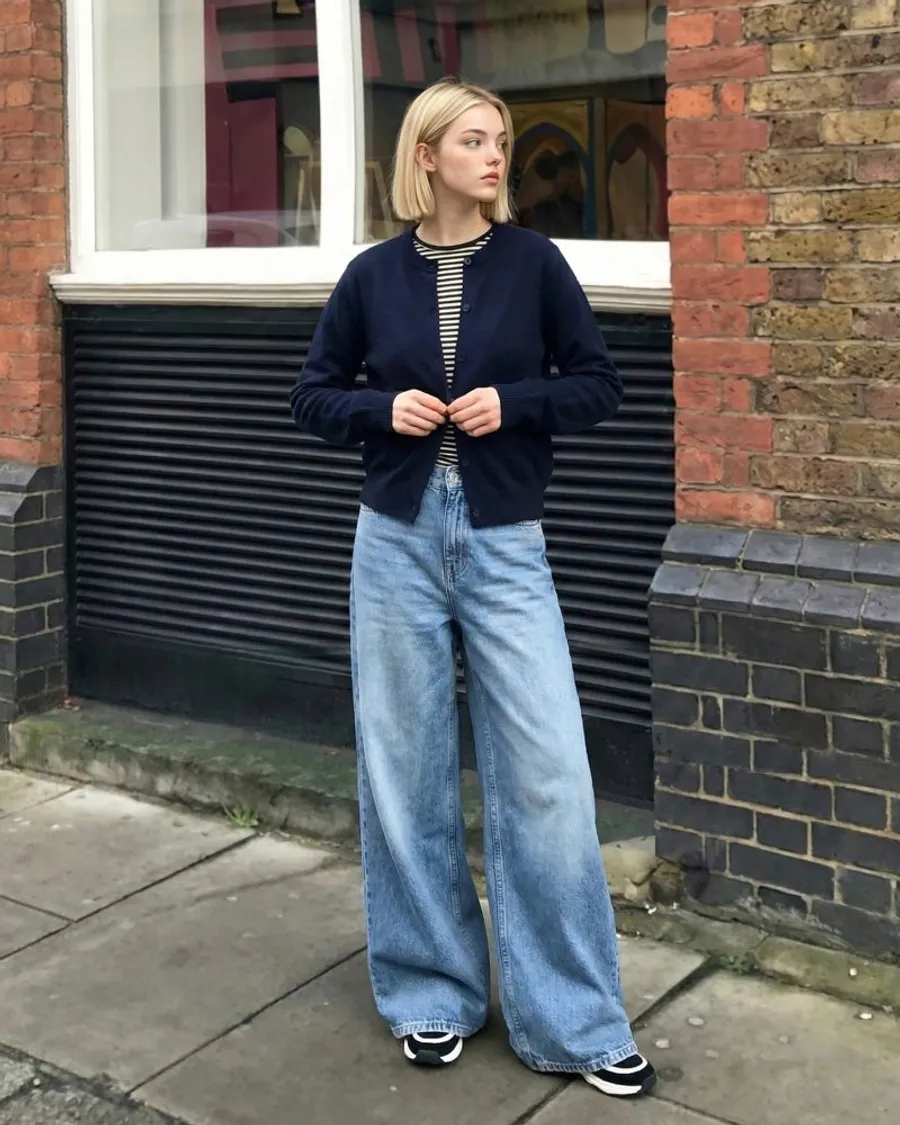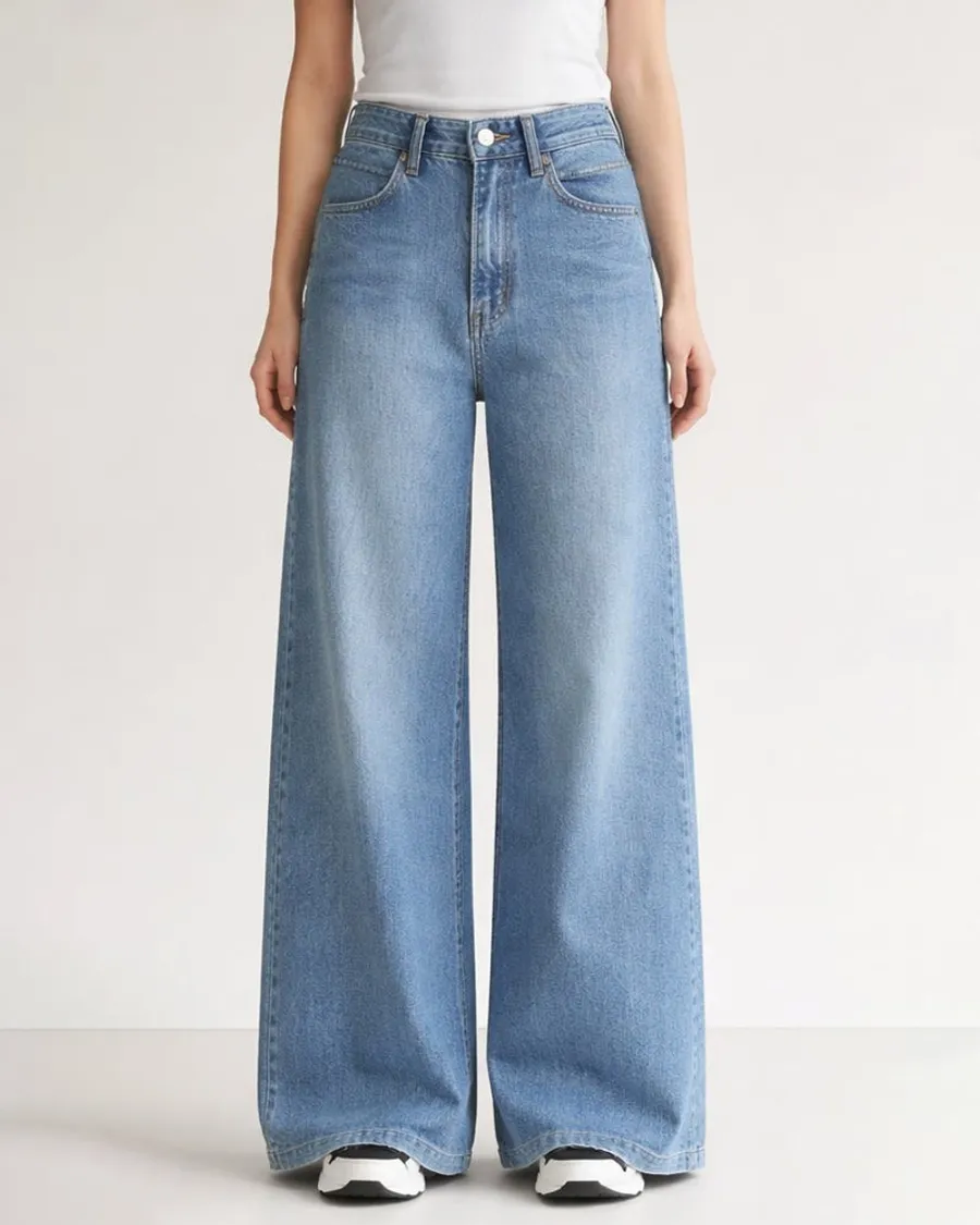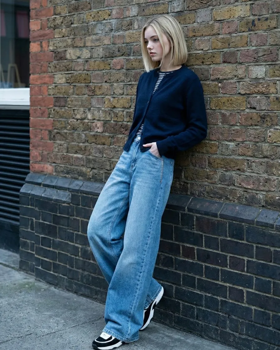 高腰闊腿牛仔褲,修飾身形