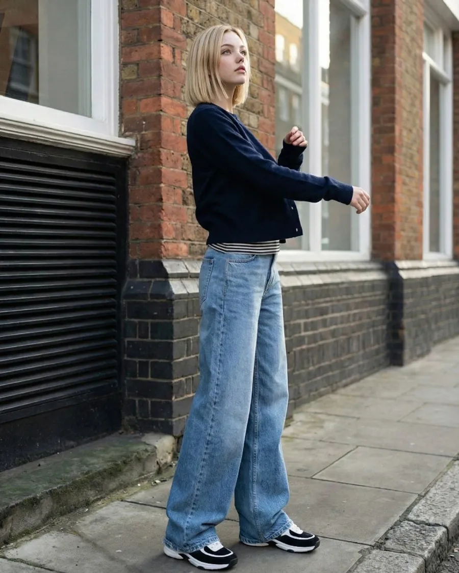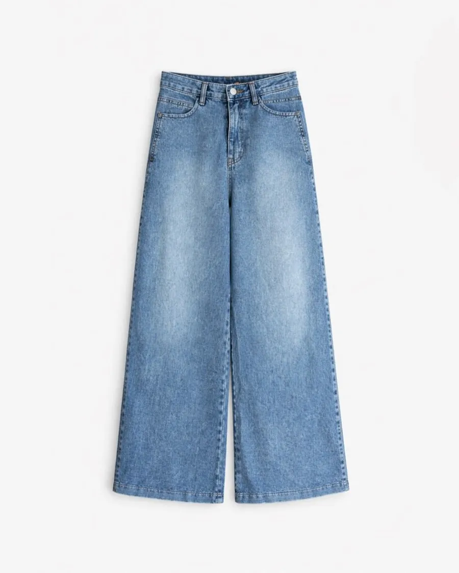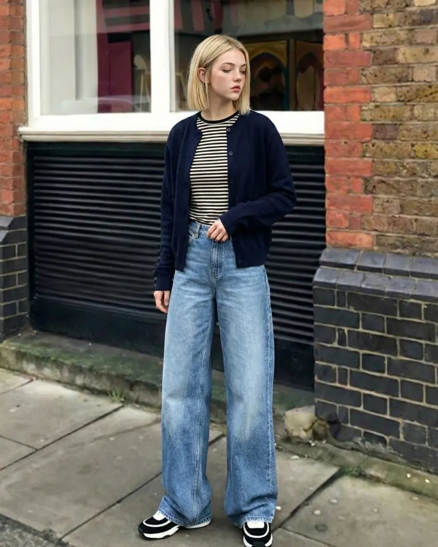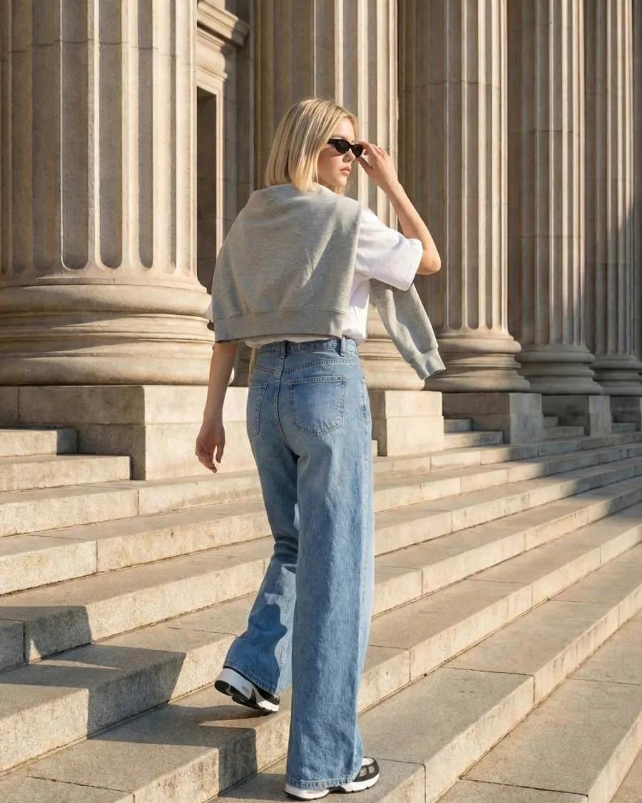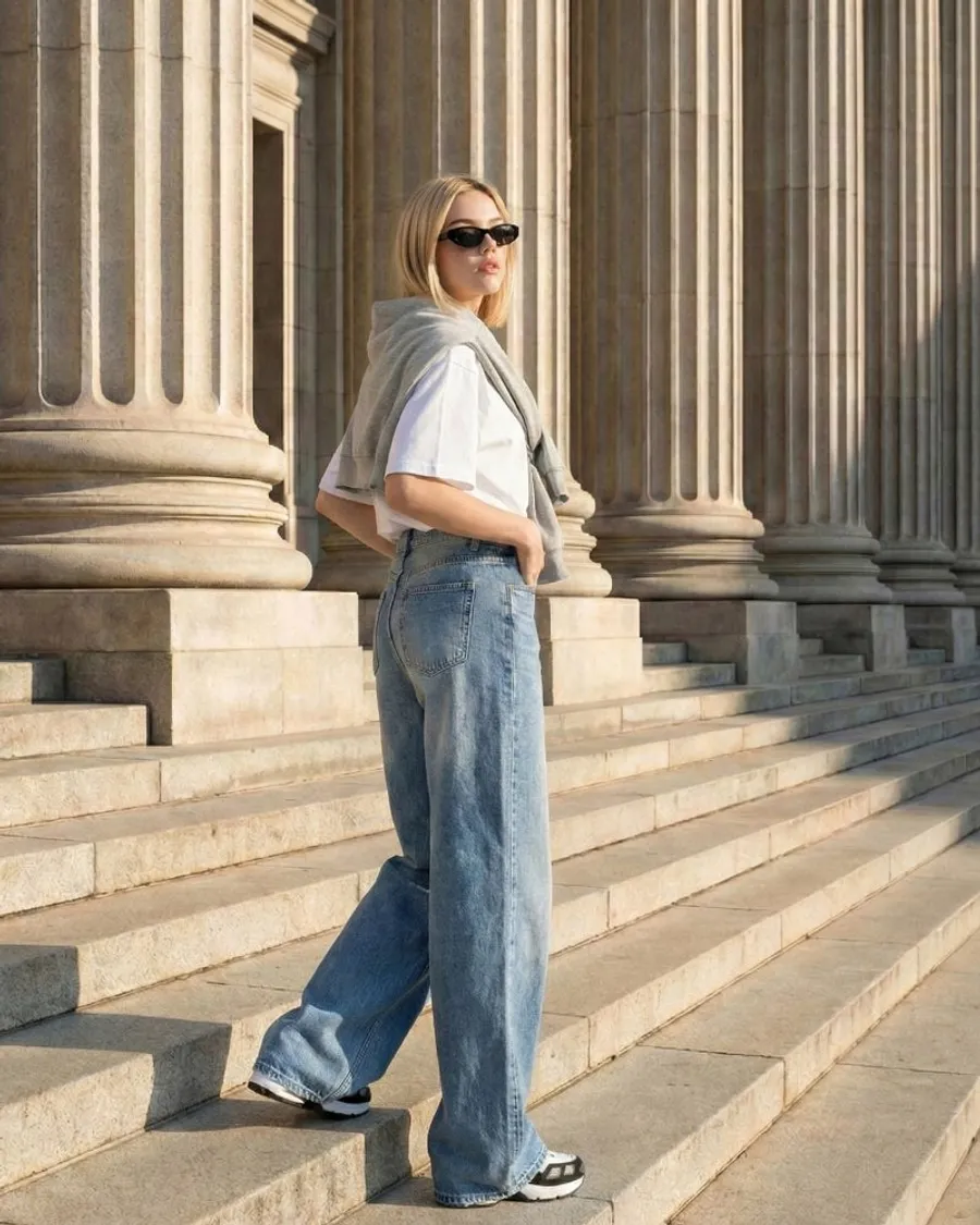 高腰闊腿牛仔褲,修飾身形