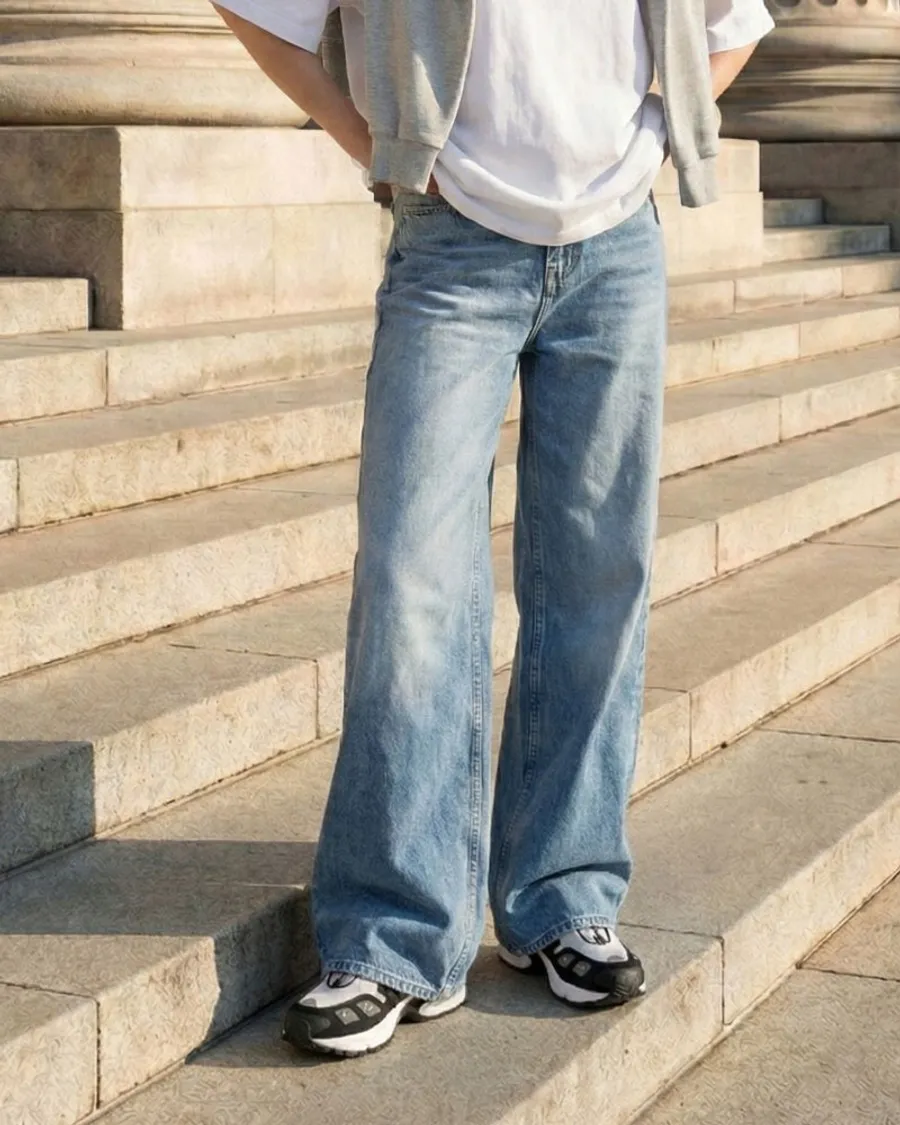 • 結實耐用的布料:採用高密度牛仔紗線,保持寬鬆版型特有的簡潔筆直線條,不易變形。