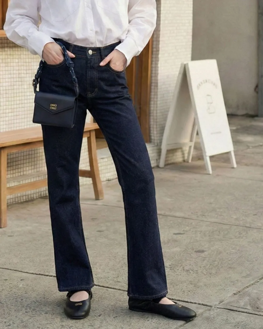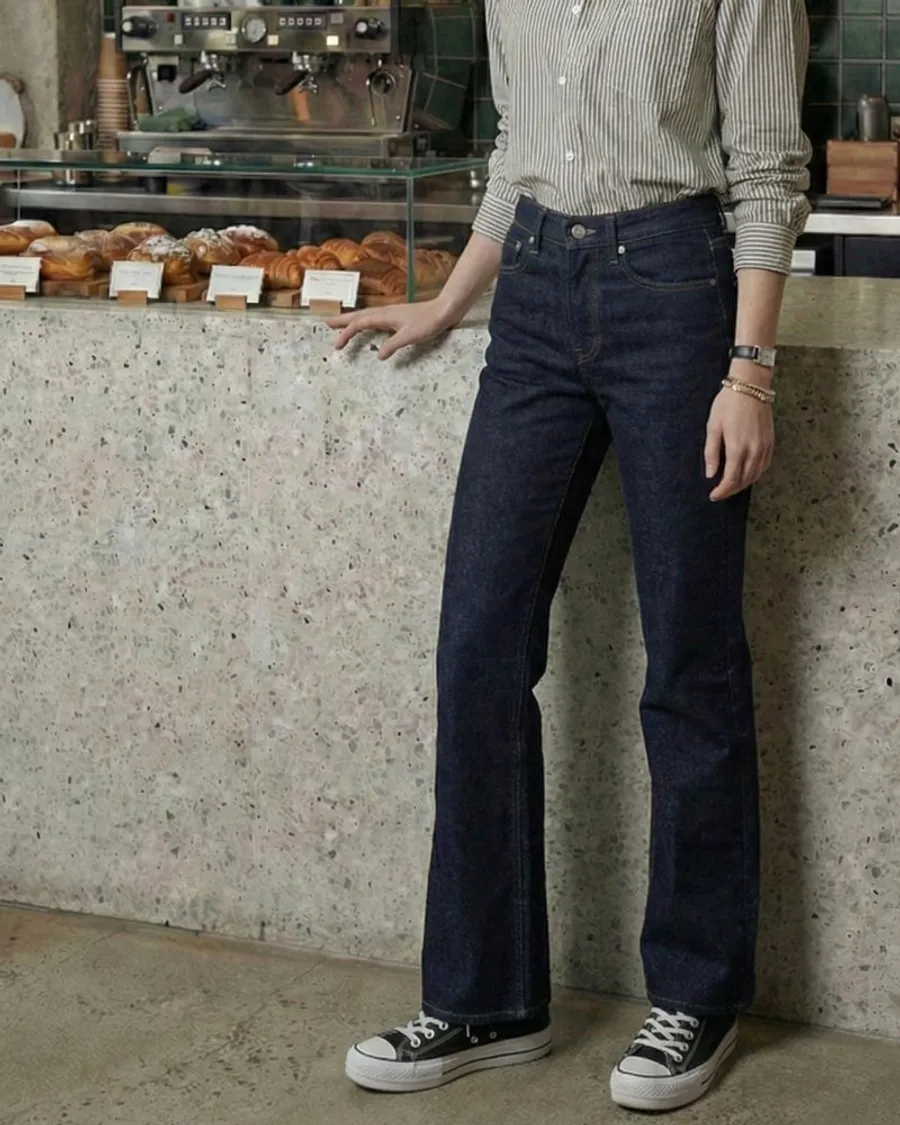 • 半喇叭褲:膝蓋處修身,褲腳略為外擴,打造舒適、修飾身形的輪廓。