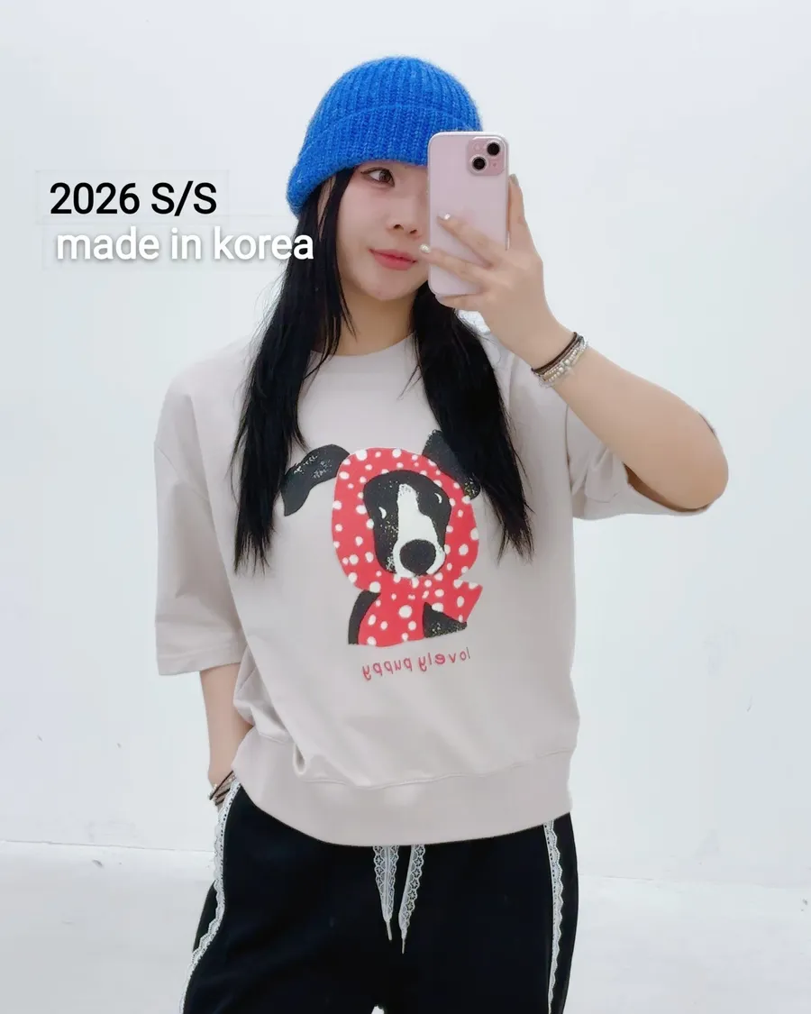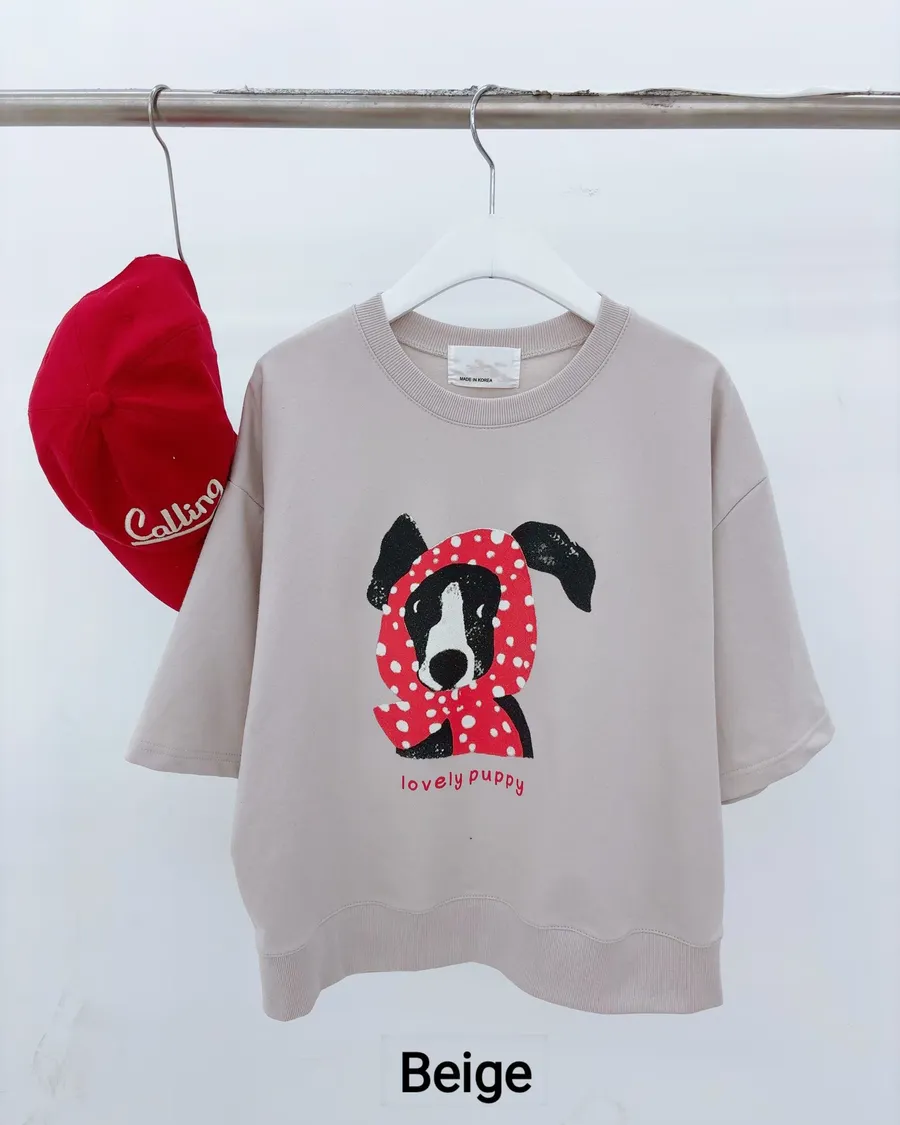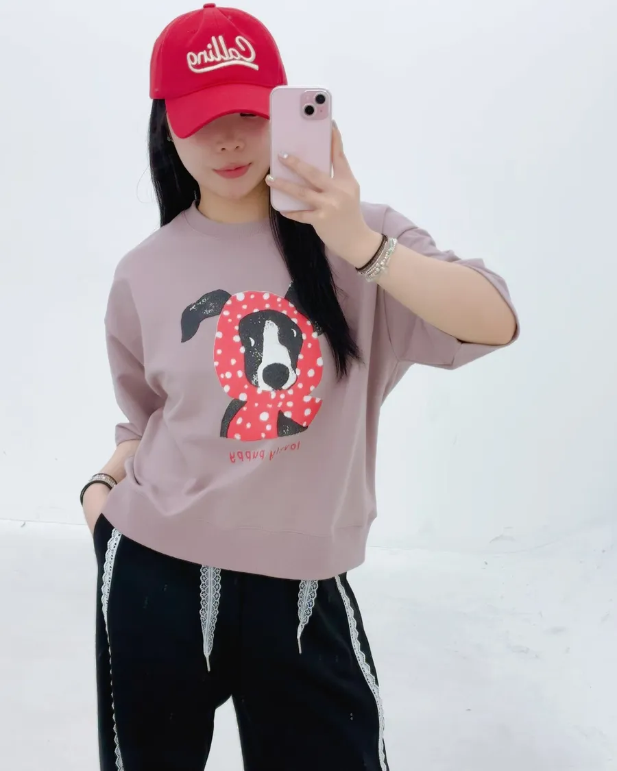 正韓 春款狗狗包頭巾五分袖上衣