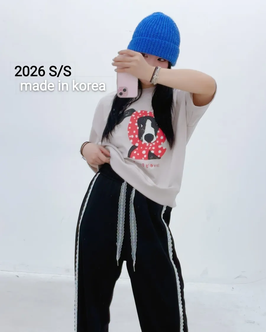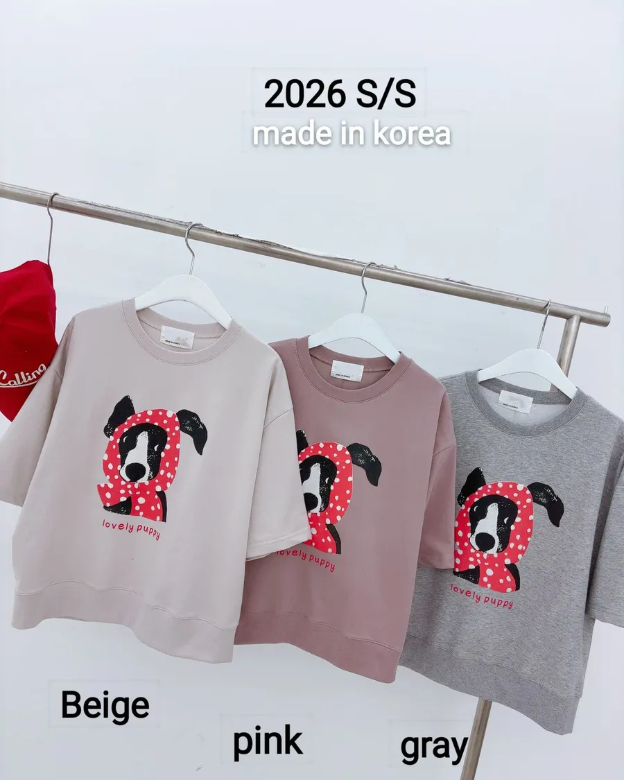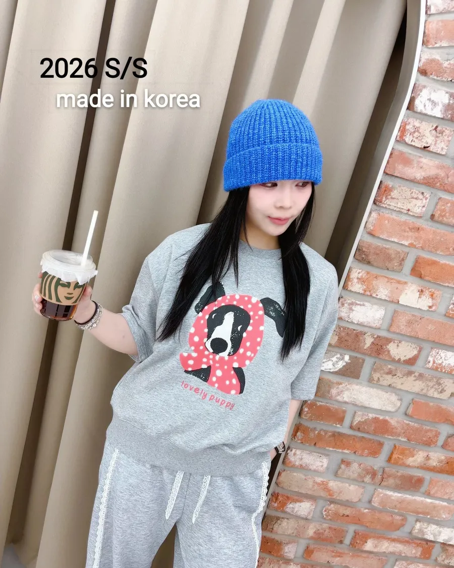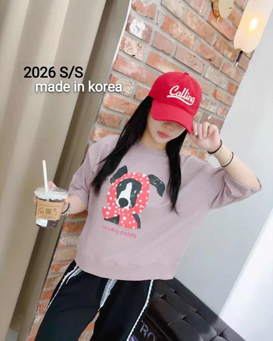 正韓 春款狗狗包頭巾五分袖上衣