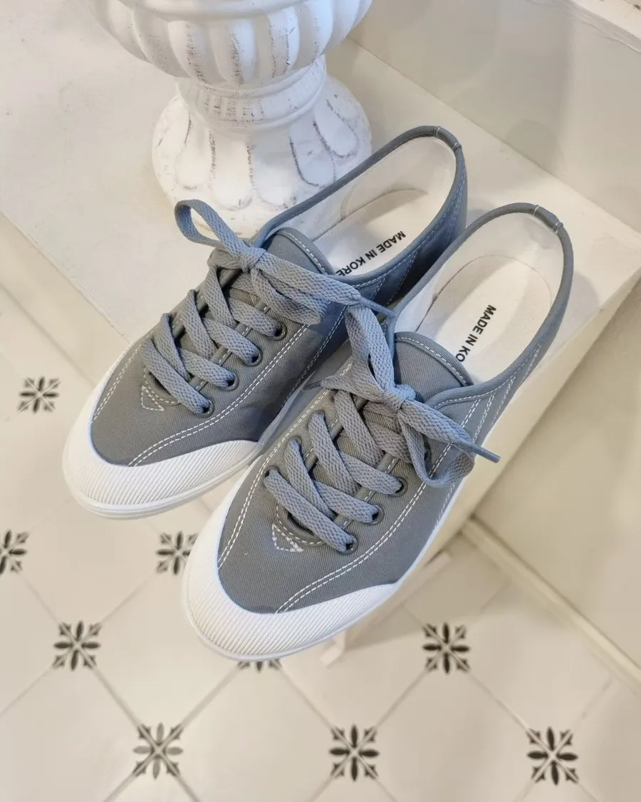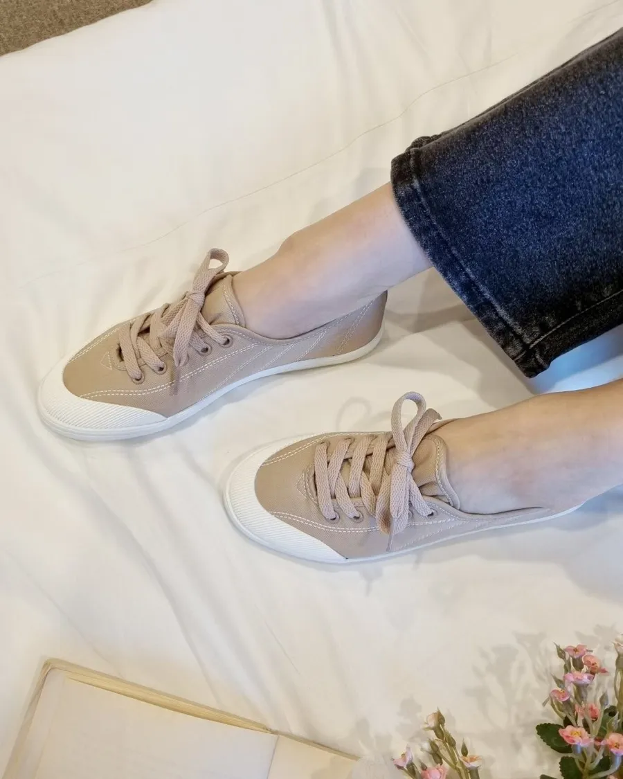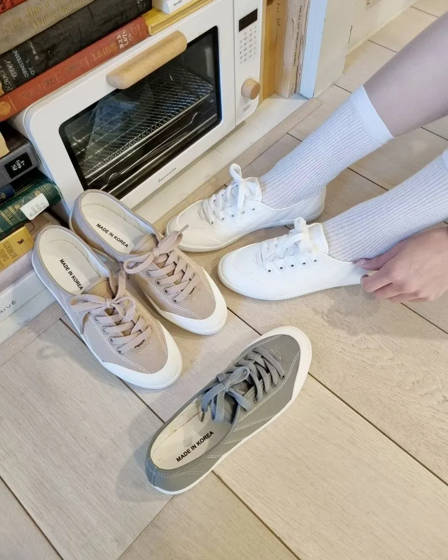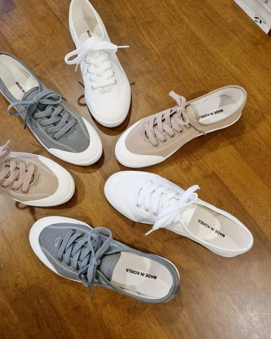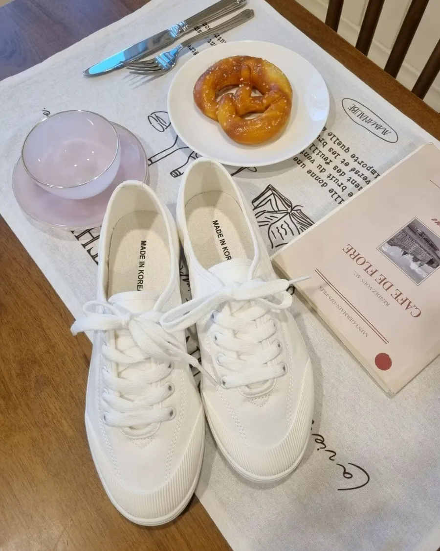 韓製 柔軟好穿綁帶低跟布面休閒鞋-跟高2cm