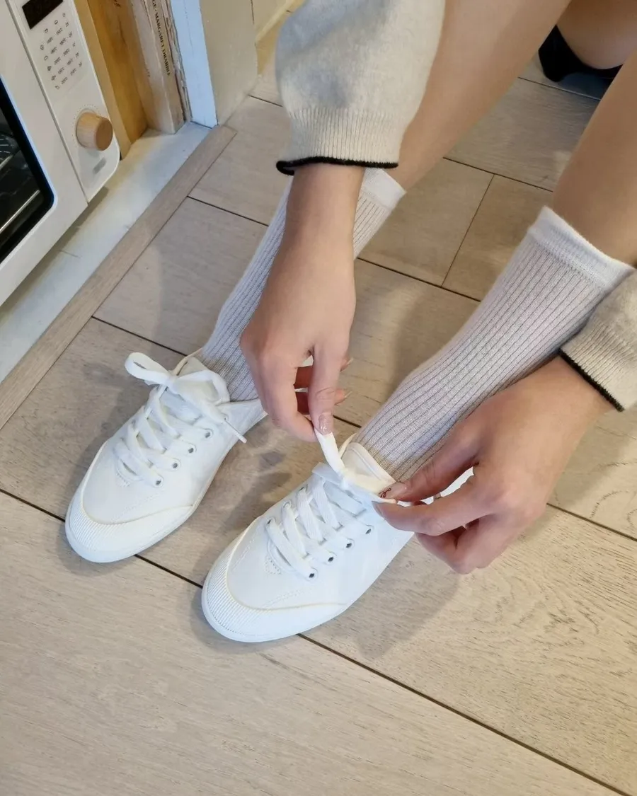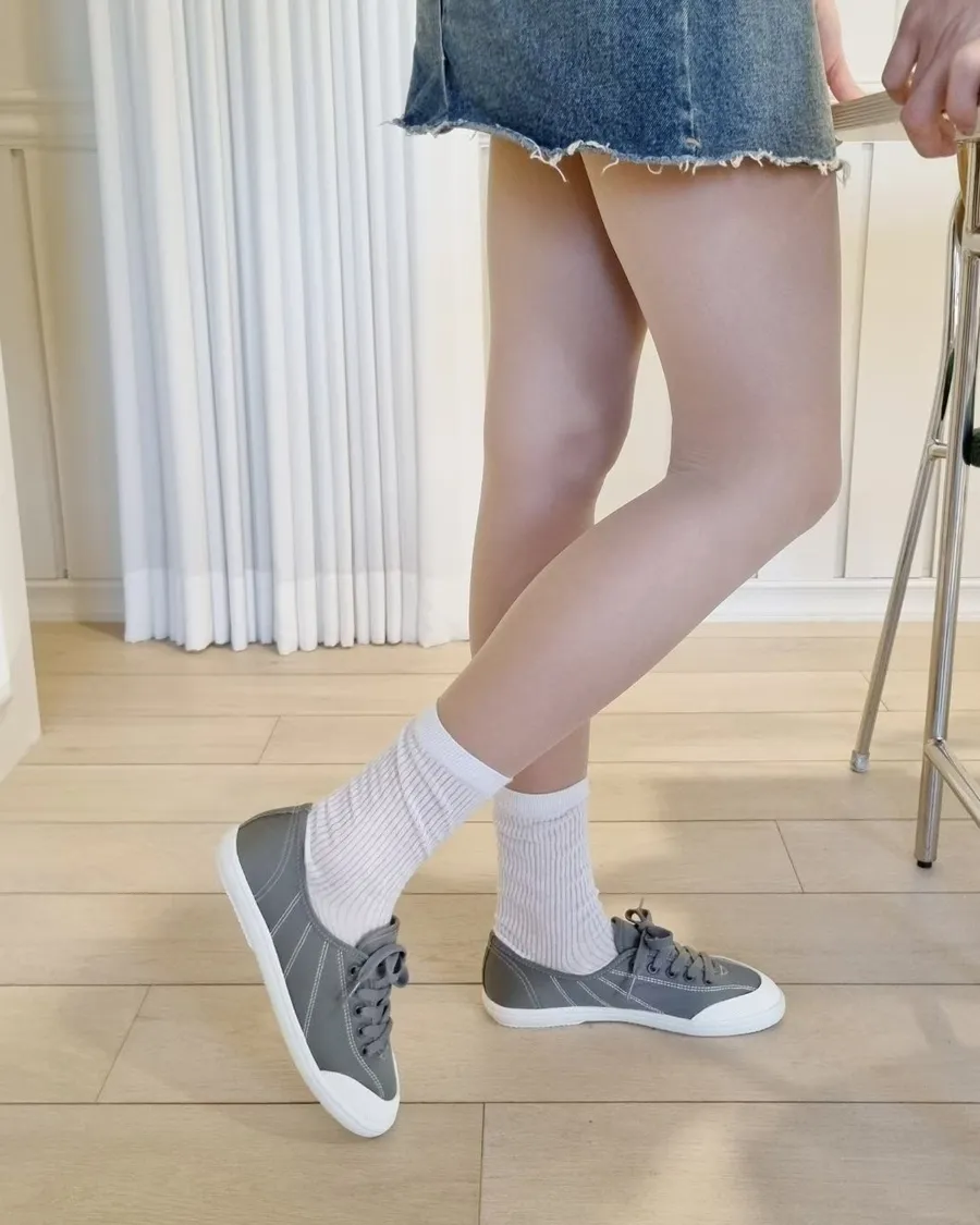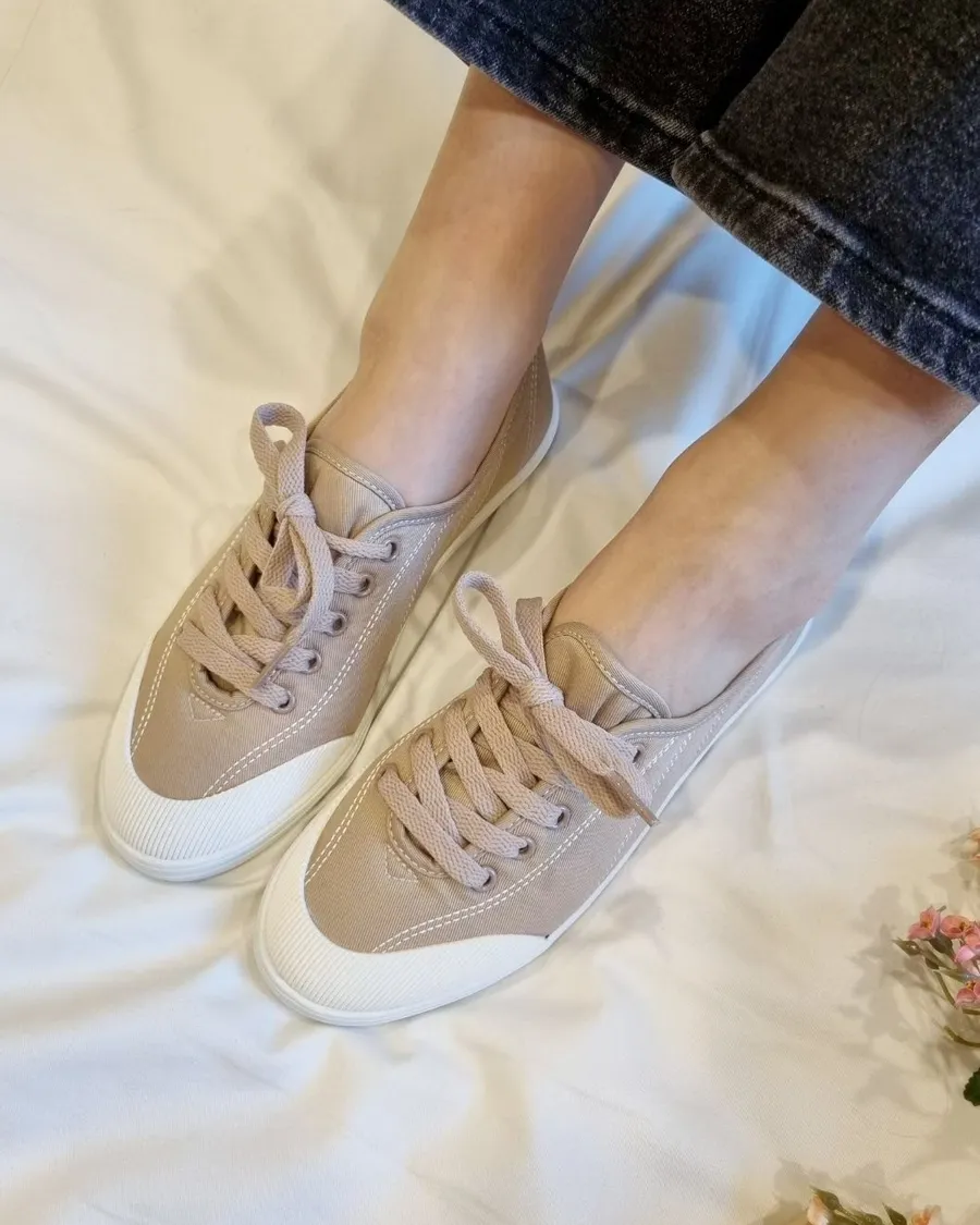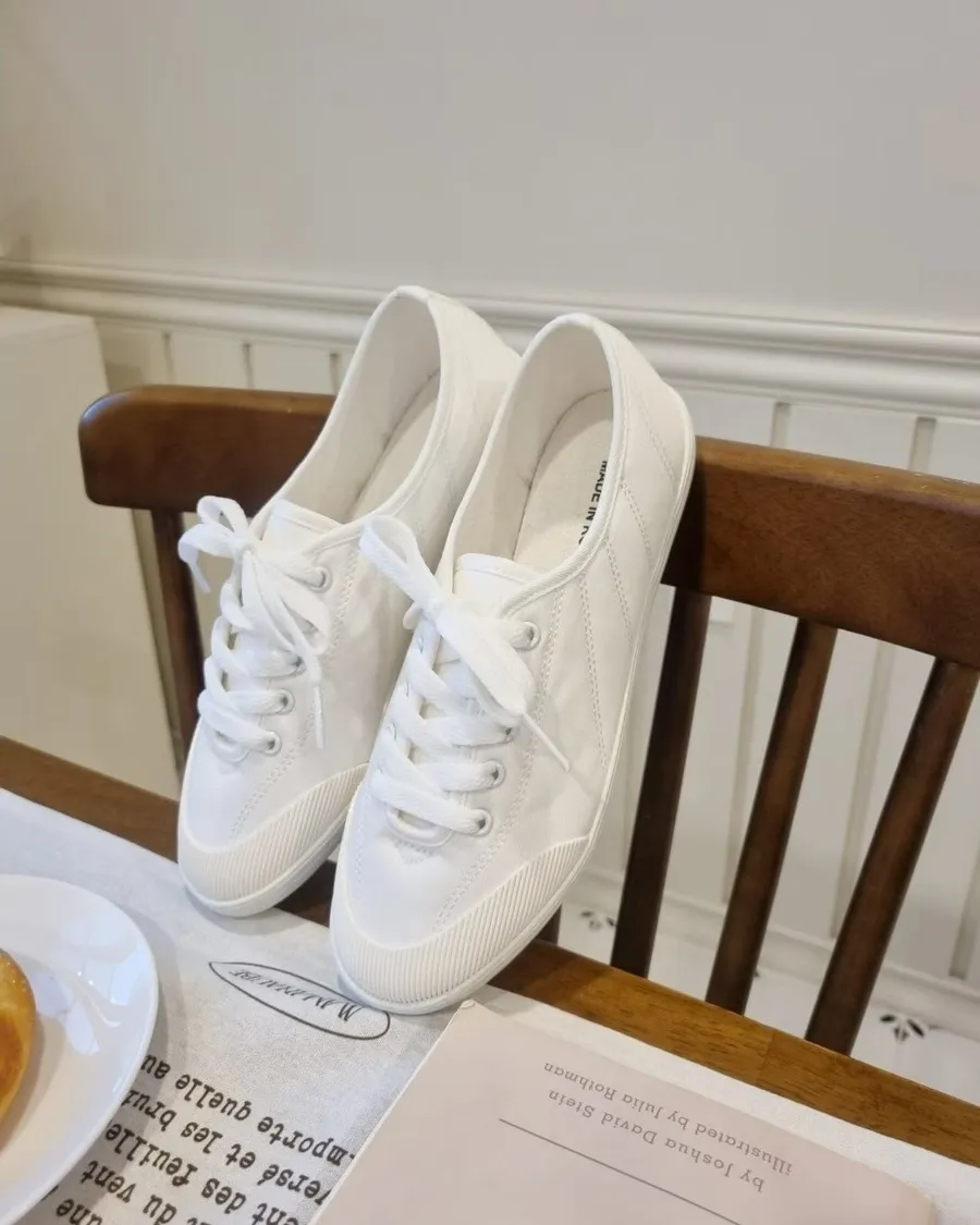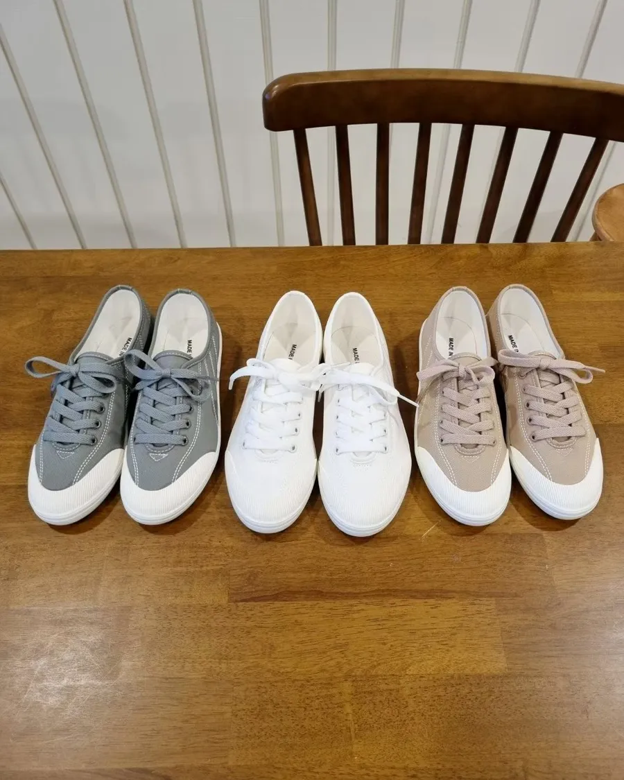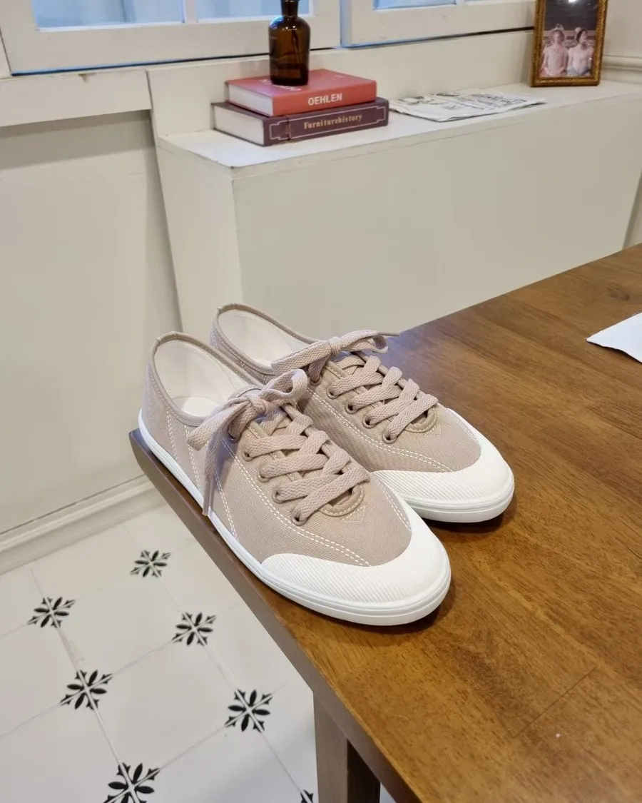 韓製 柔軟好穿綁帶低跟布面休閒鞋-跟高2cm