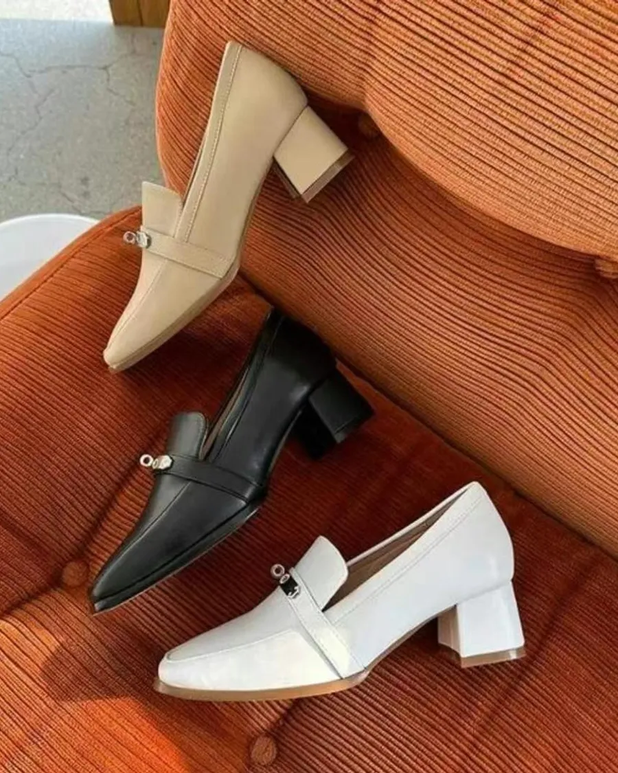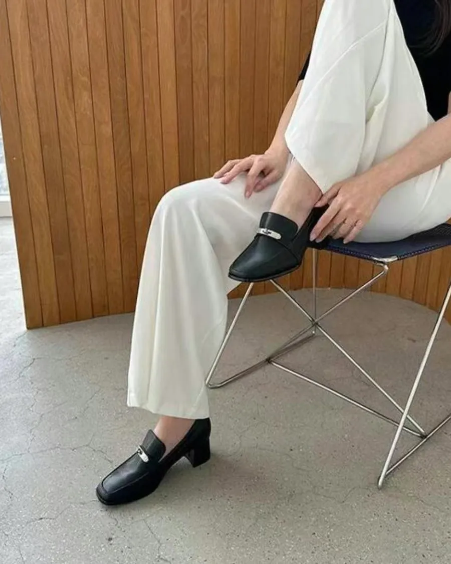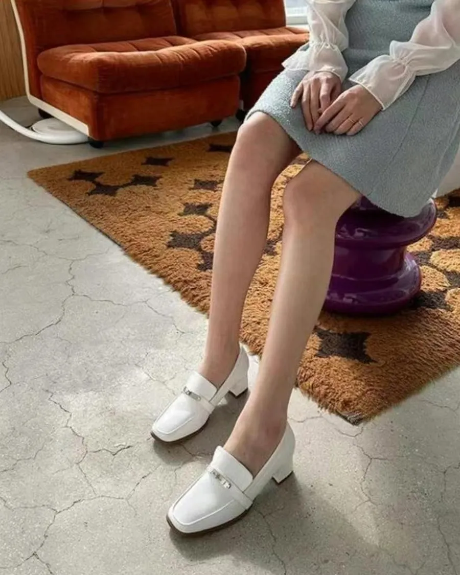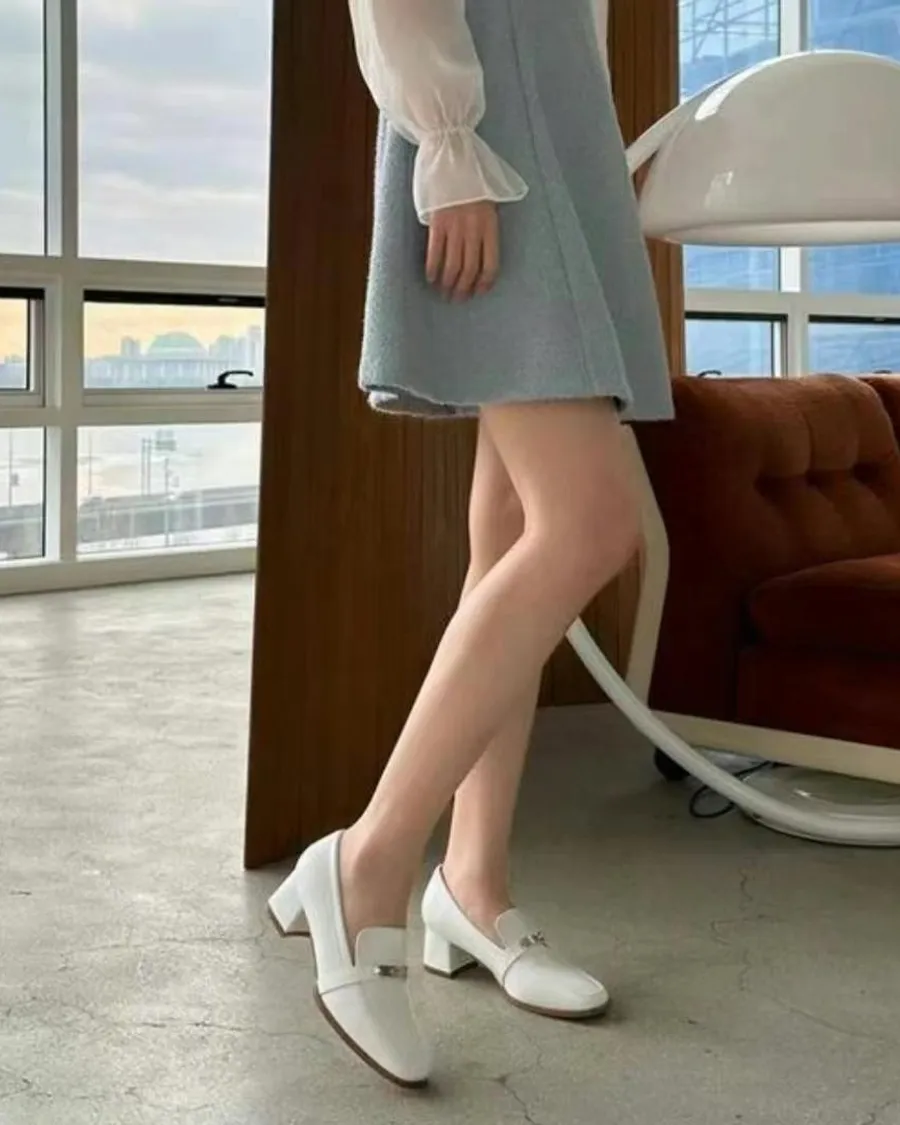 韓國 真皮中跟百搭好走通勤鞋-跟高5cm
