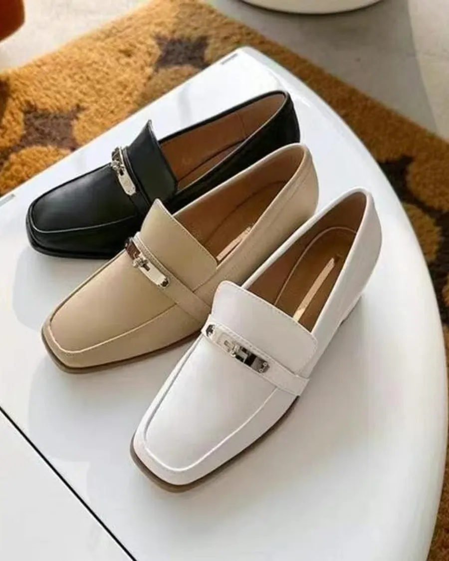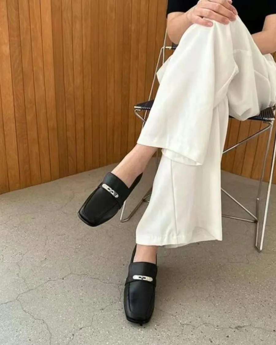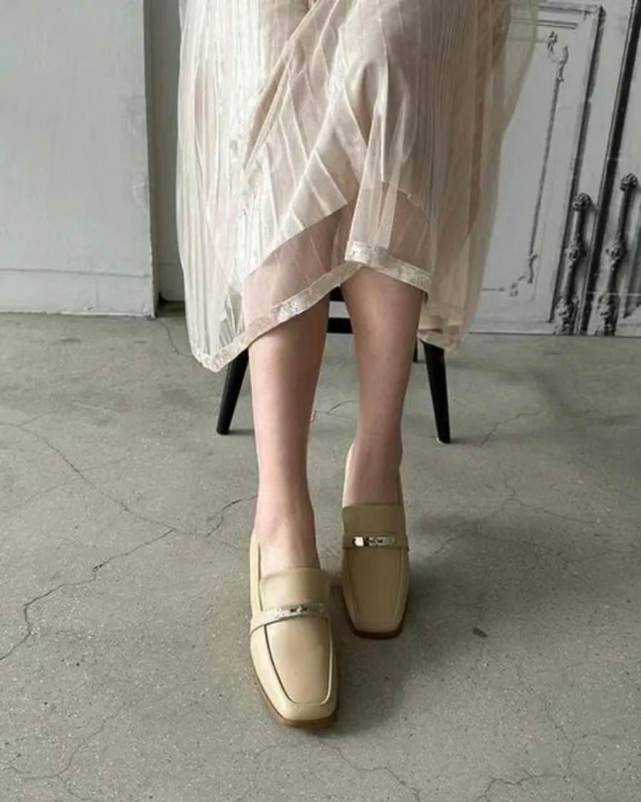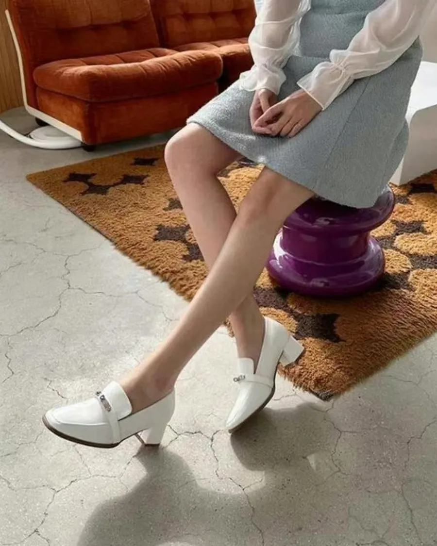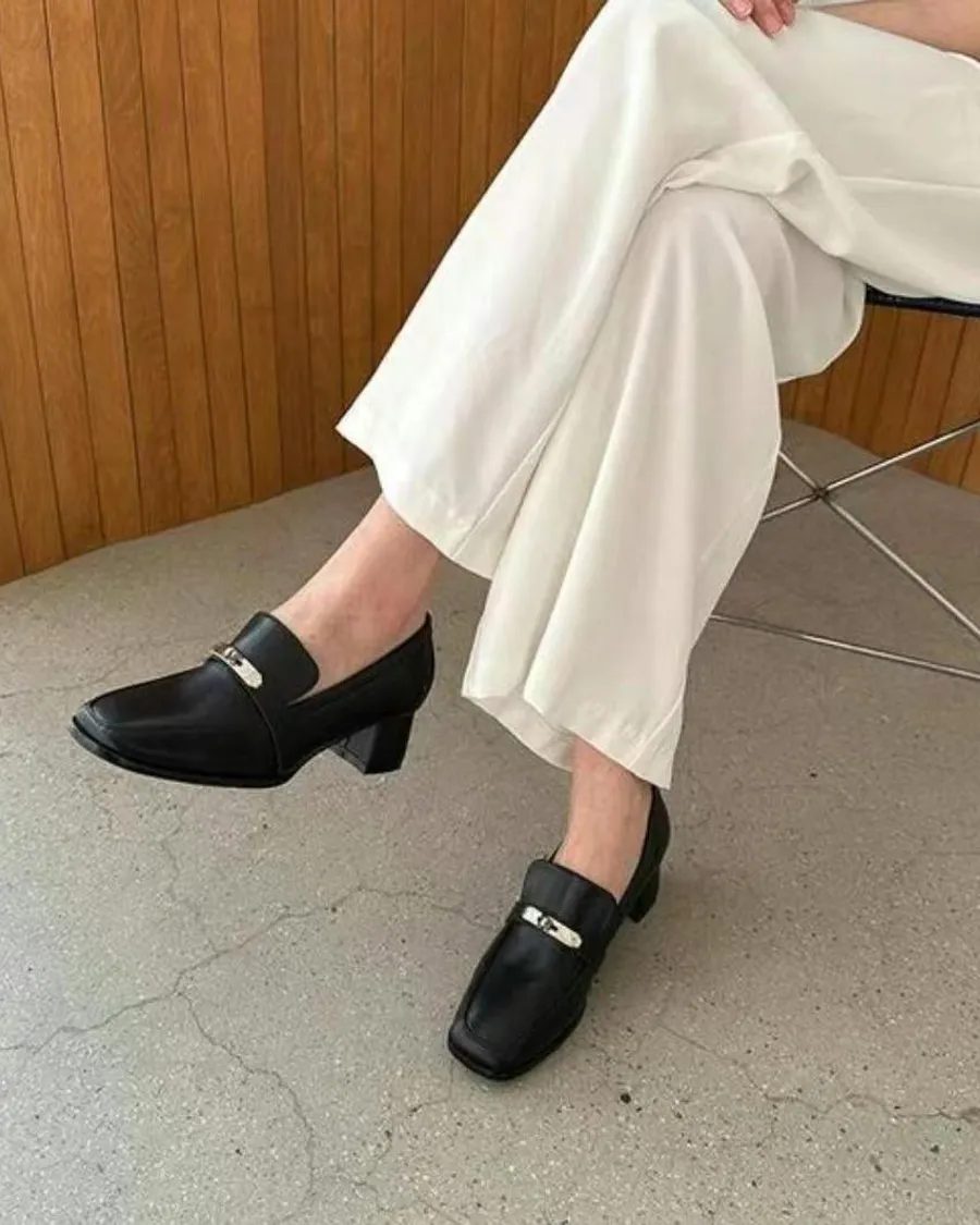 韓國 真皮中跟百搭好走通勤鞋-跟高5cm