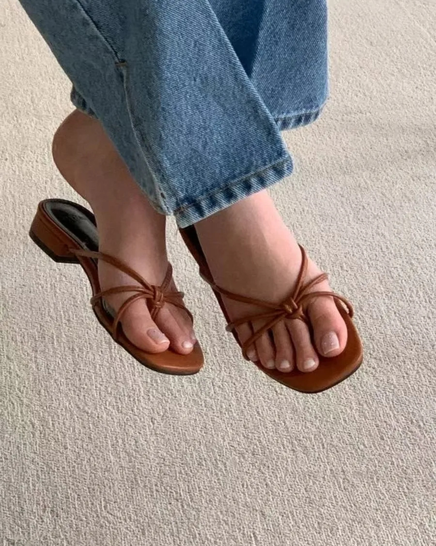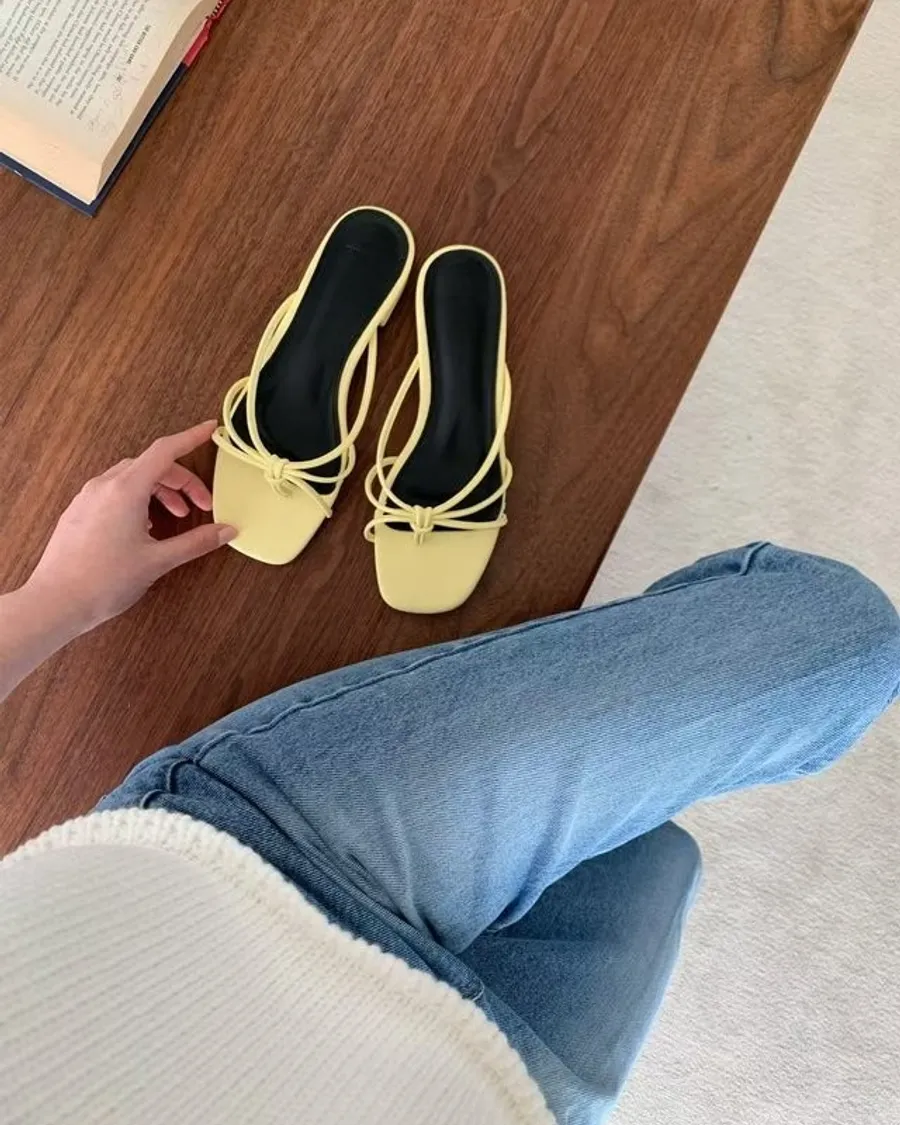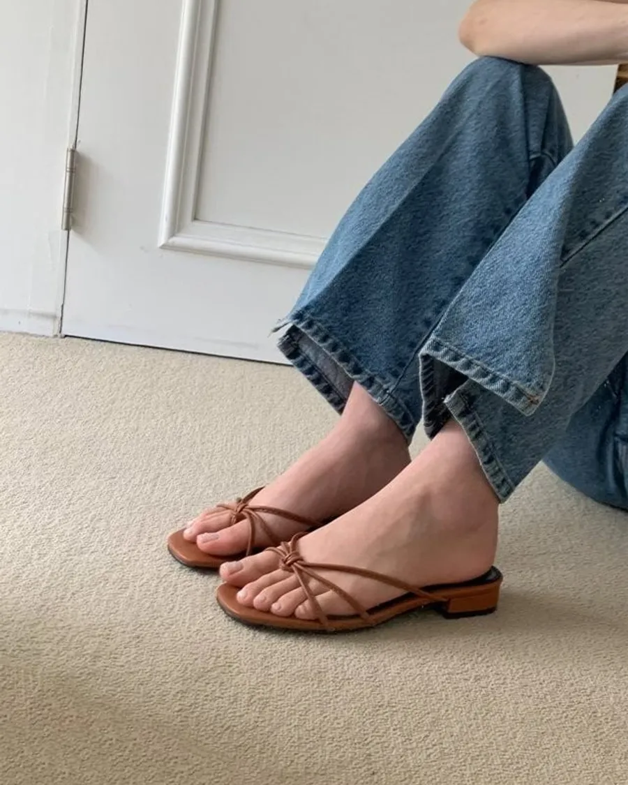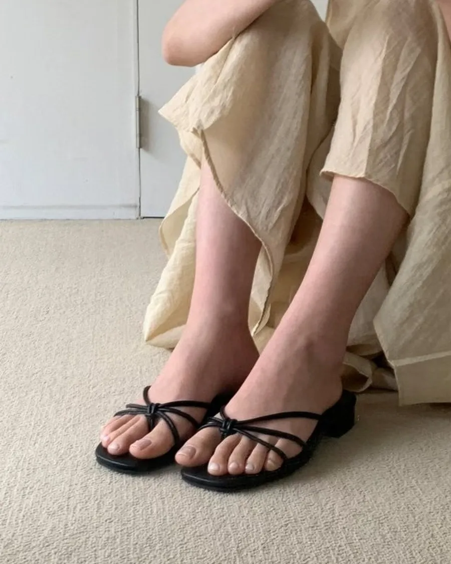 韓國 春夏新品細繩夾腳涼拖鞋-跟高2.5cm