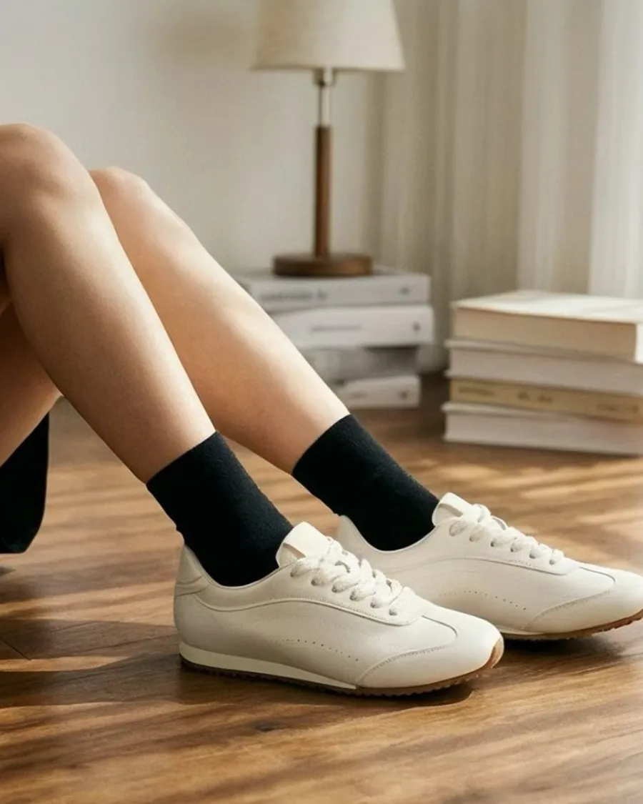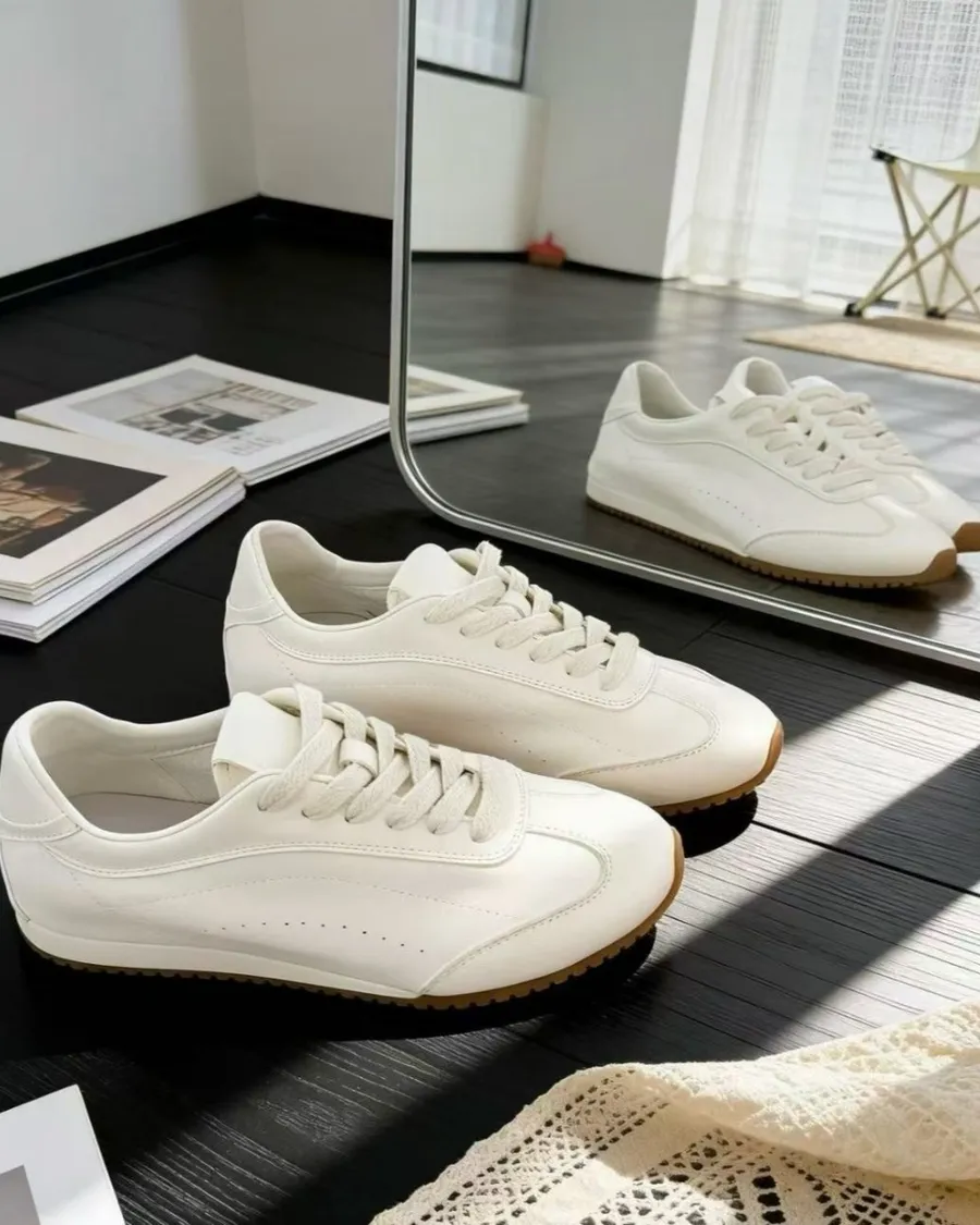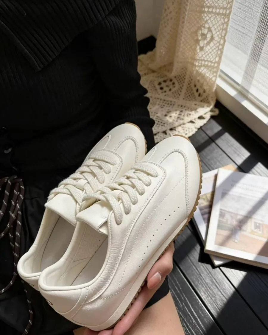 韓國 真皮軟Q低跟百搭小白鞋-跟高1.5cm