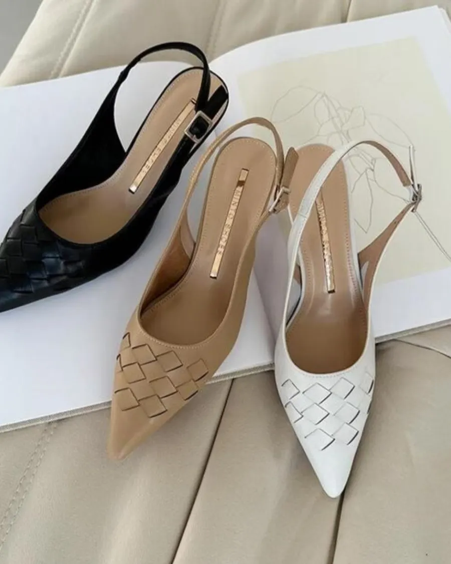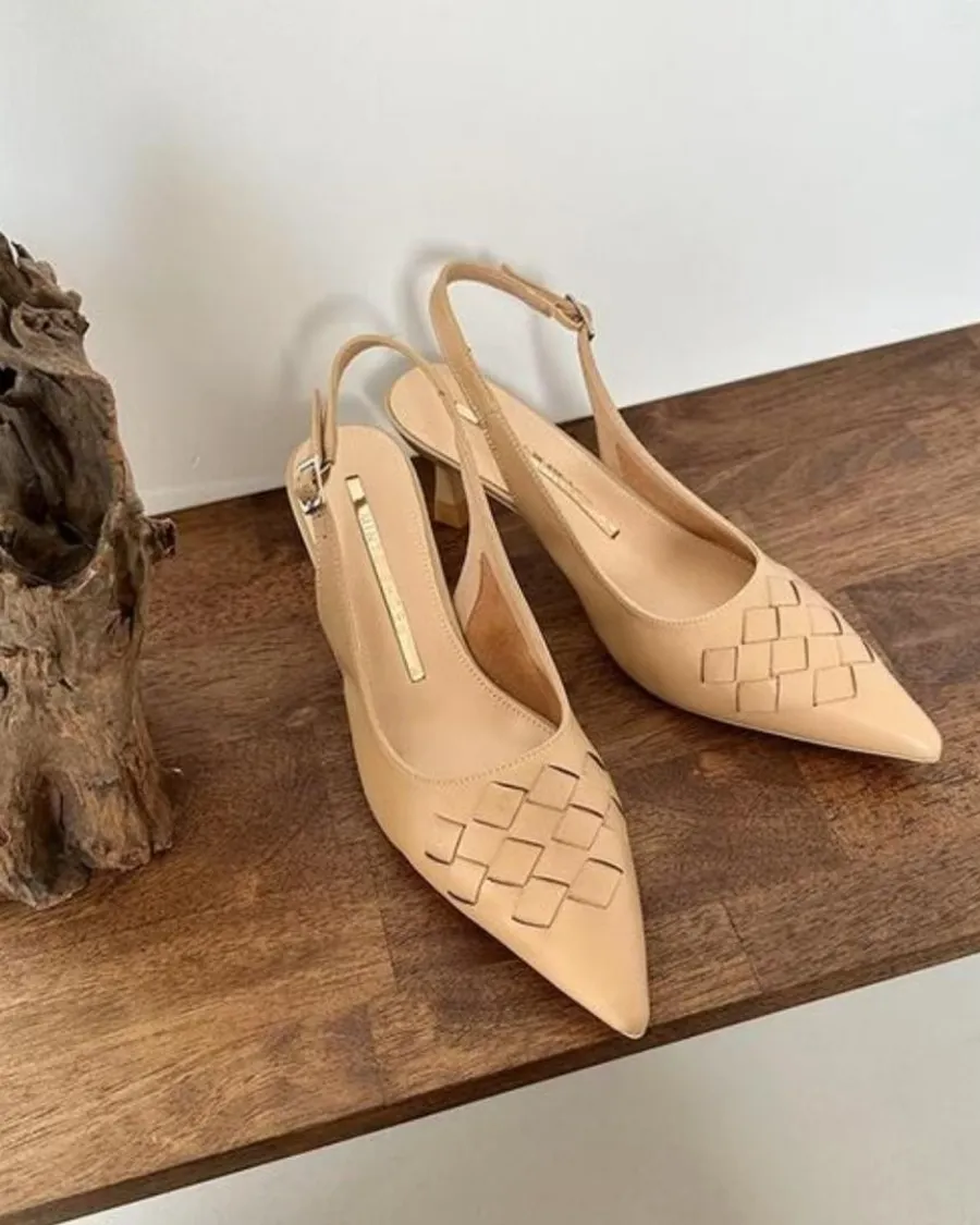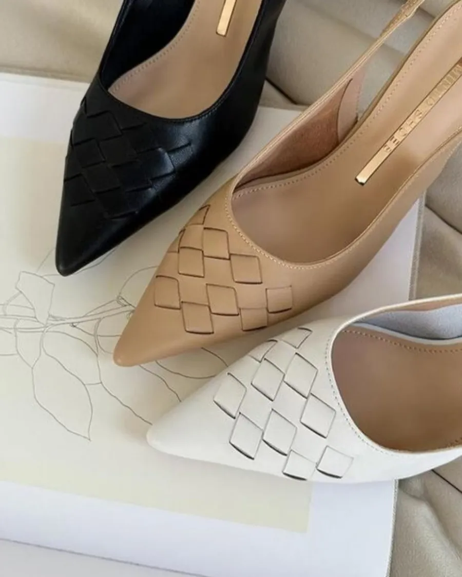 韓國 春款真皮編織淑女鞋-跟高6.5cm