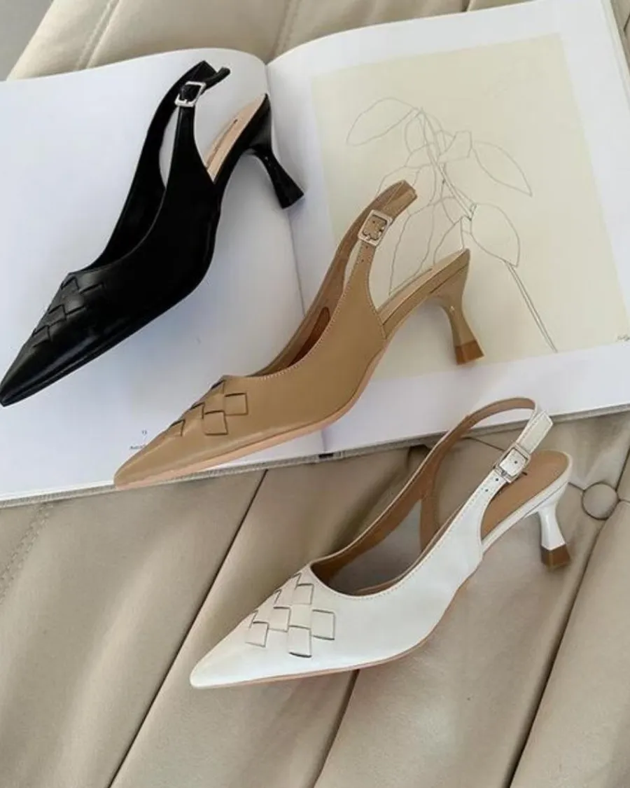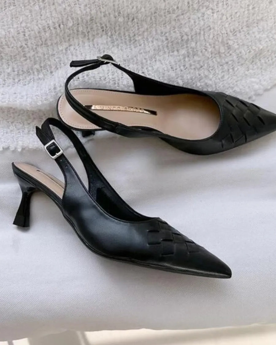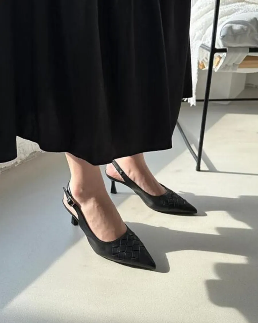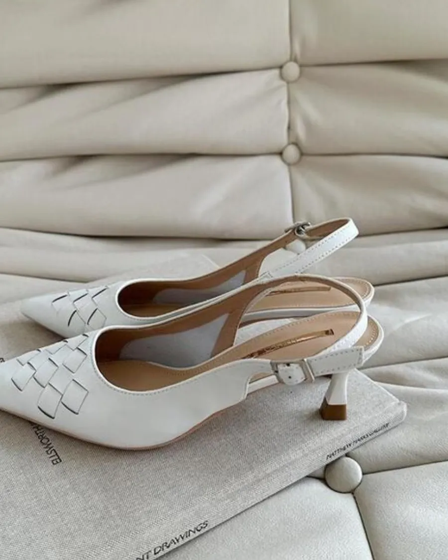 韓國 春款真皮編織淑女鞋-跟高6.5cm
