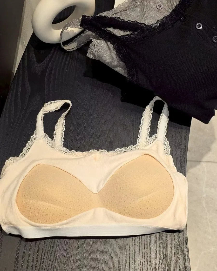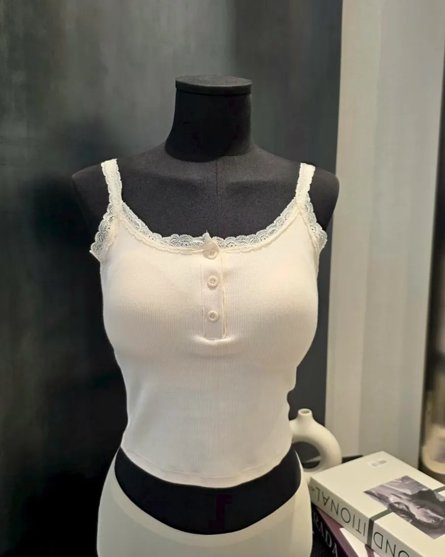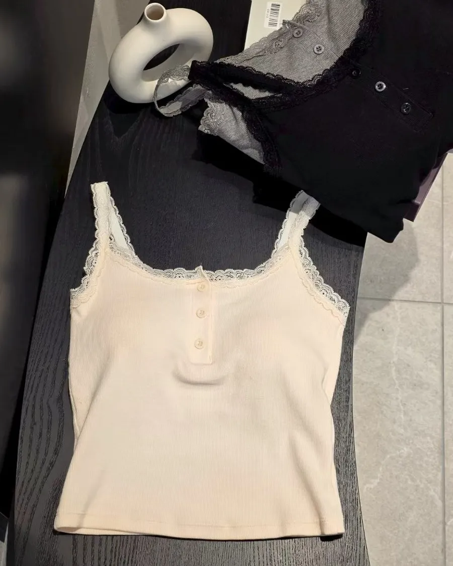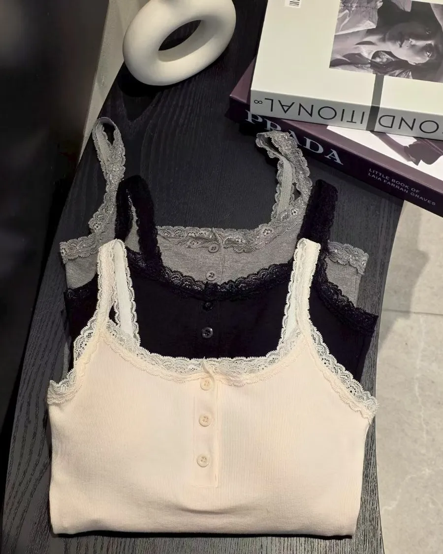 正韓 三釦蕾絲滾邊內搭小可愛背心