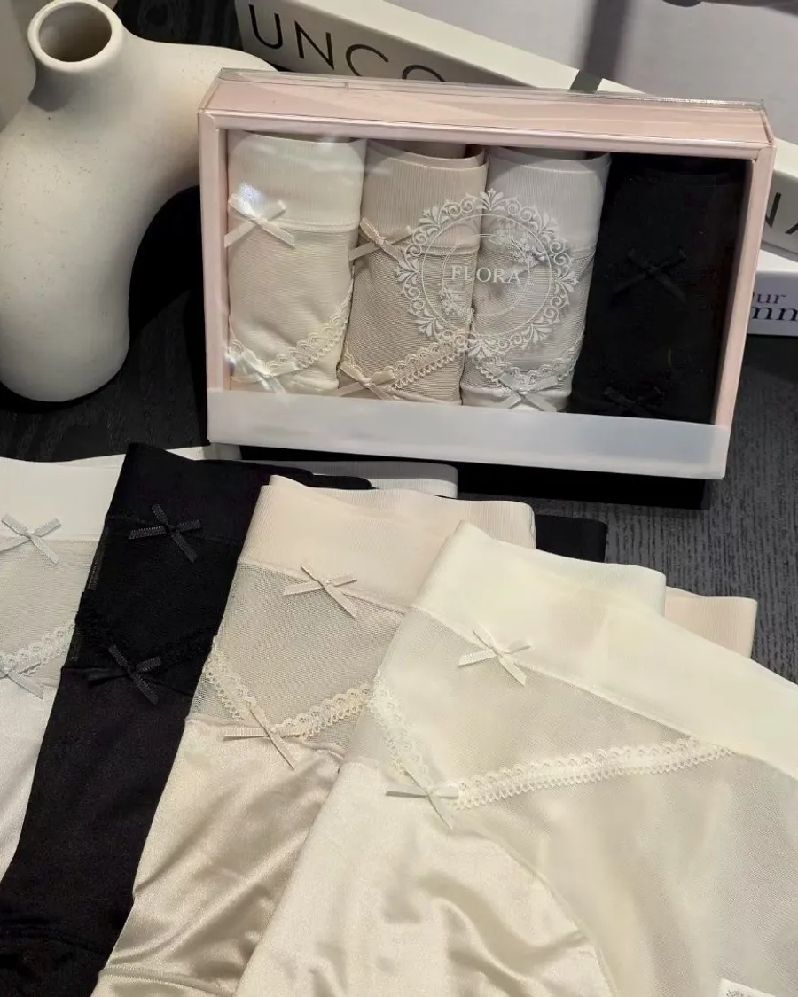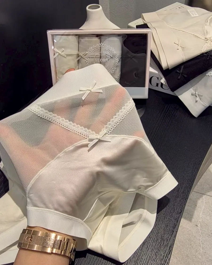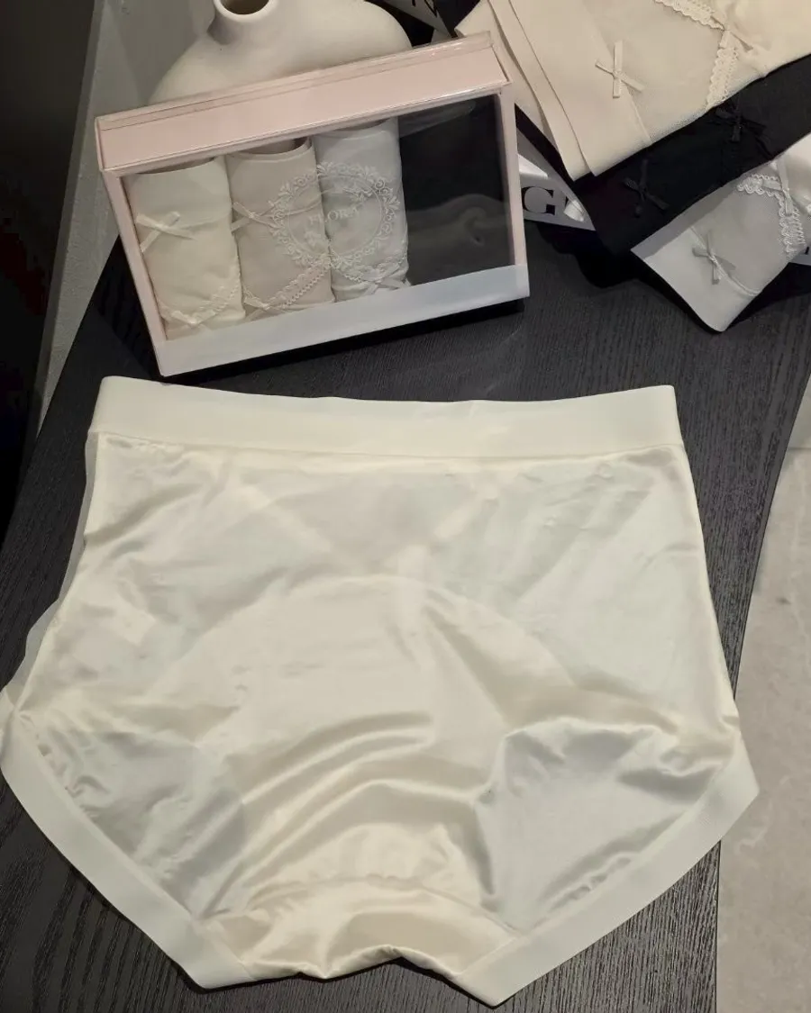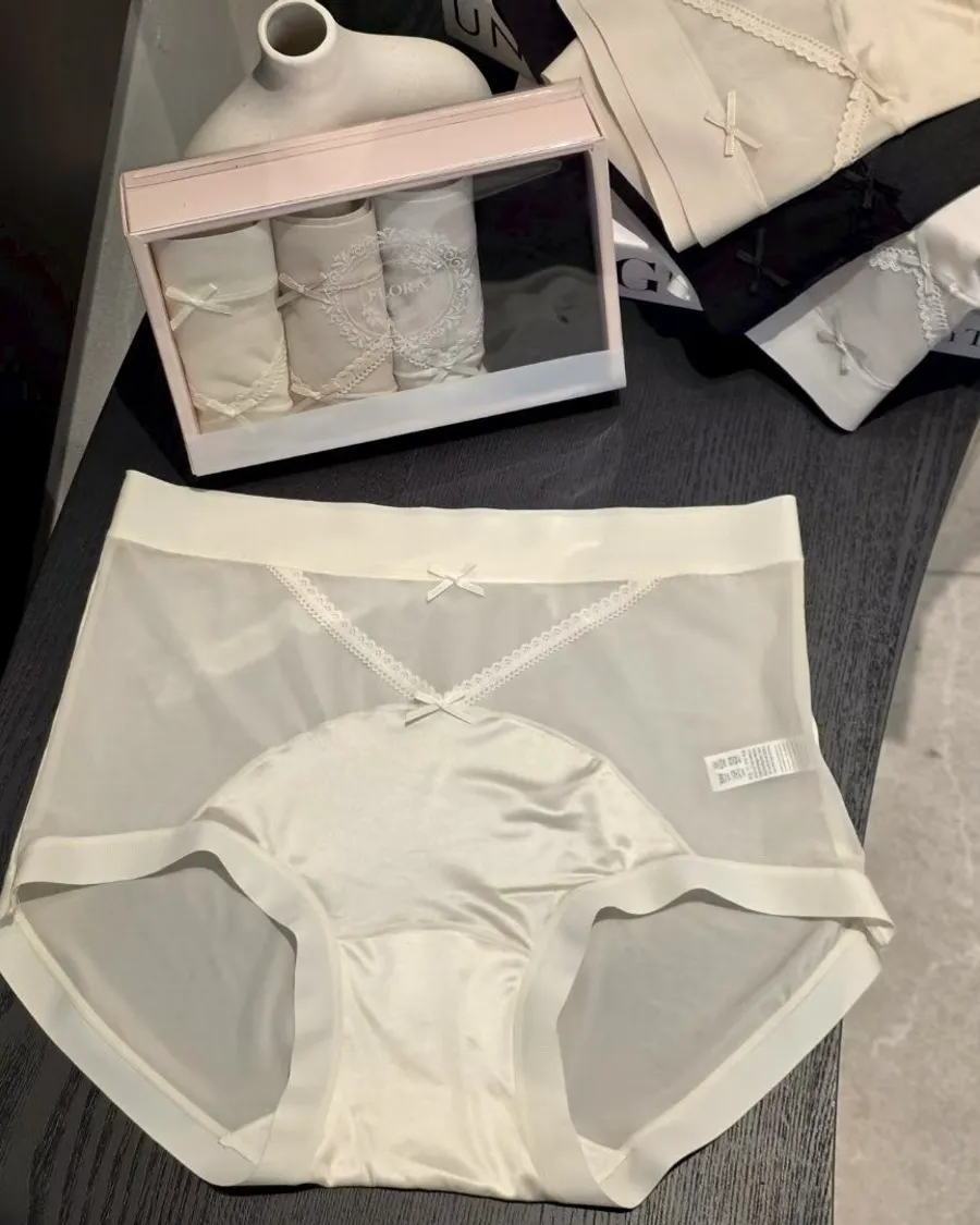 正韓 高腰摟空雙蝴蝶結絲光內褲組(三入)