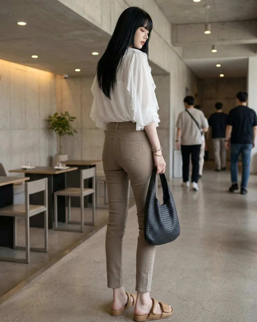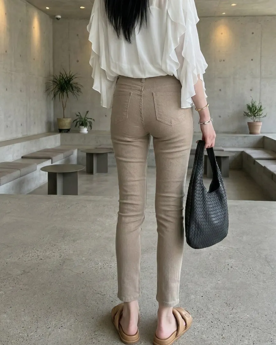 米色: 平靜且優雅的摩卡米色調。搭配襯衫或襯衫,營造優雅柔和的氛圍