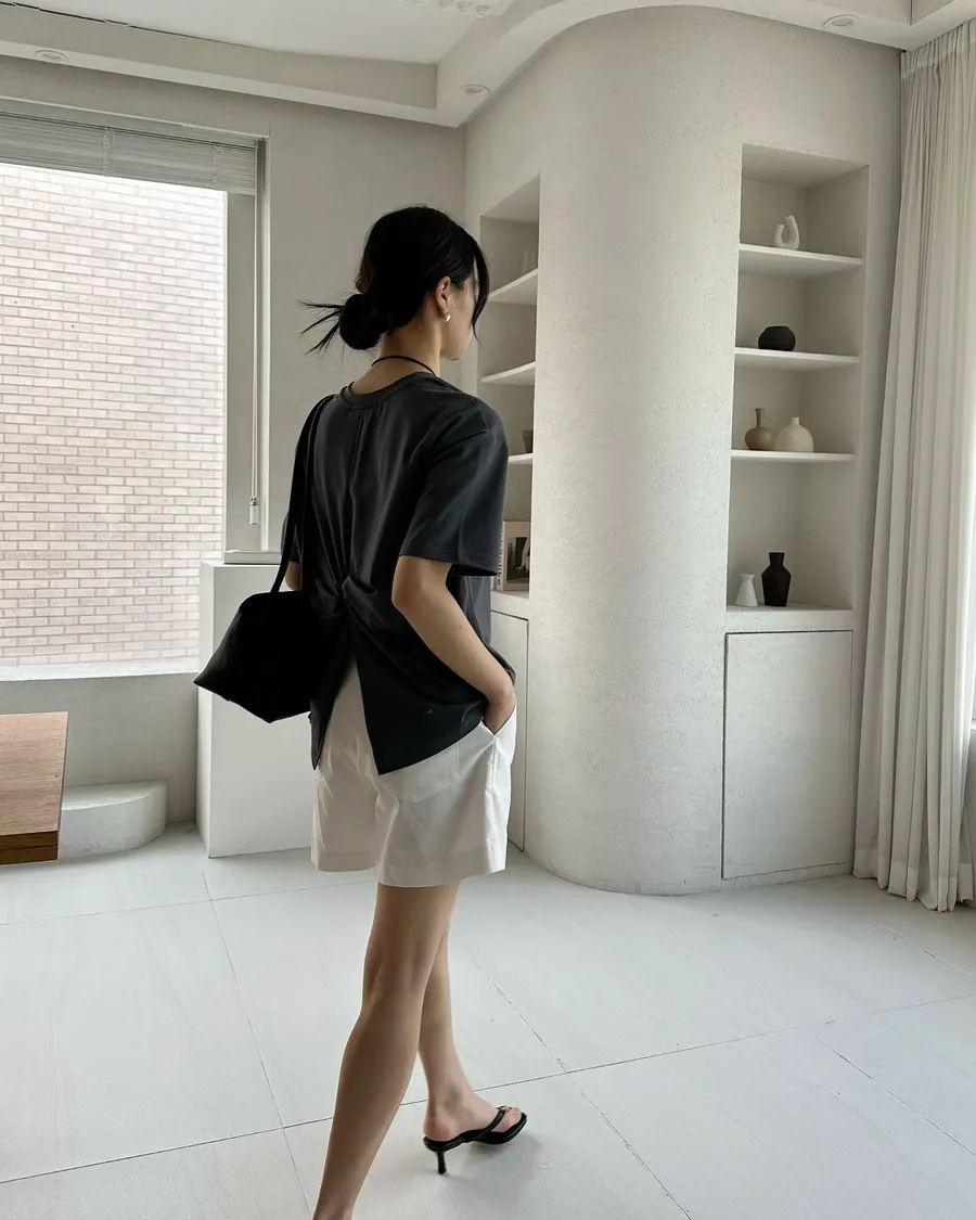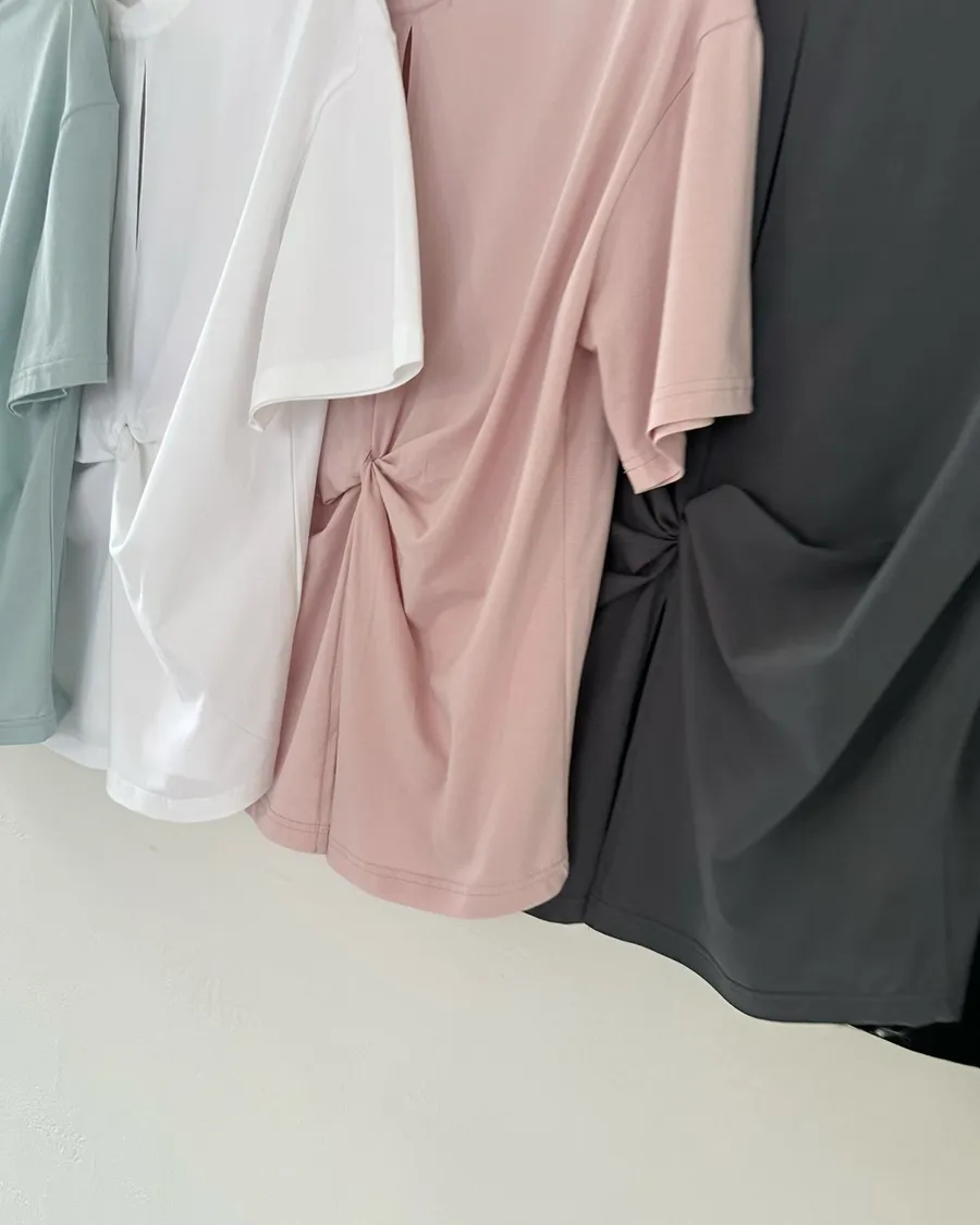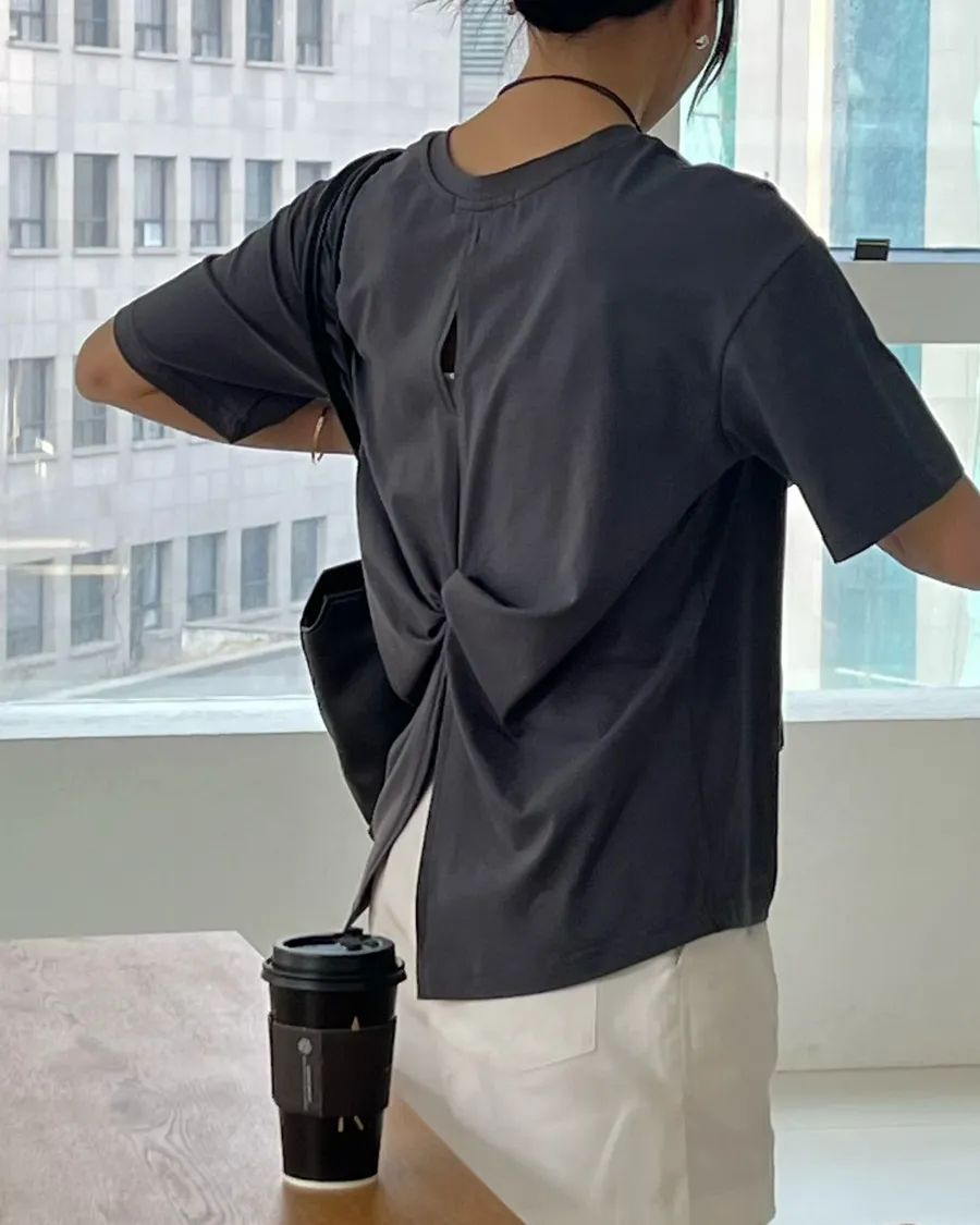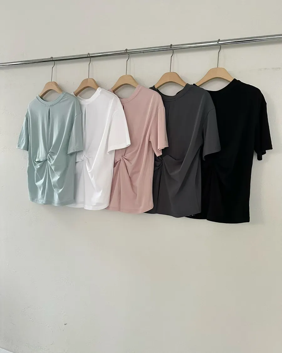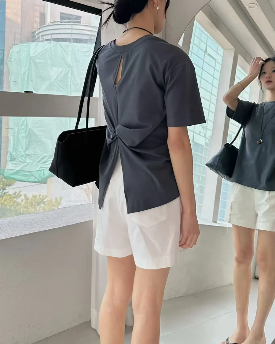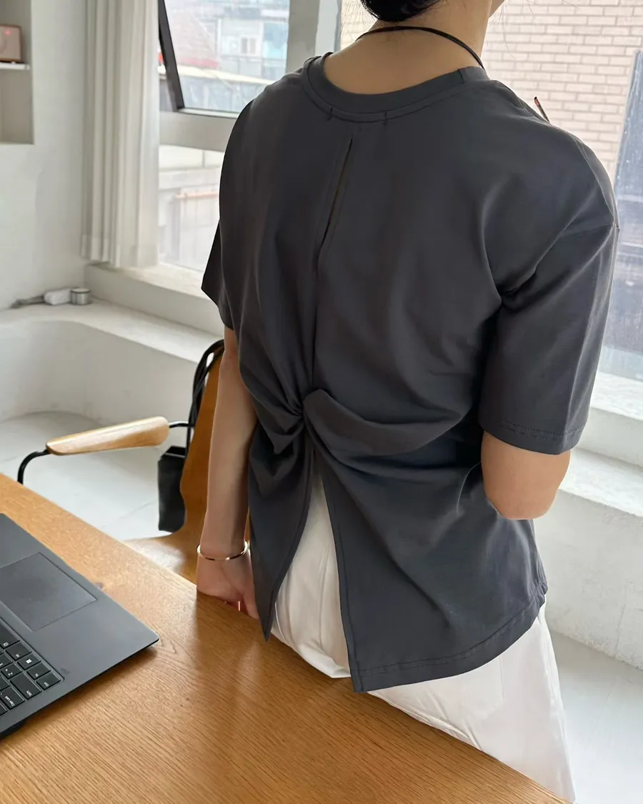 正韓 後扭結順身舒適棉質造型上衣